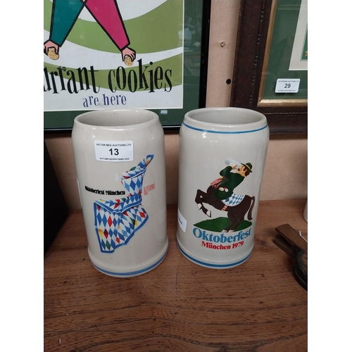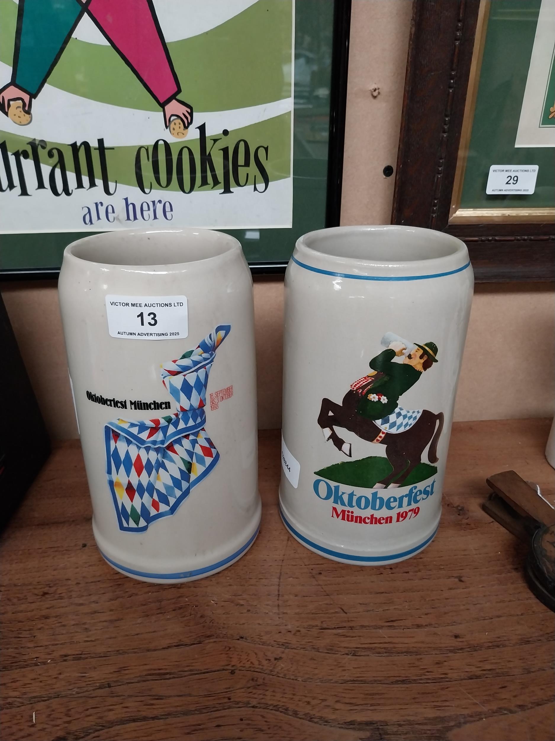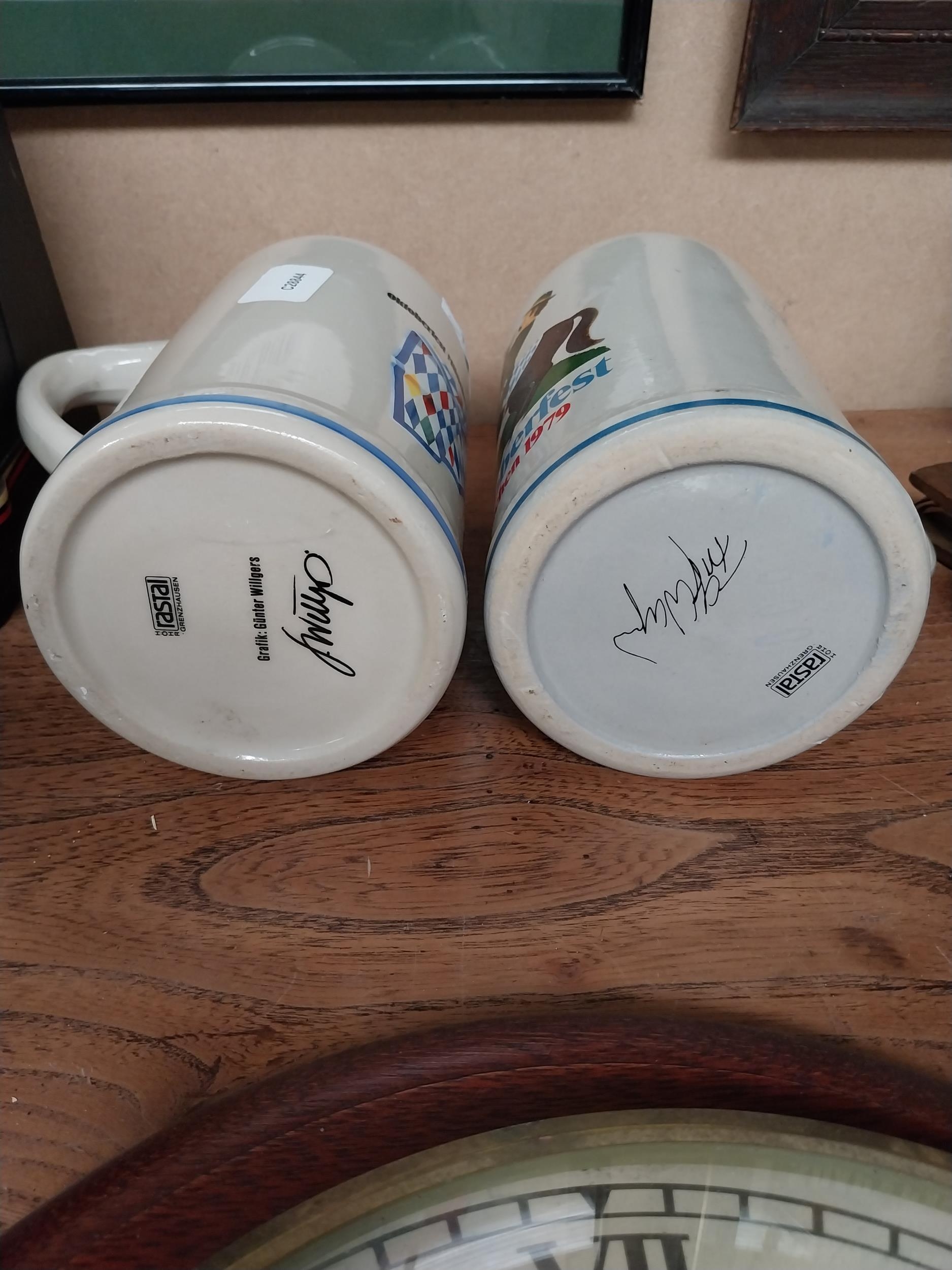 Two ceramic beer mugs - Oktoberfest 1979 and Octoberfest 1978. {19 cm H x 11 cm Dia.}.