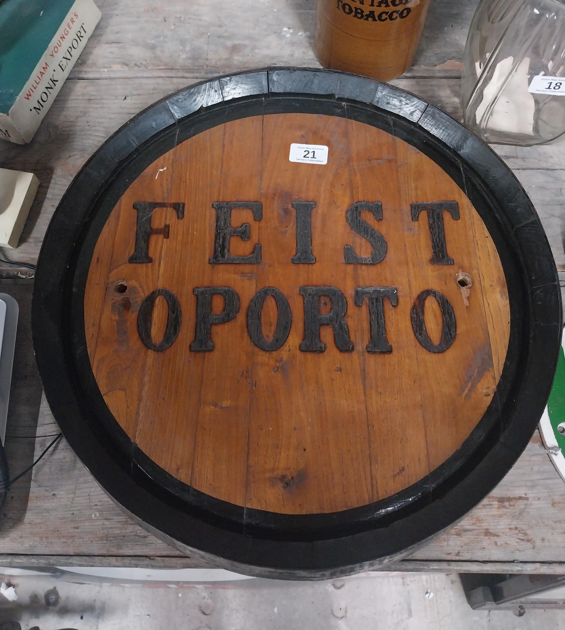 Feist Oporto barrel end advertising sign {48 cm Dia.}