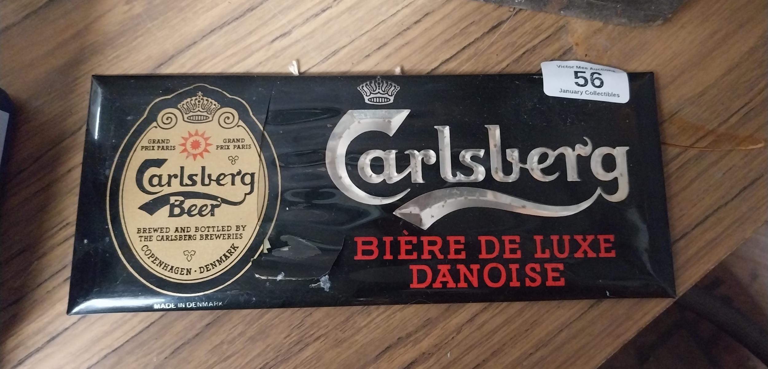 Carlsberg Biere De Luxe Danoise cellulloid advertising shelf showcard. {10 cm H x 15 cm W}.