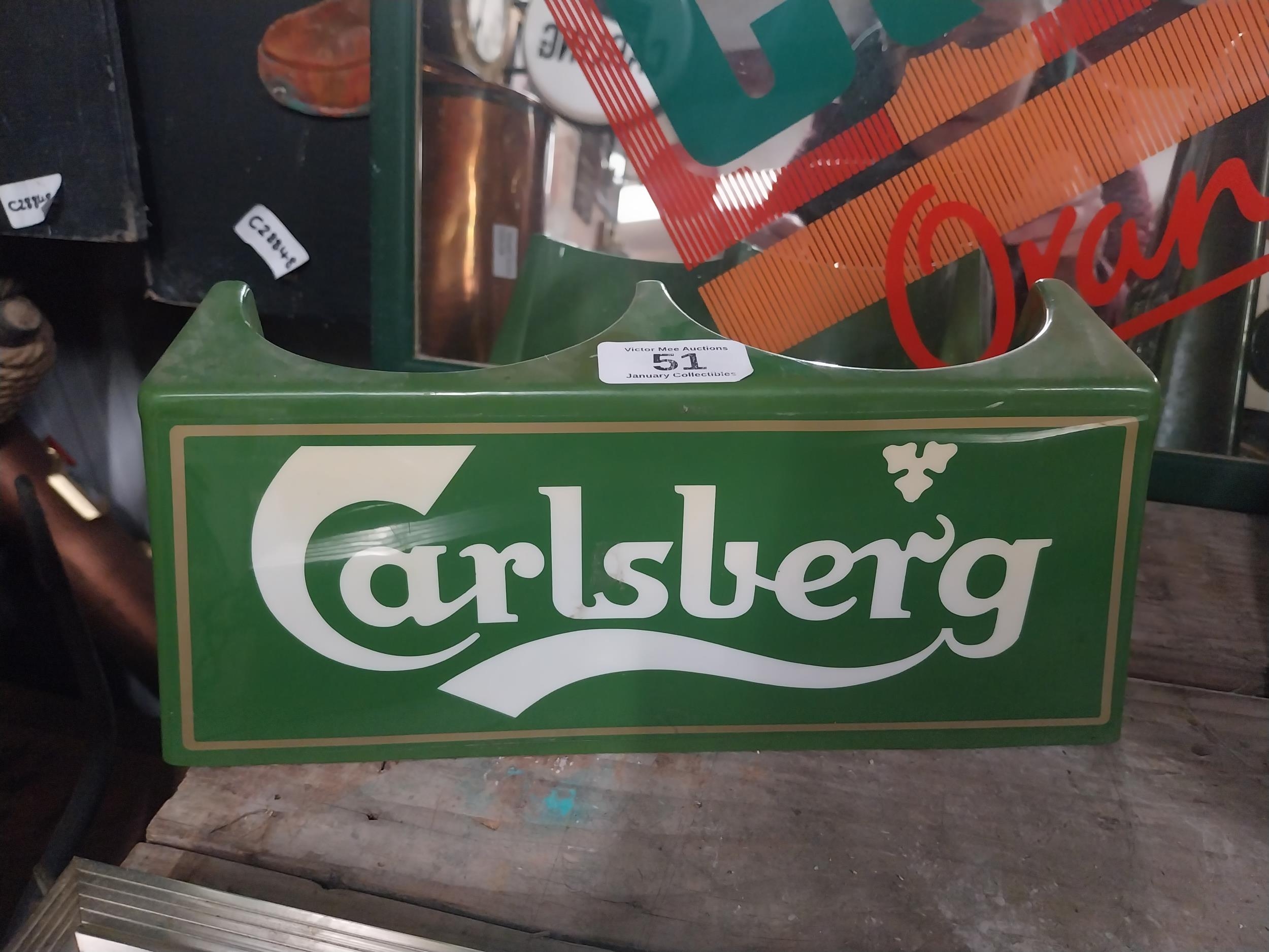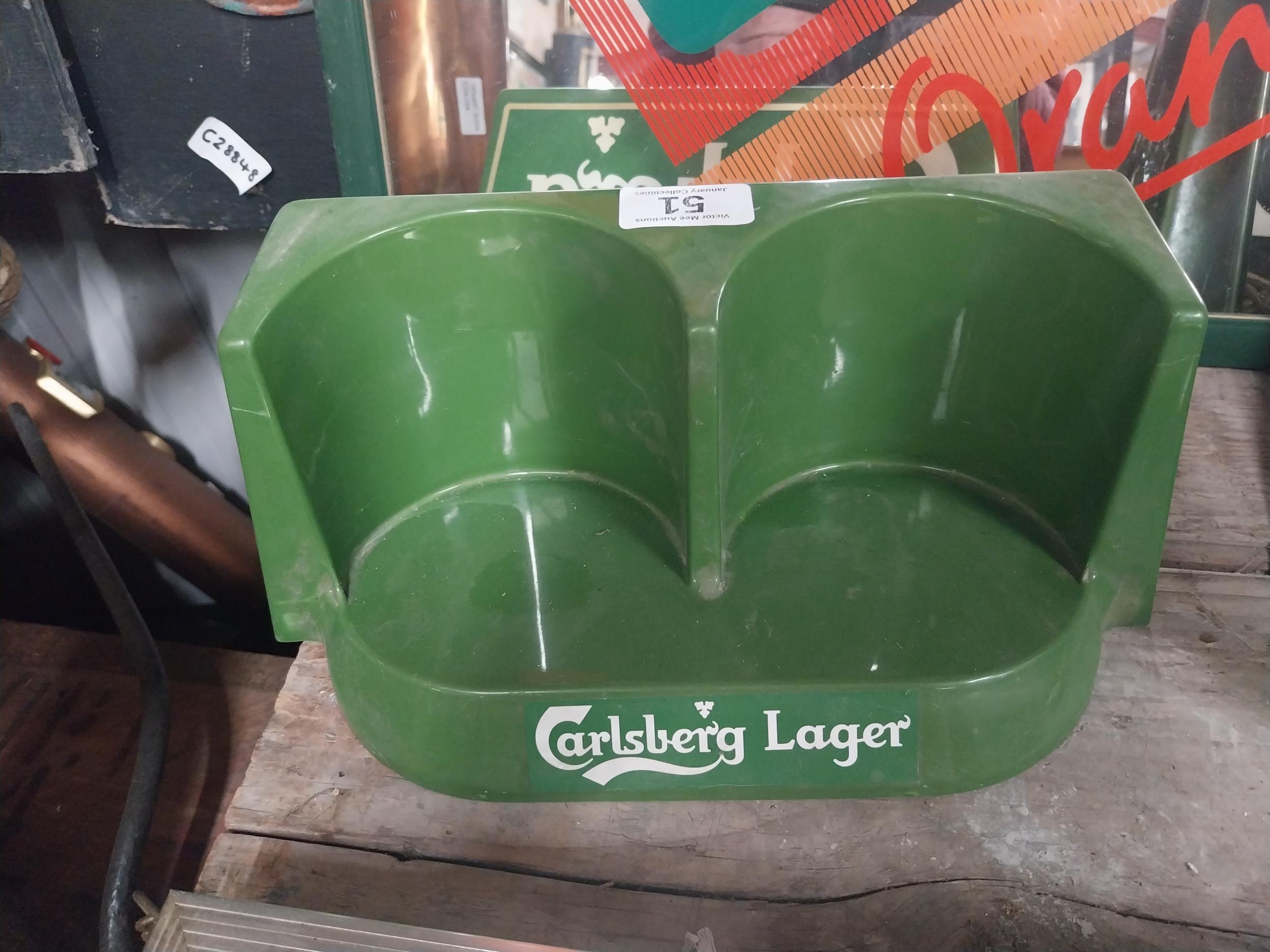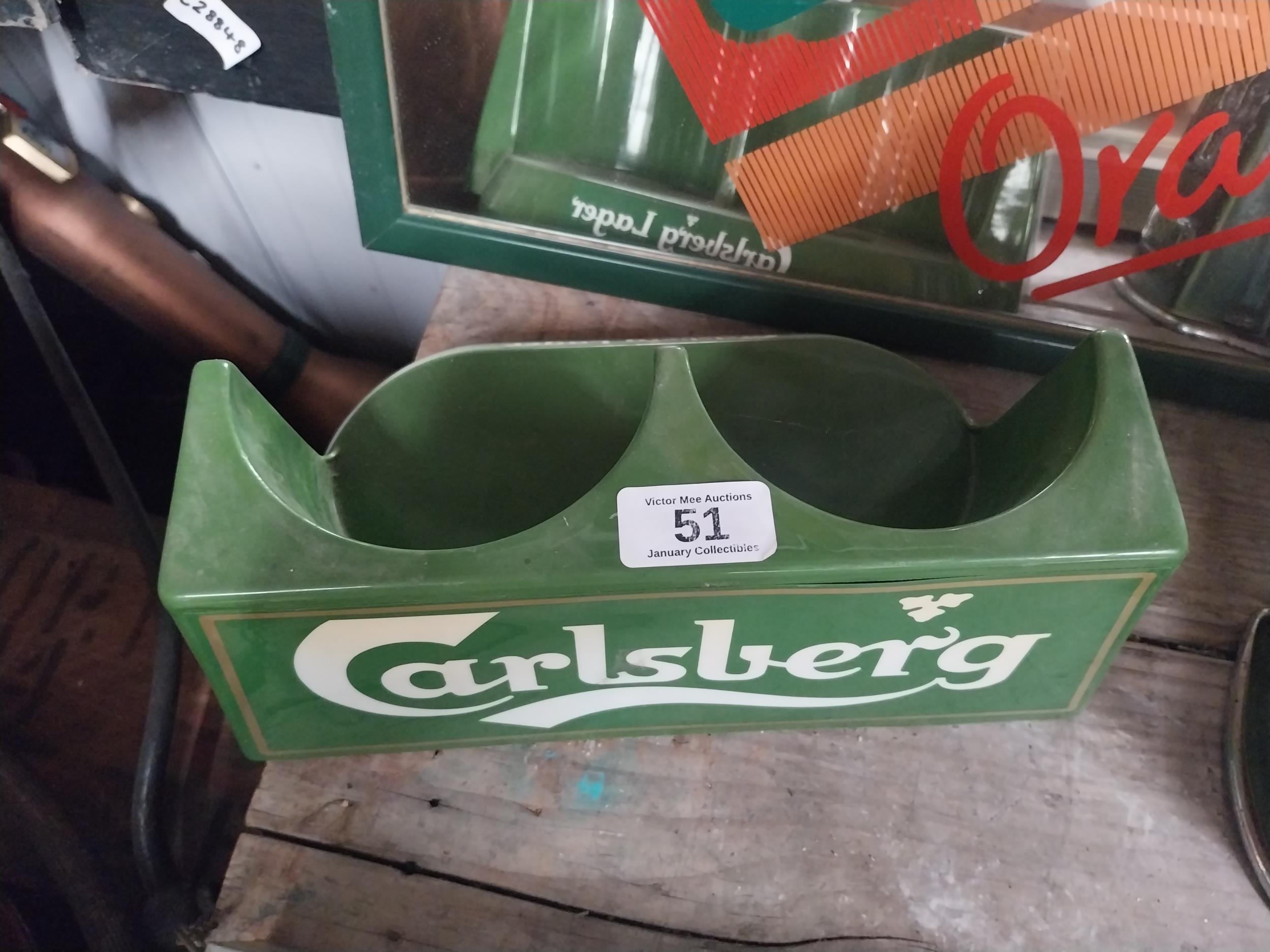Carslberg bottle holder. {12 cm H x 28 cm W x 18 cm D}.