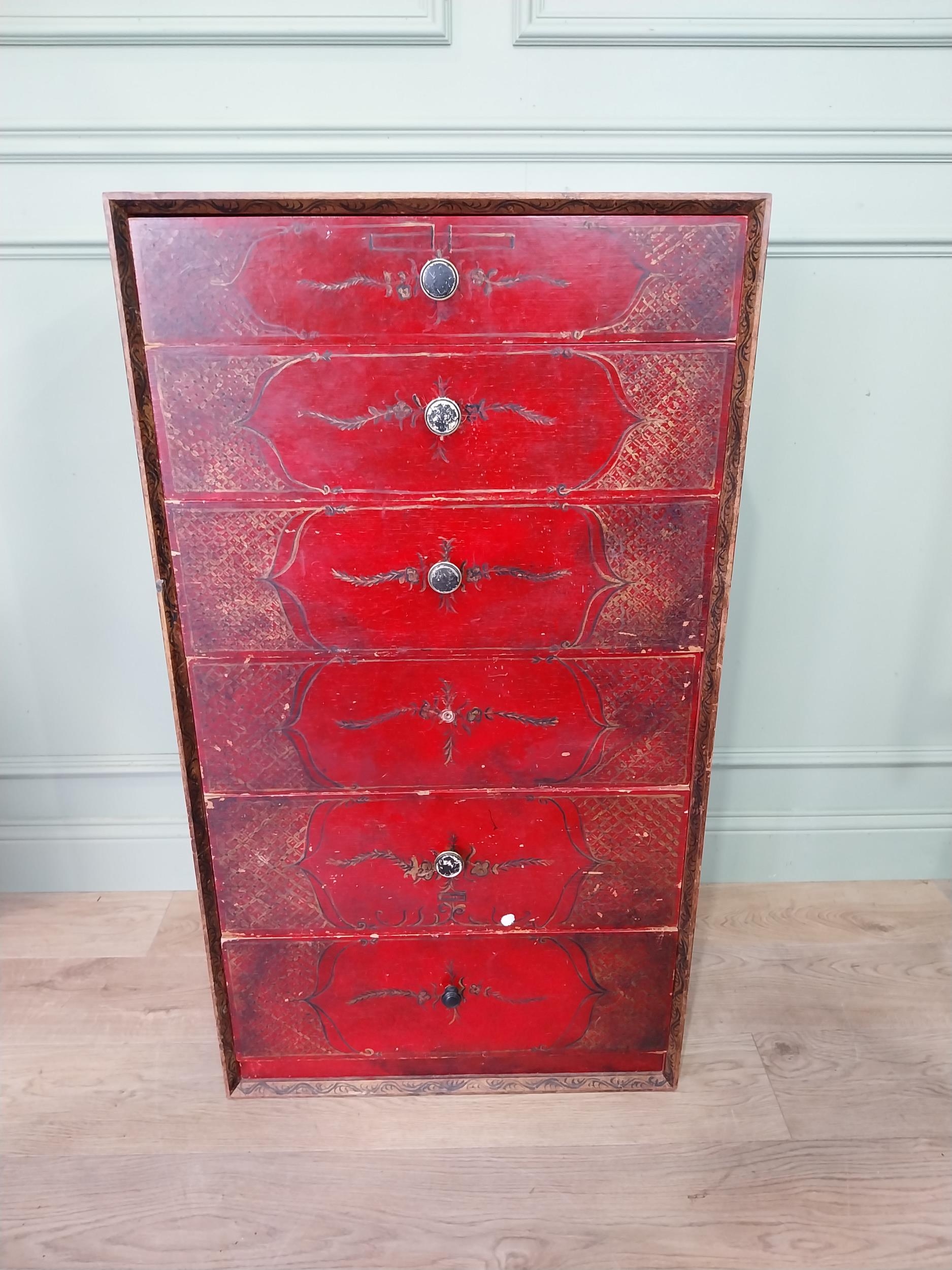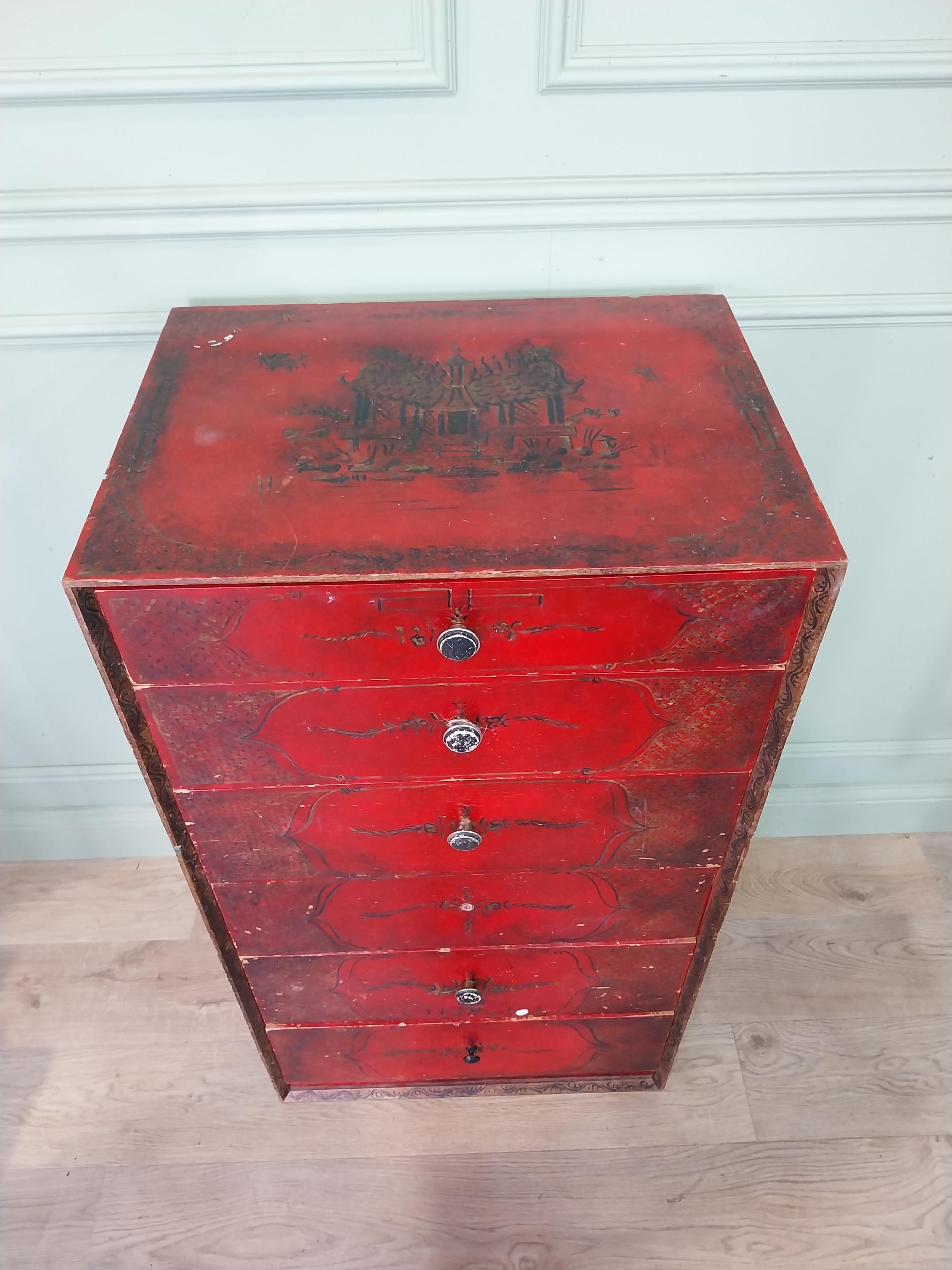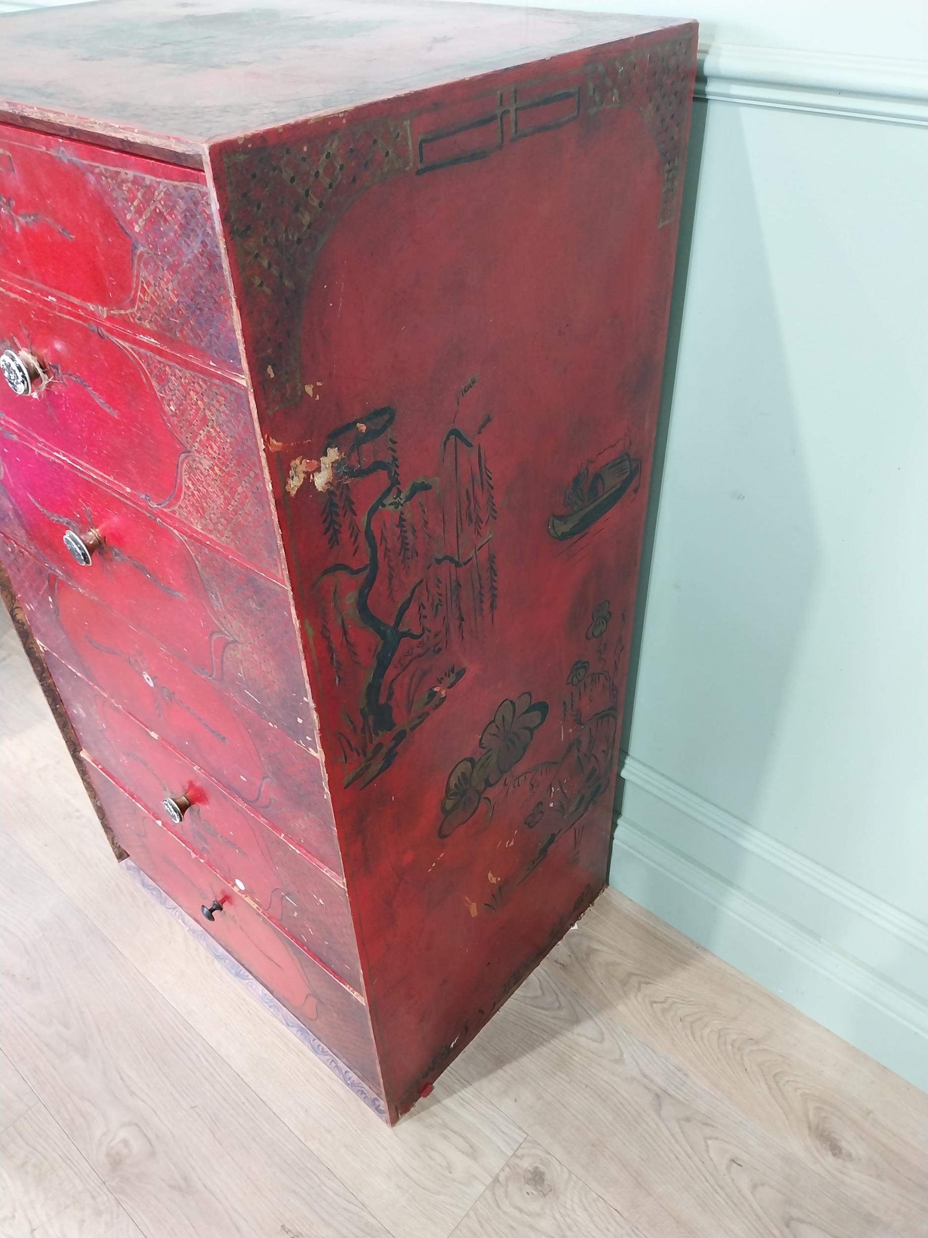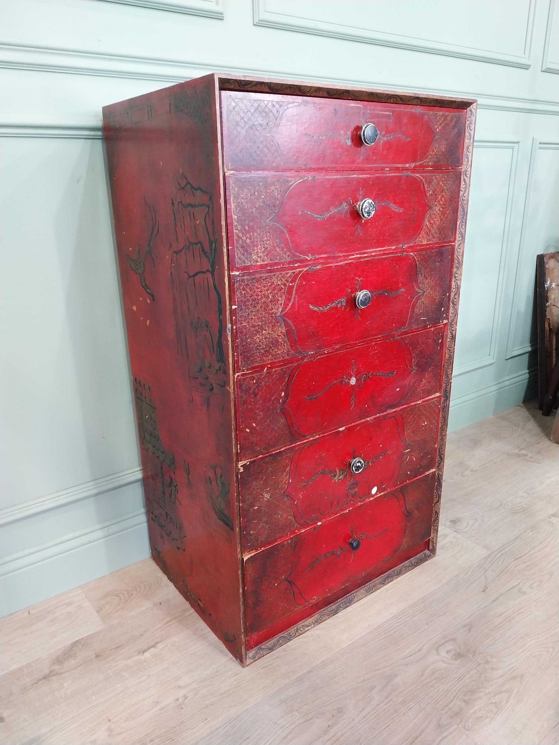 Oriental lacquered and gilt chest of six drawers. [111 cm H x 61 cm W x 46 cm D}.