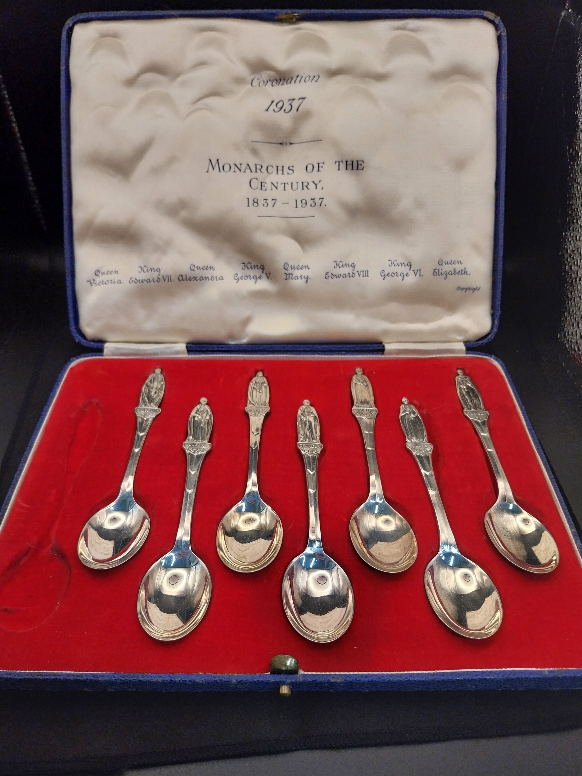 Set of seven coronation spoons, Edward VIII missing. Hallmarked London Maker's mark Cooper Brother's & Smith 1975. 107.7g