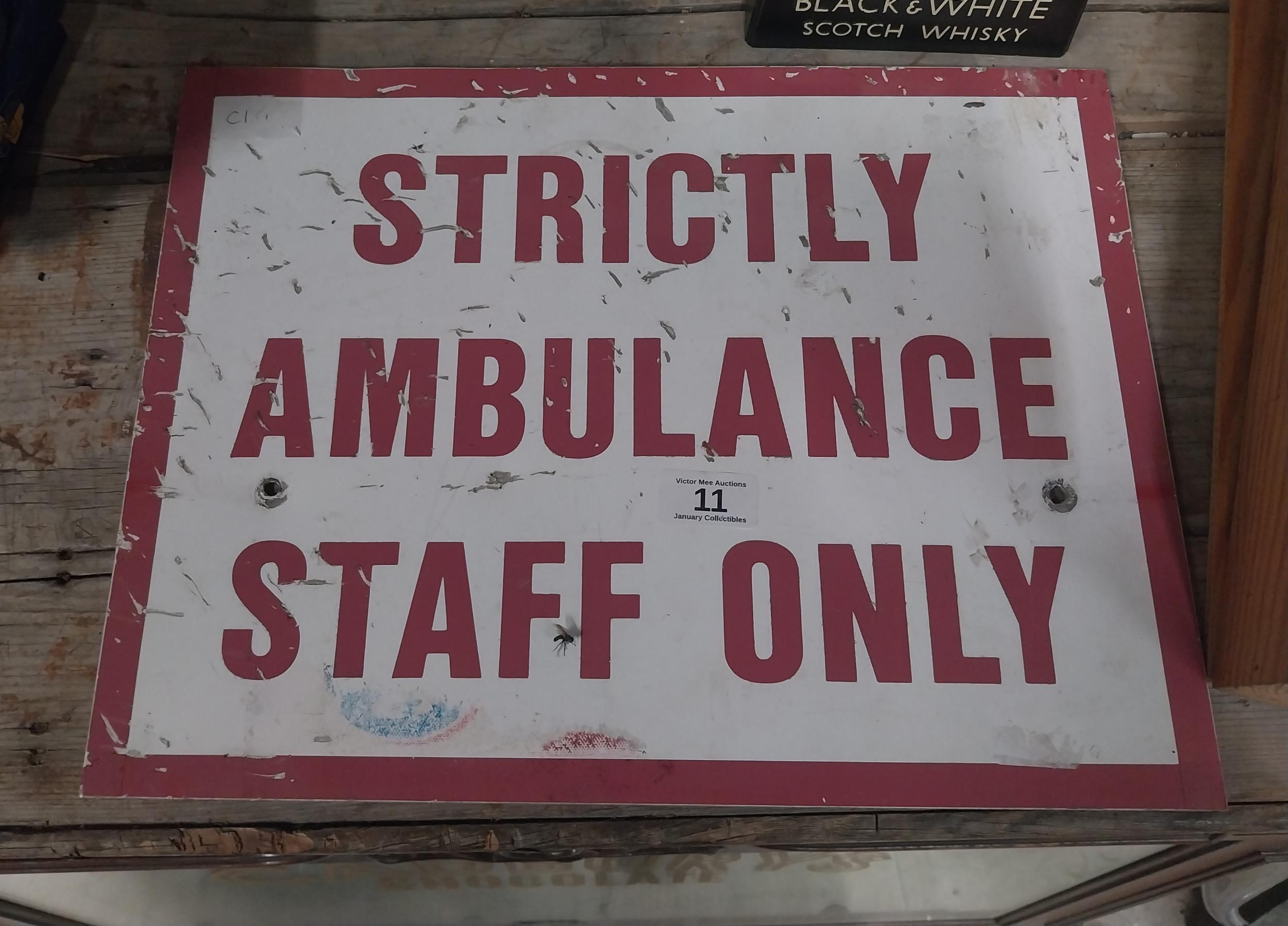 Strictly Ambulances Staff only sign. {30 cm H x 30 cm W}.
