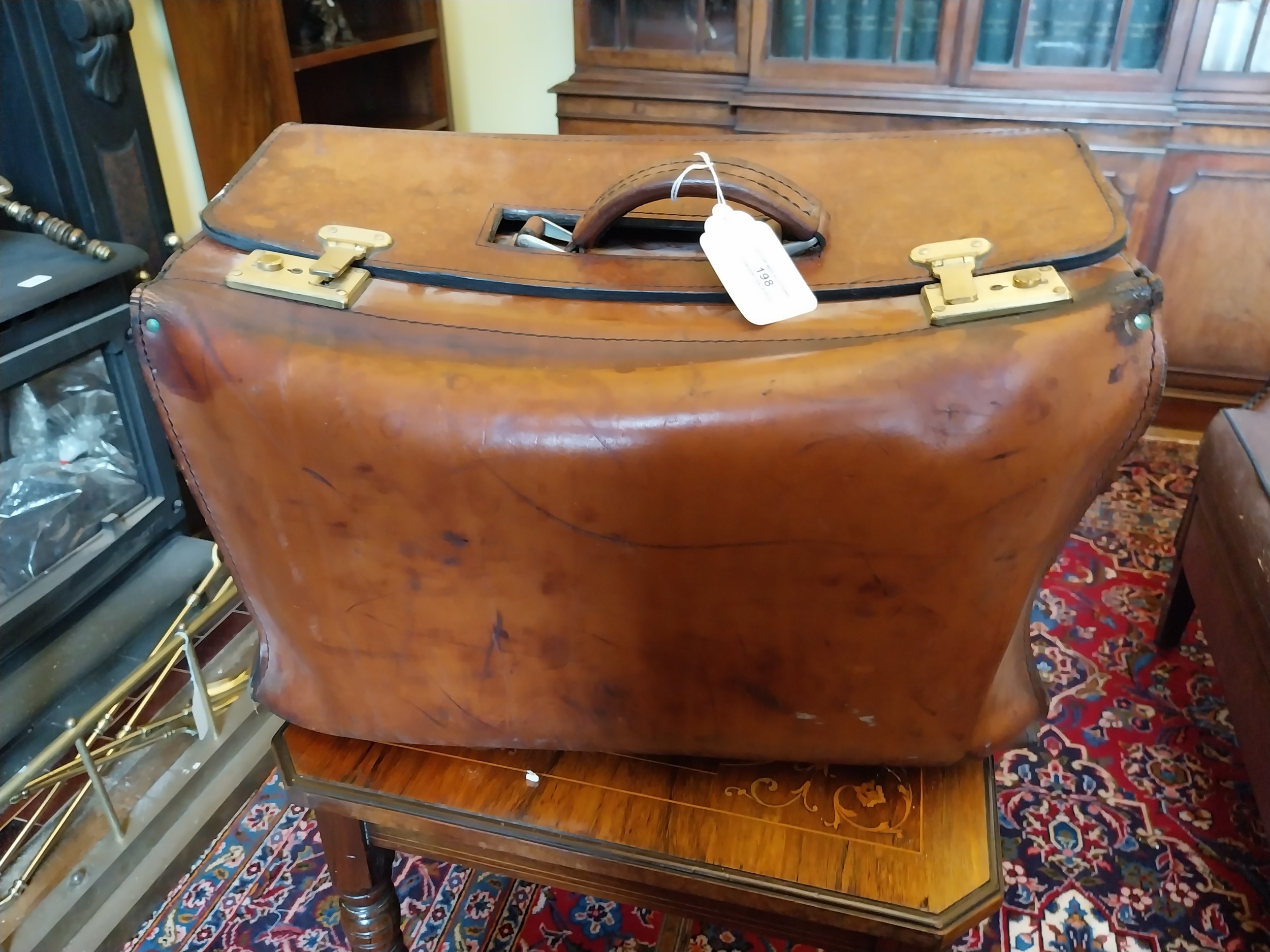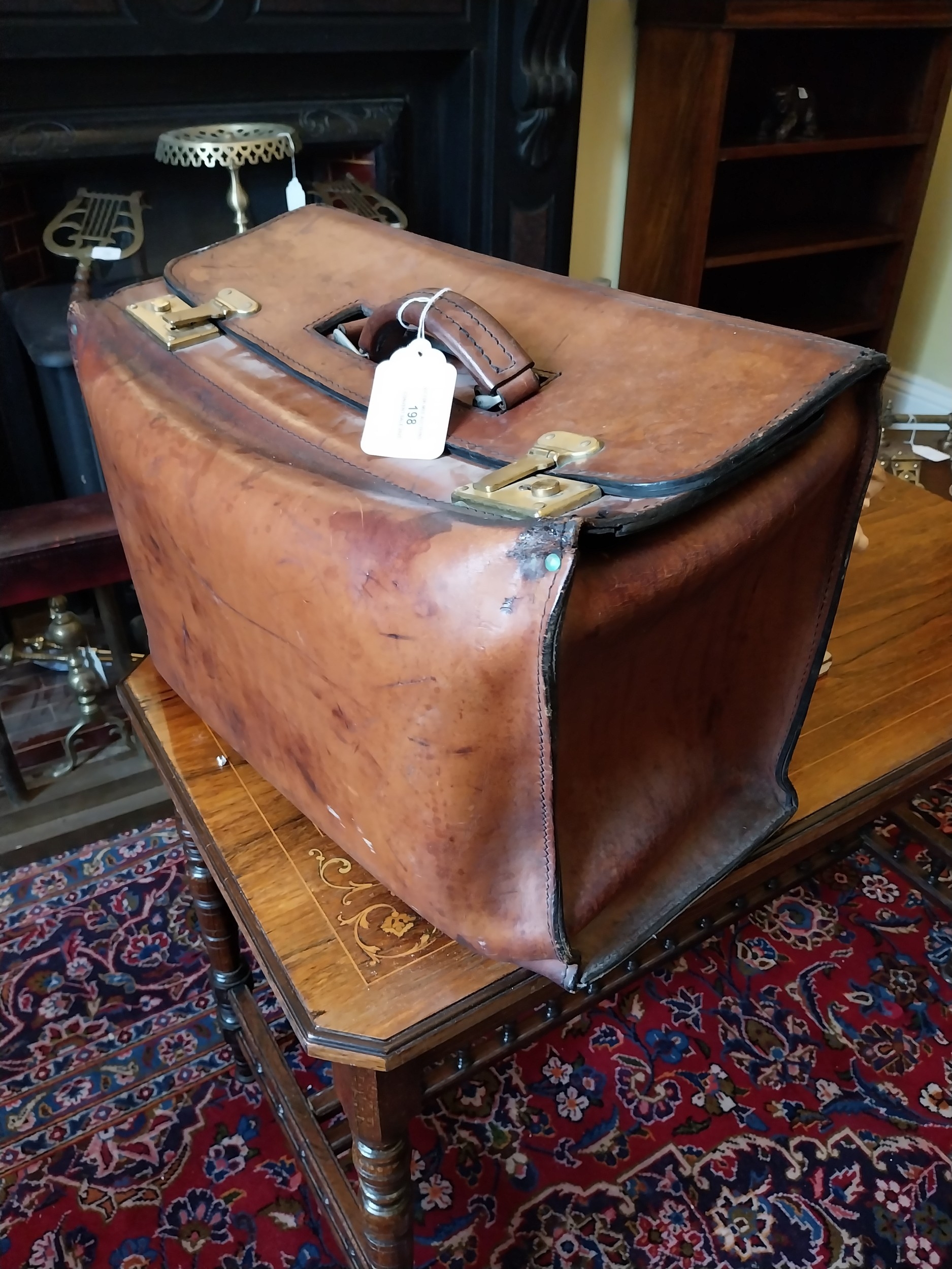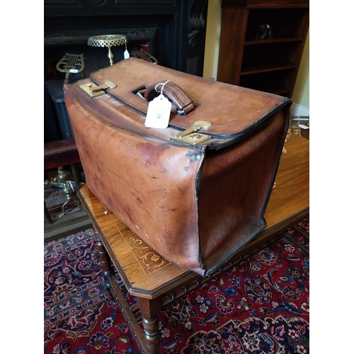 Early 20th. C. Leather doctor's Gladstone bag { 33cm H X 51cm W X 25cm D }.