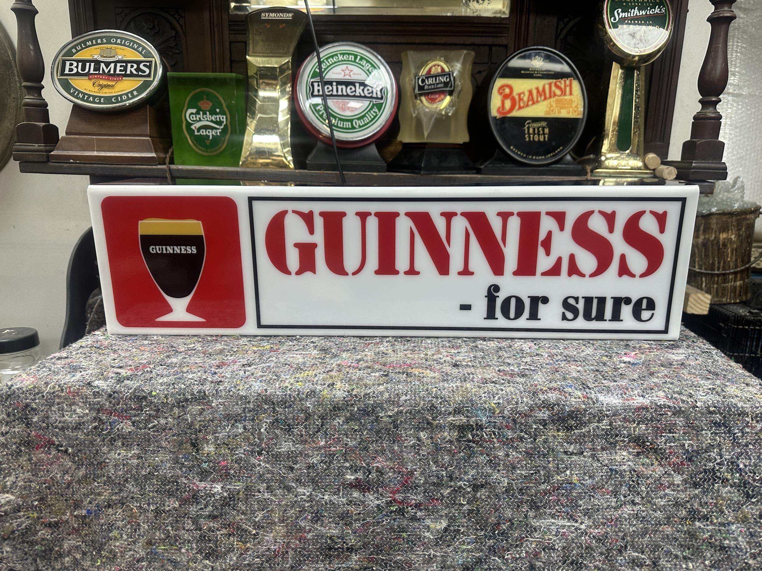 Guinness - for sure, Perspex hanging light up advertising box featuring a Guinness tankard. {18 cm H x 70 cm W x 12 cm D} - NOT AVAILABLE TO VIEW IN PERSON