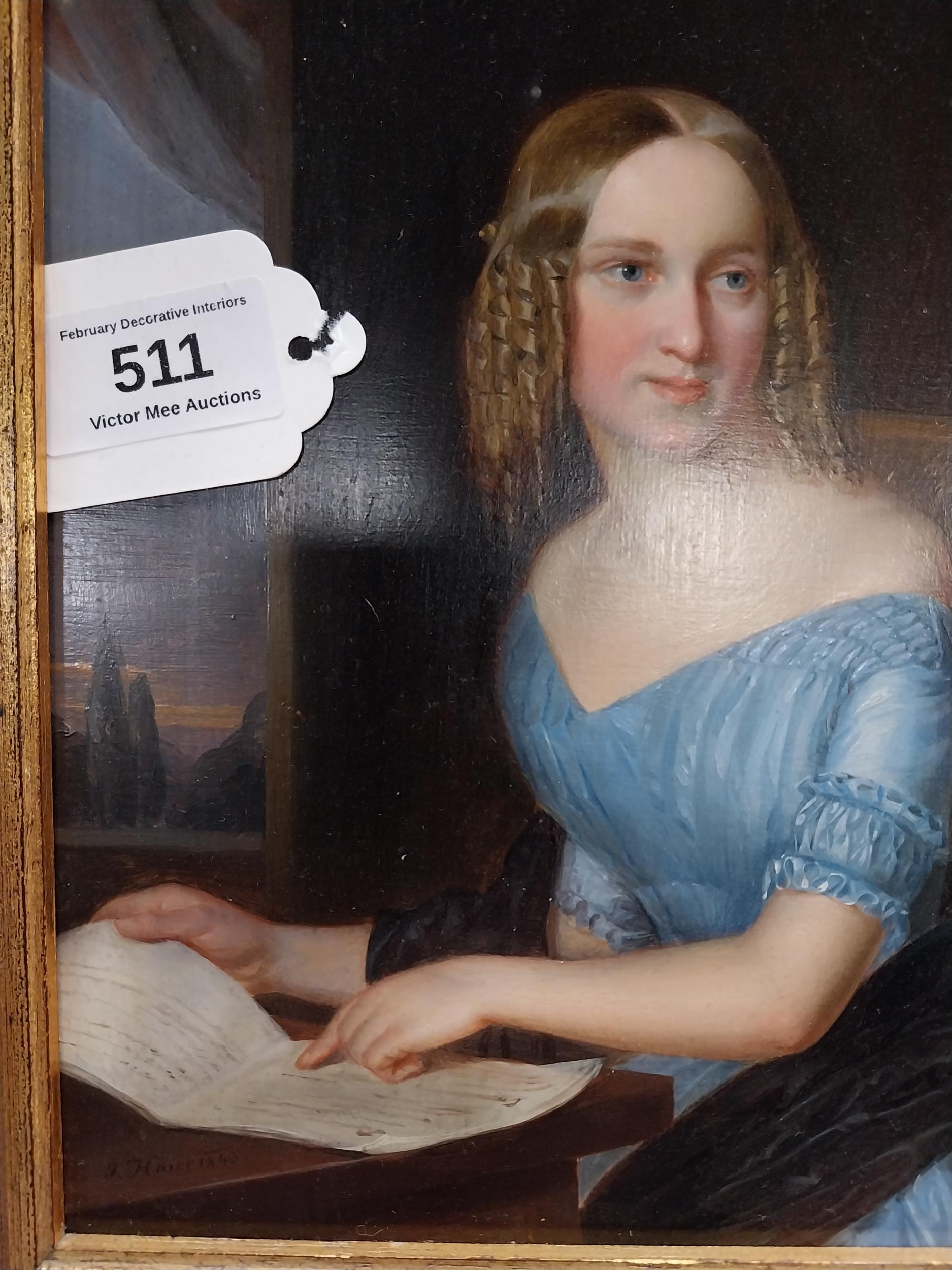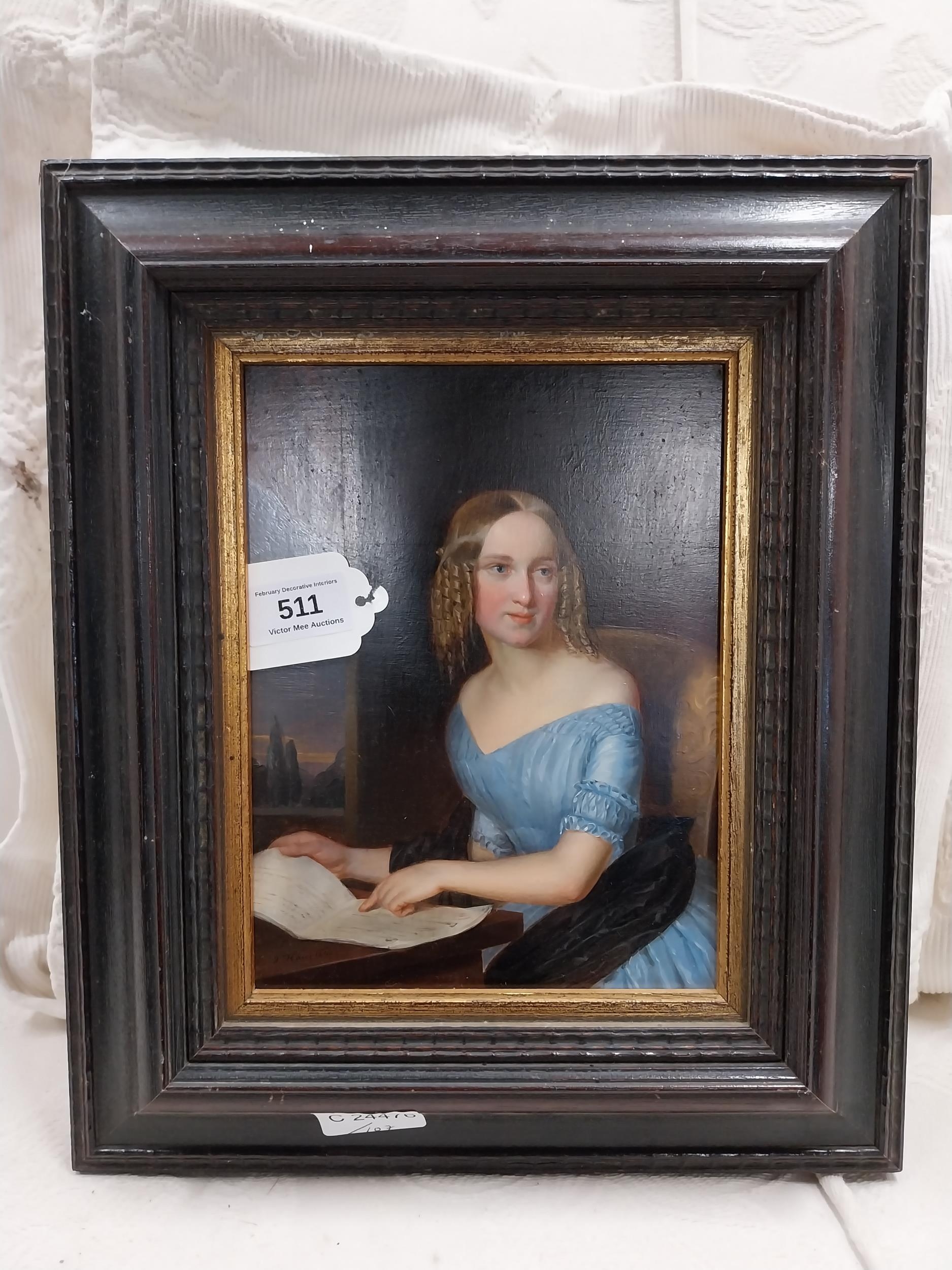 Victorian oil on board of Young Girl mounted in decorative frame. {36 cm H x 20 cm W}.