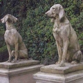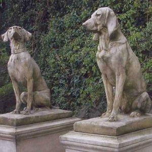 Composition pair of Hunting Hounds on tall classical plinths in the Jaquemart style - The Triton Collection. {152 cm H x 89 cm W x 99 cm D}.