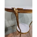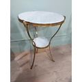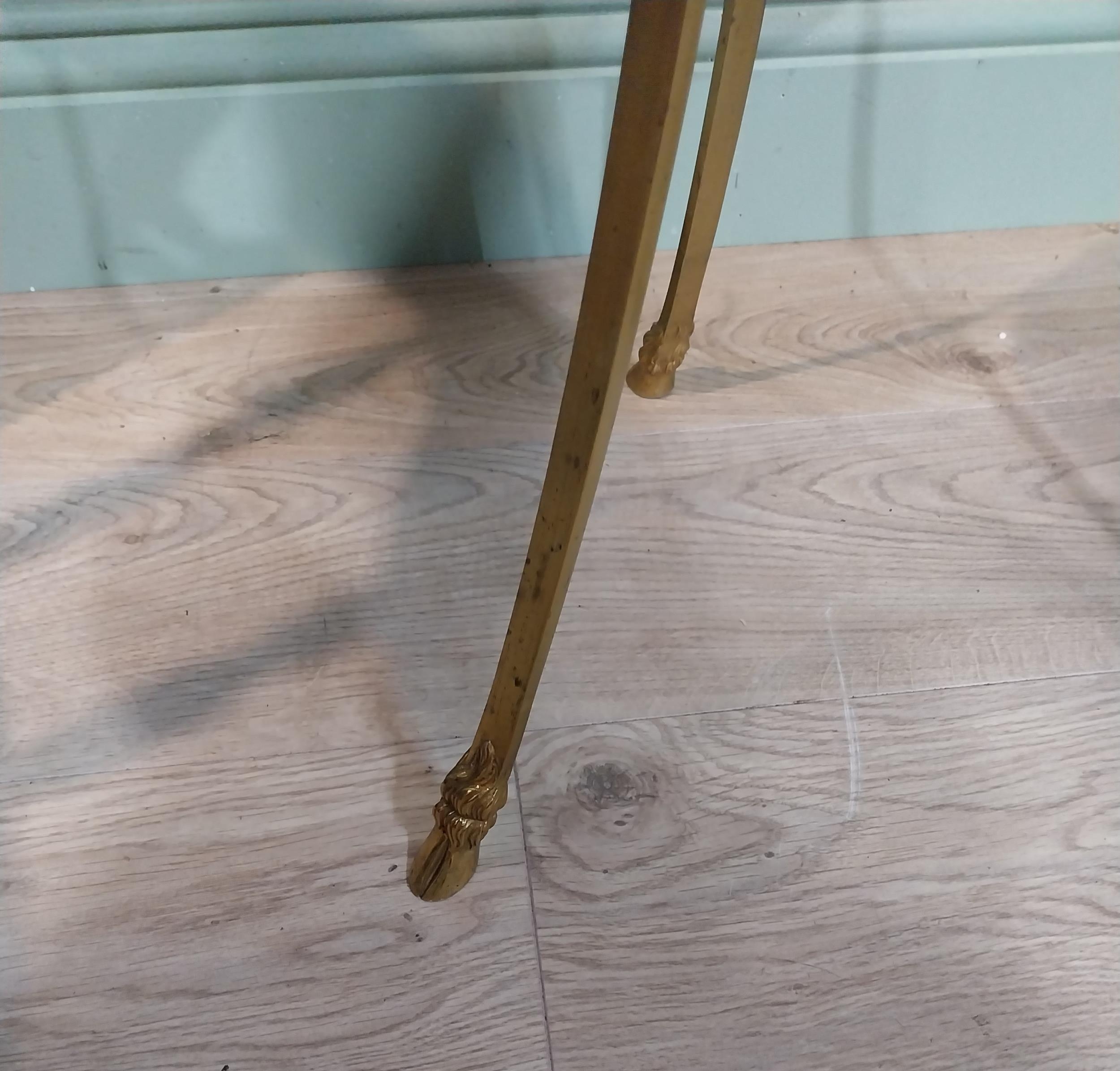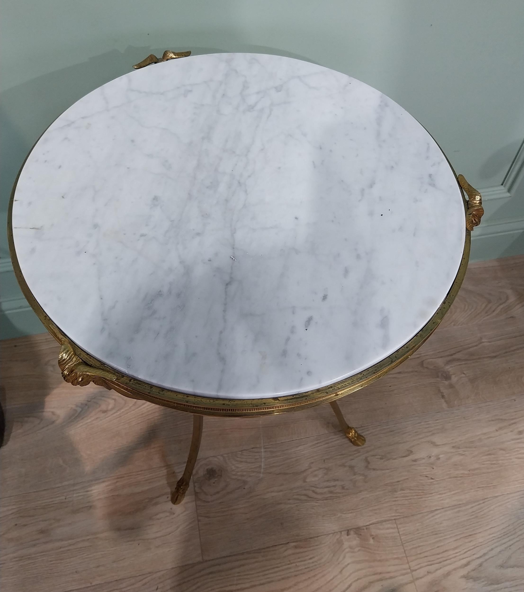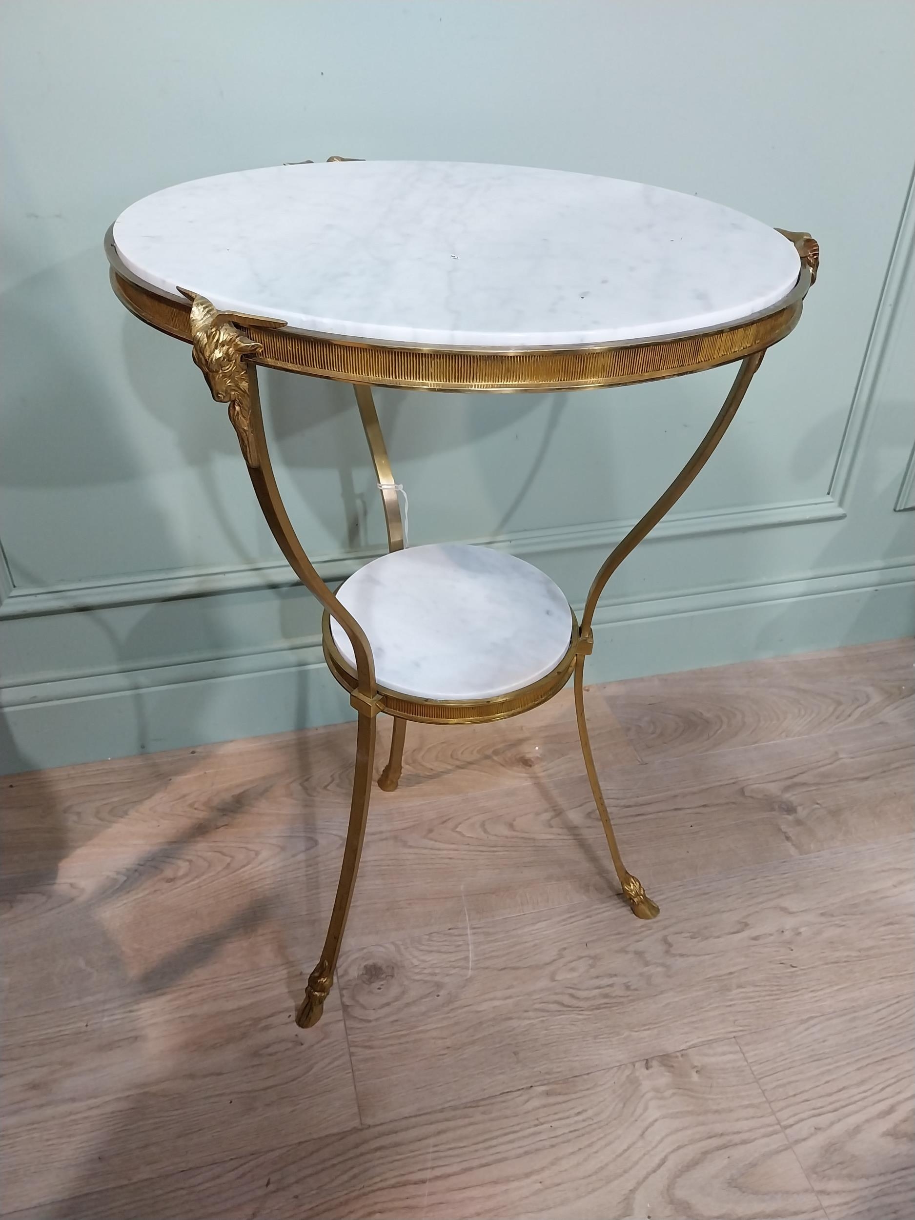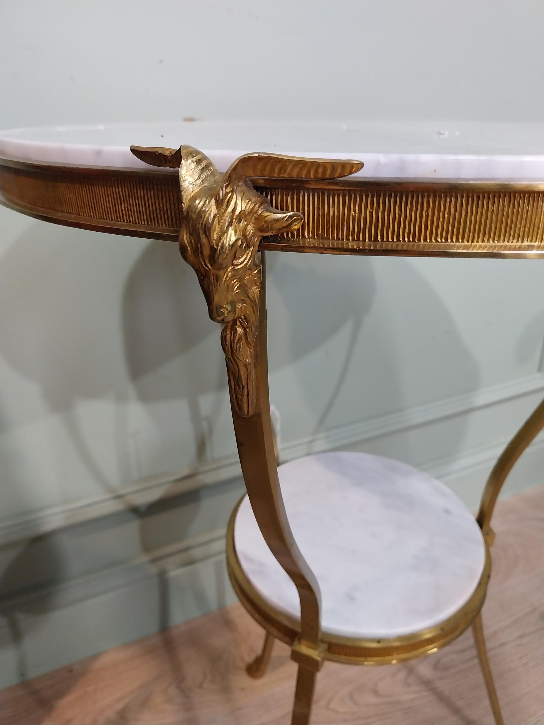 Rare gilded brass Maison Jansen lamp table with inset marble top decorated with Rams head. {73 cm H x 49 cm Dia.}.