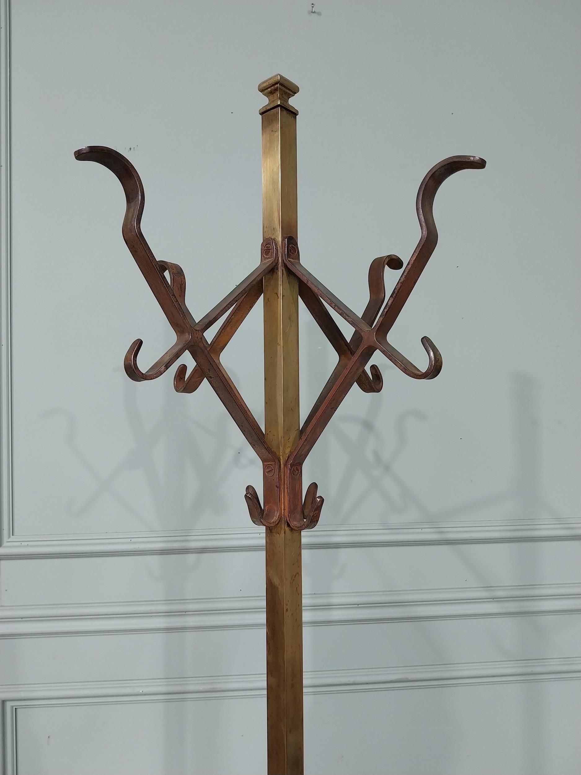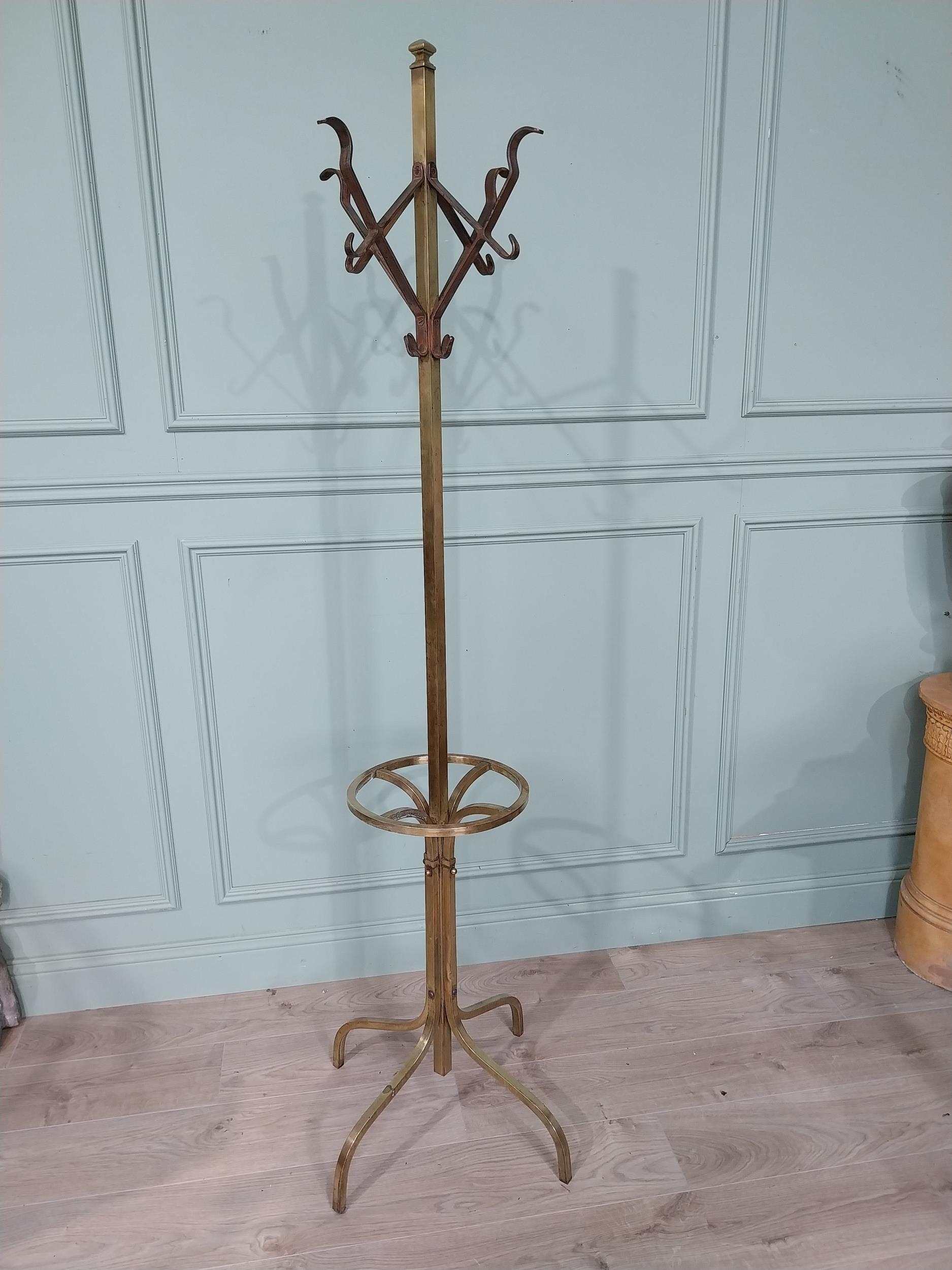 Good quality Edwardian brass and wrought iron hat and coat stand. {190 cm H x 44 cm Dia.}.