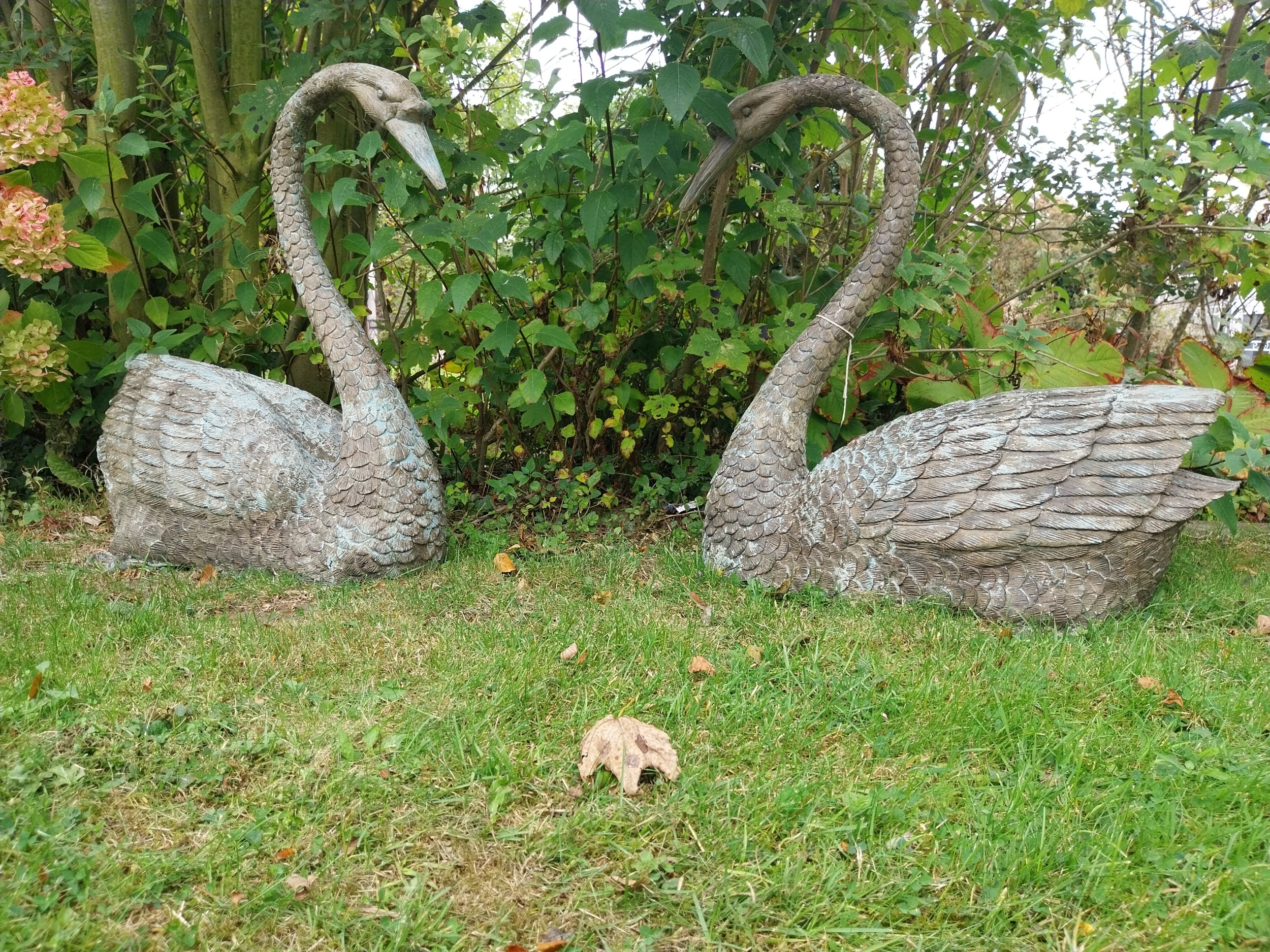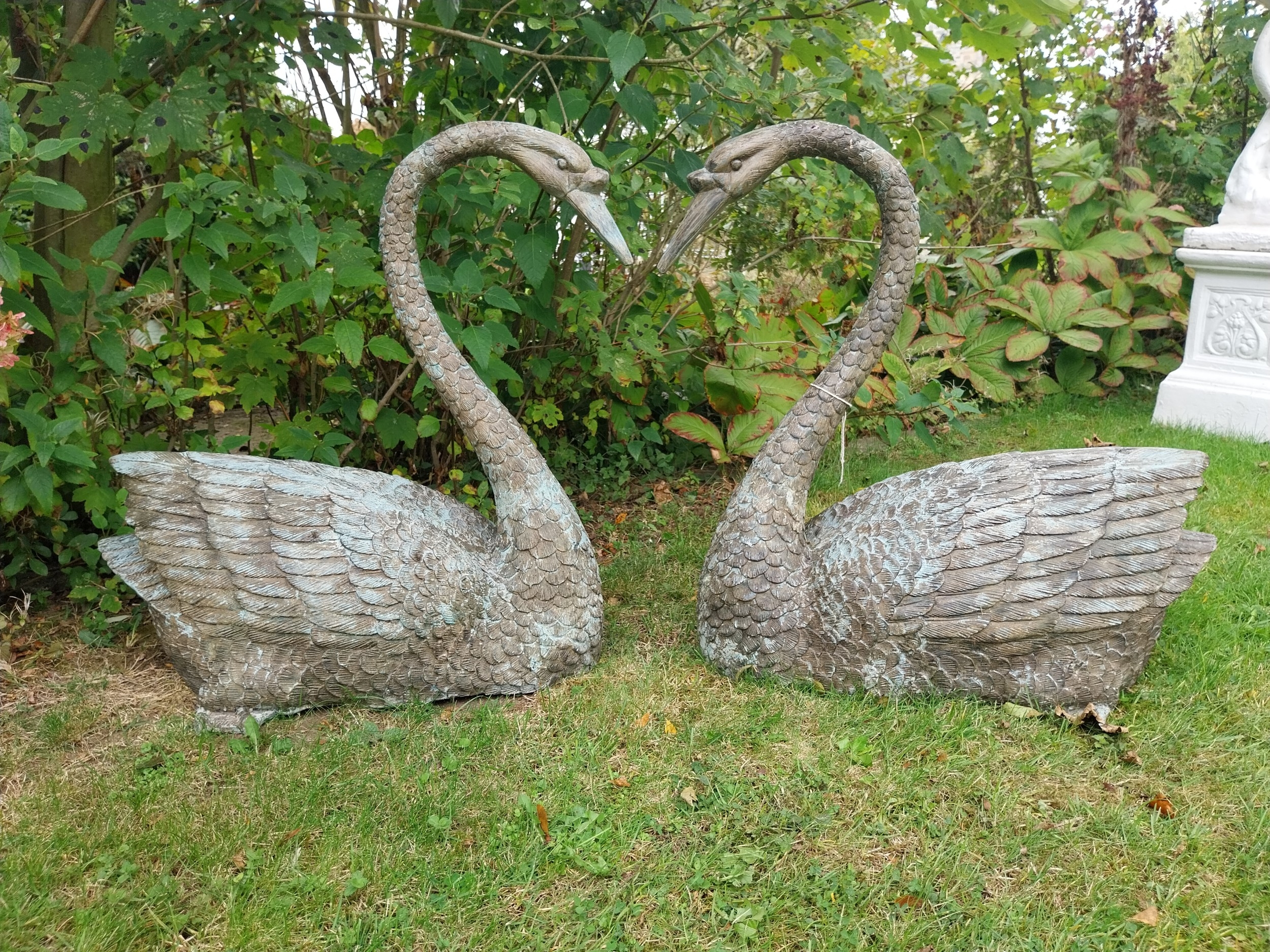 Pair of bronze sculptures of Swans, can also be used as Water features.
