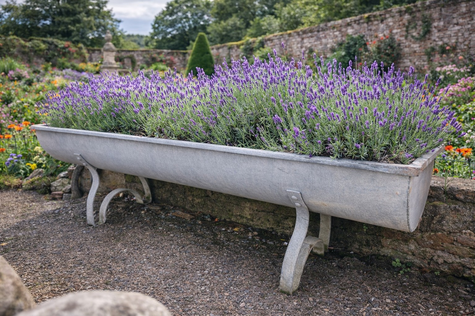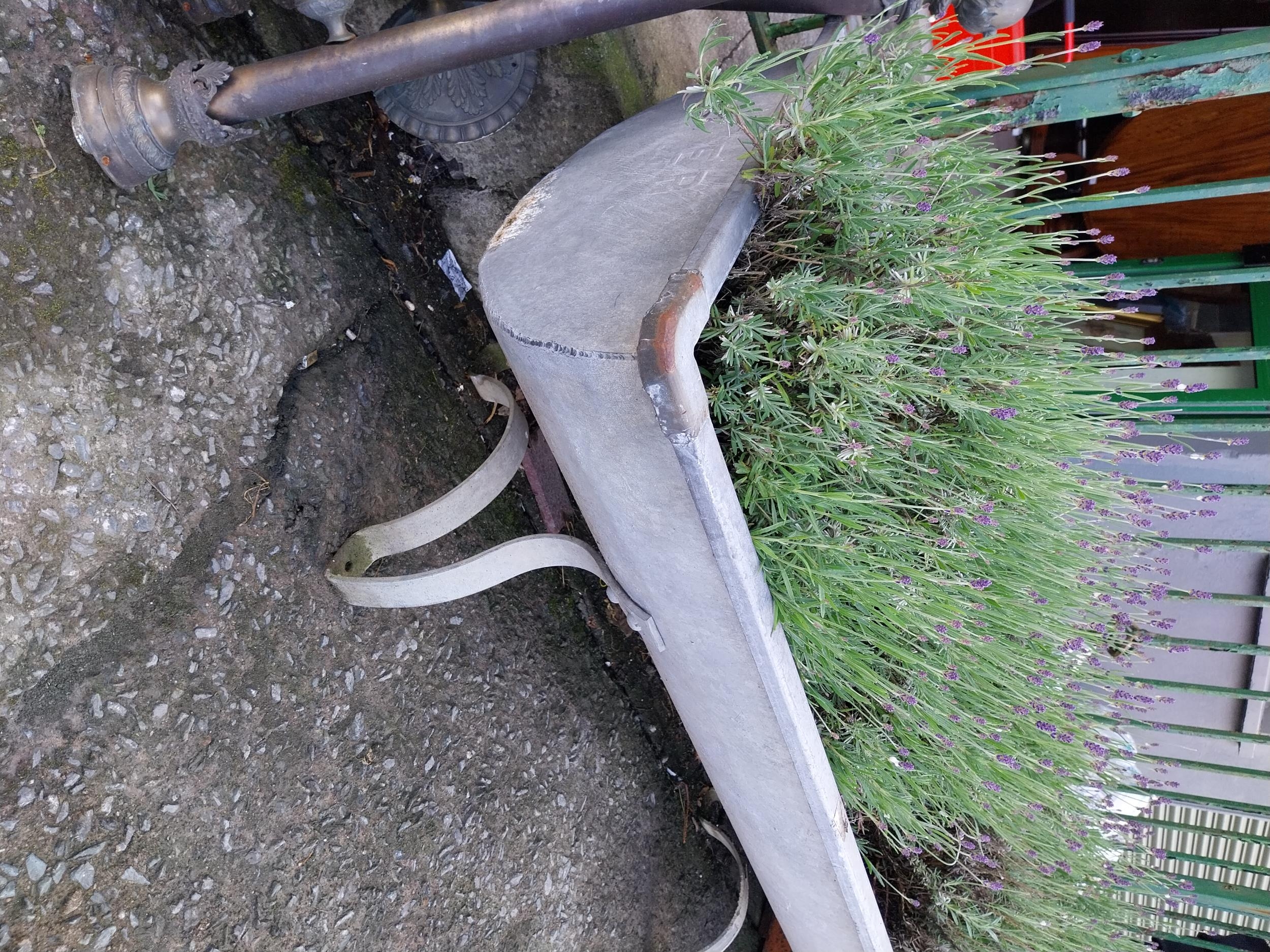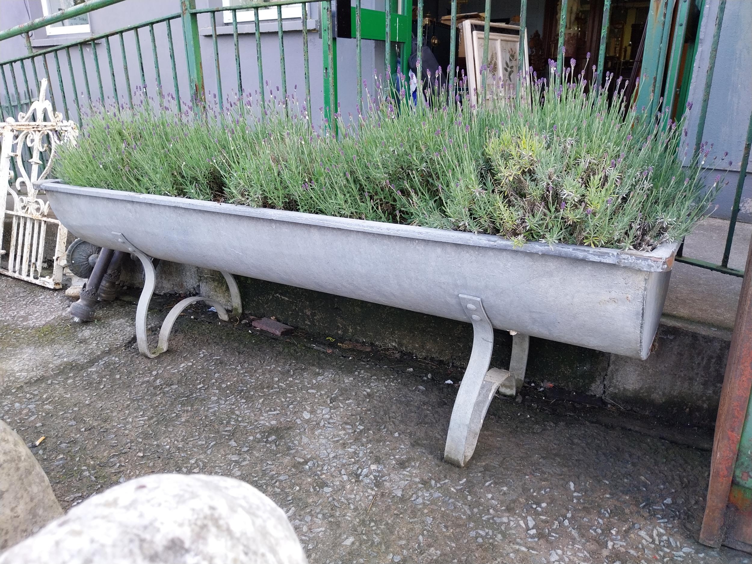 Early 20th C. galvanised planter on shaped legs. {64 cm H x 206 cm W x 66 cm D}.