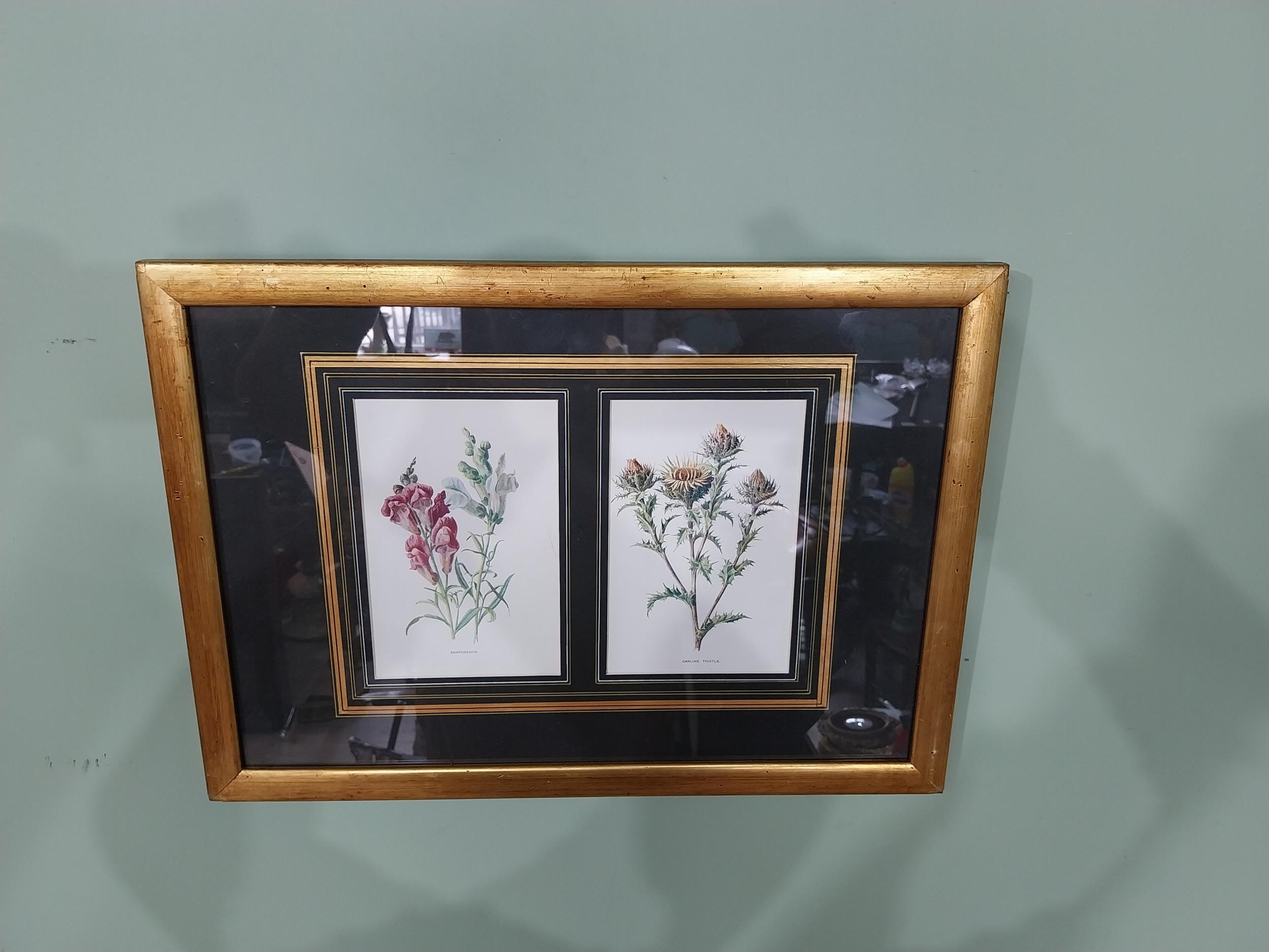 Two early 20th C. coloured botanical plates mounted in gilt frame. {35 cm H x 49 cm W}