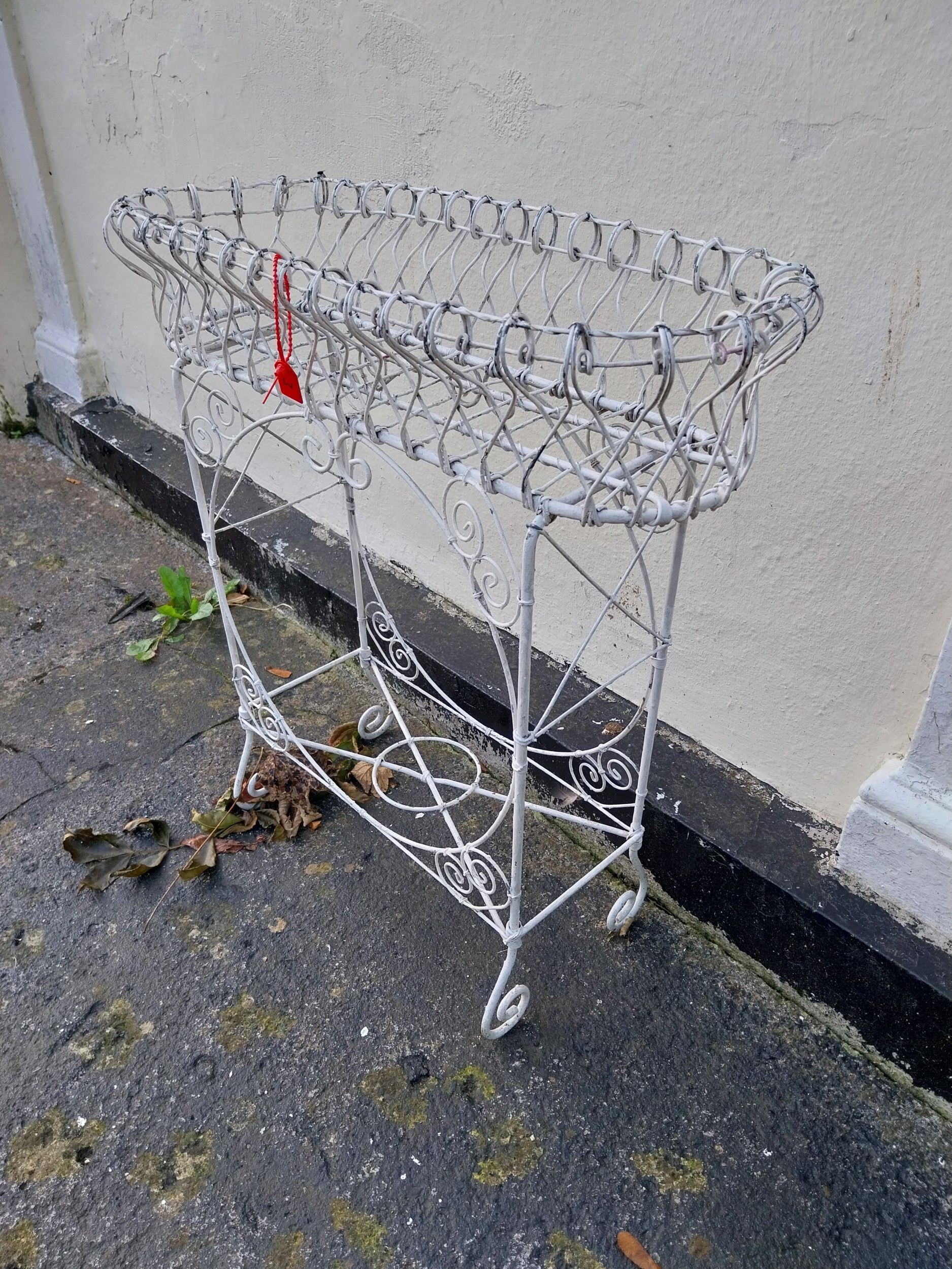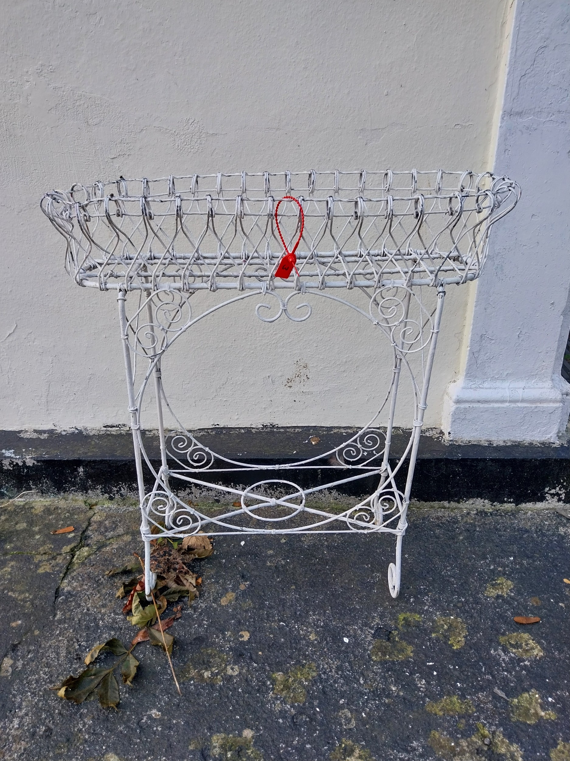 Decorative 19th. C. wirework planter. { 71cm H X 66cm W X 26cm D }.