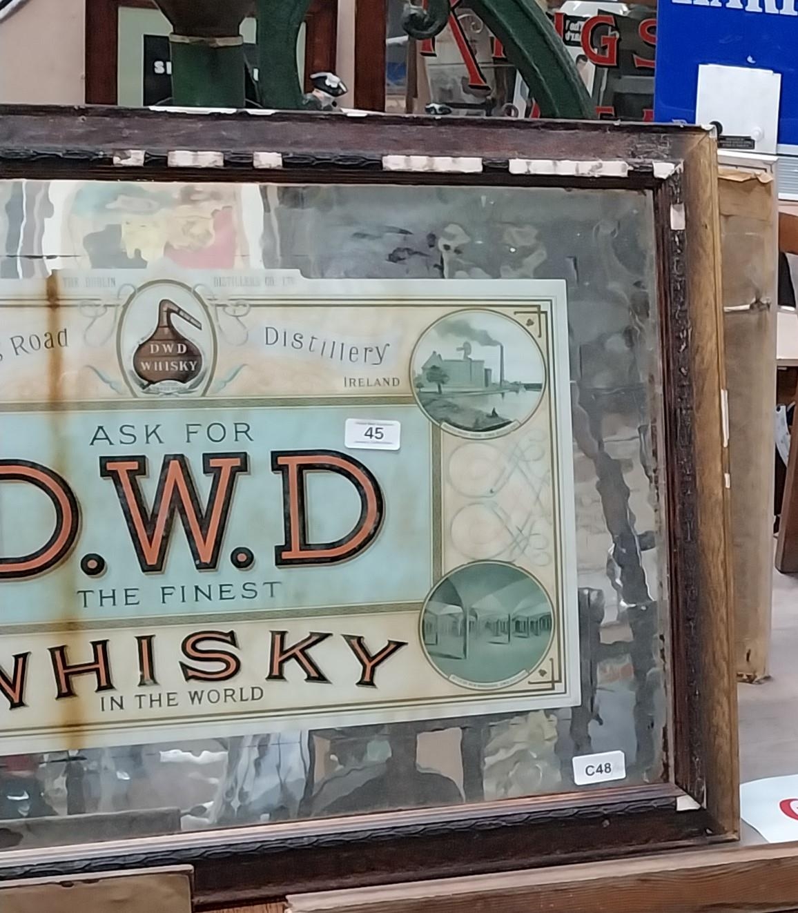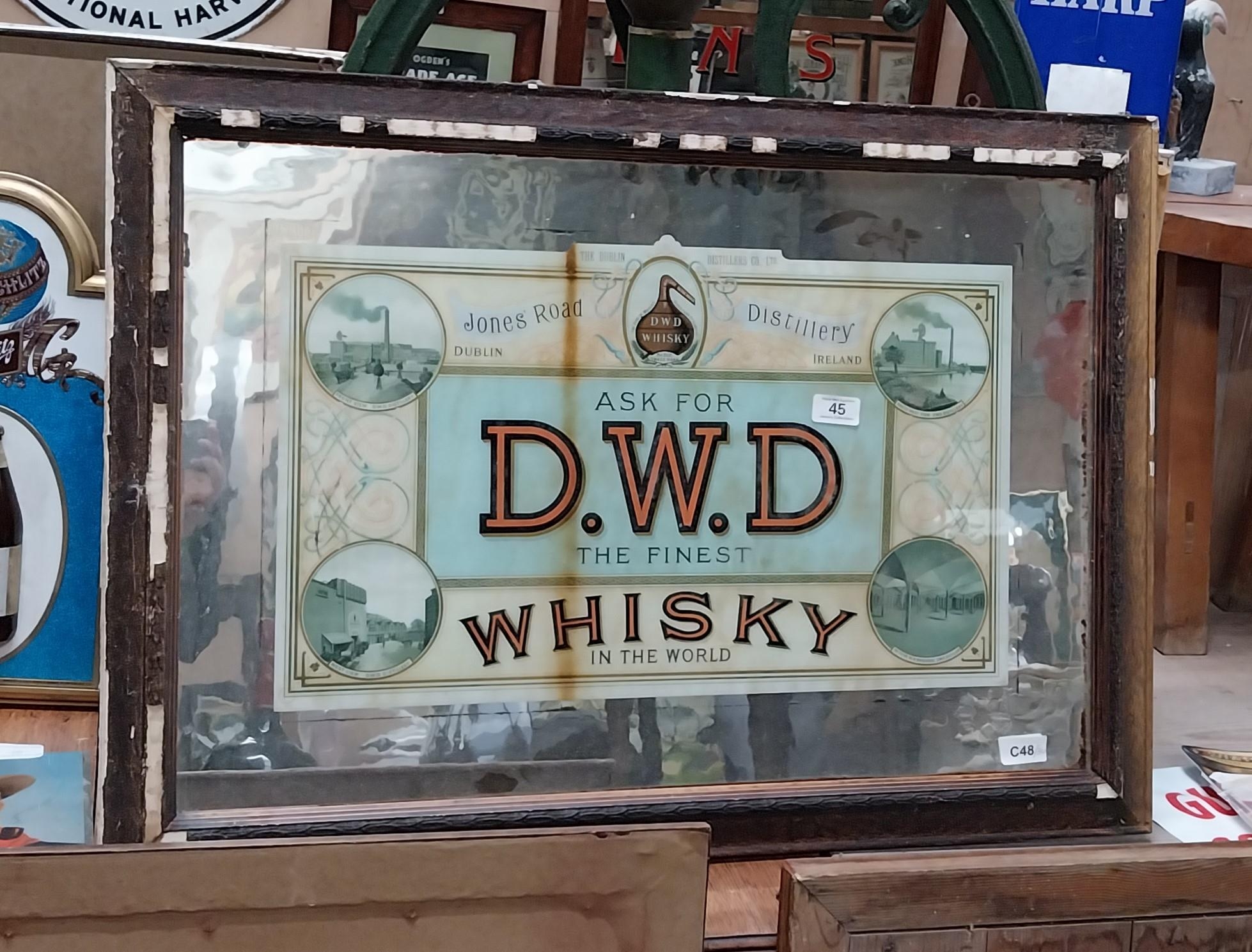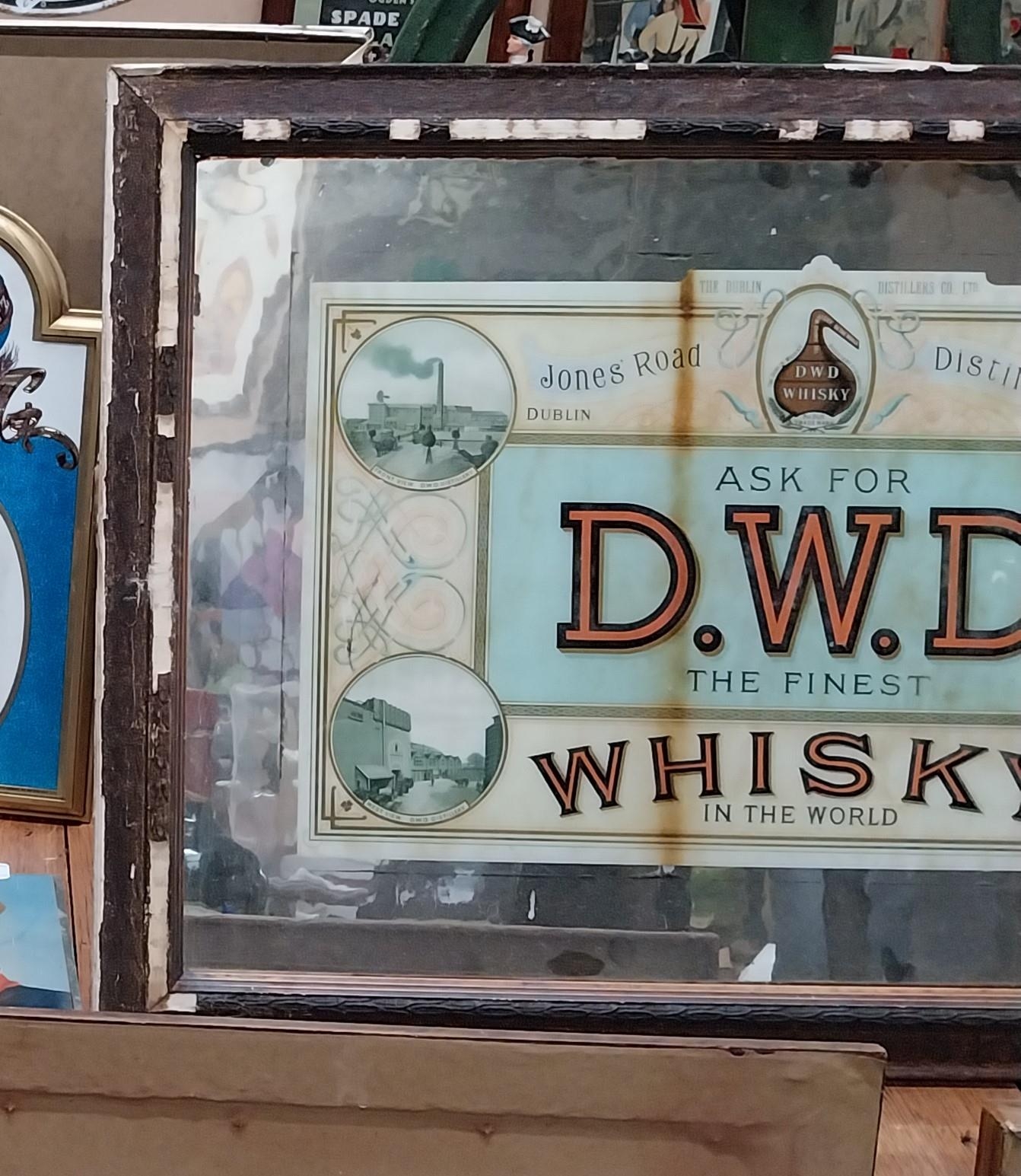 Rare framed DWD Whiskey reverse painted glass mirror depicting views of the Jones Road distillery.. {80 cm H x 80 cm W}.