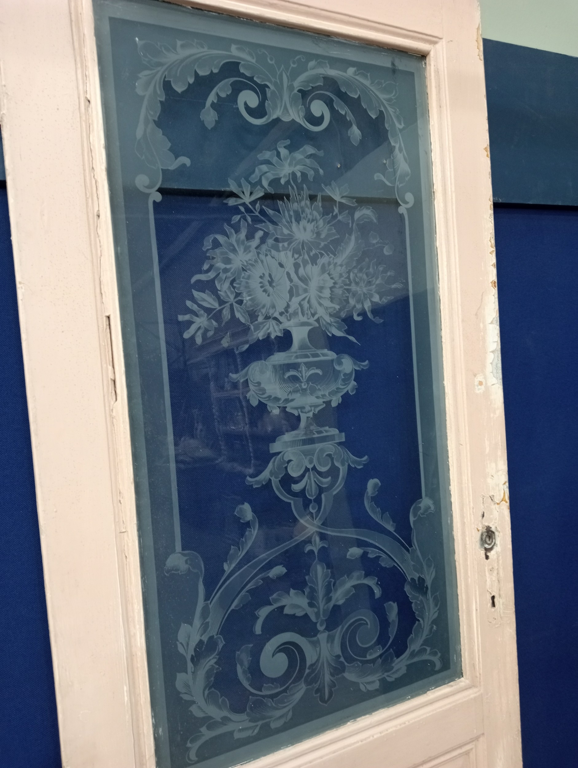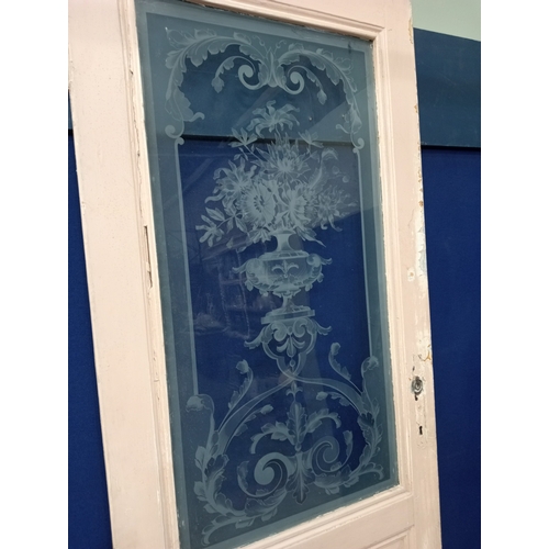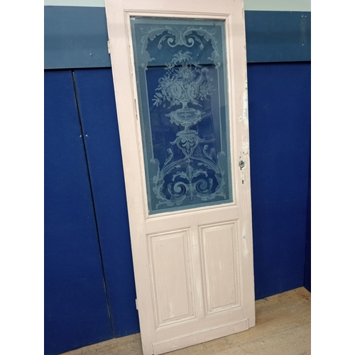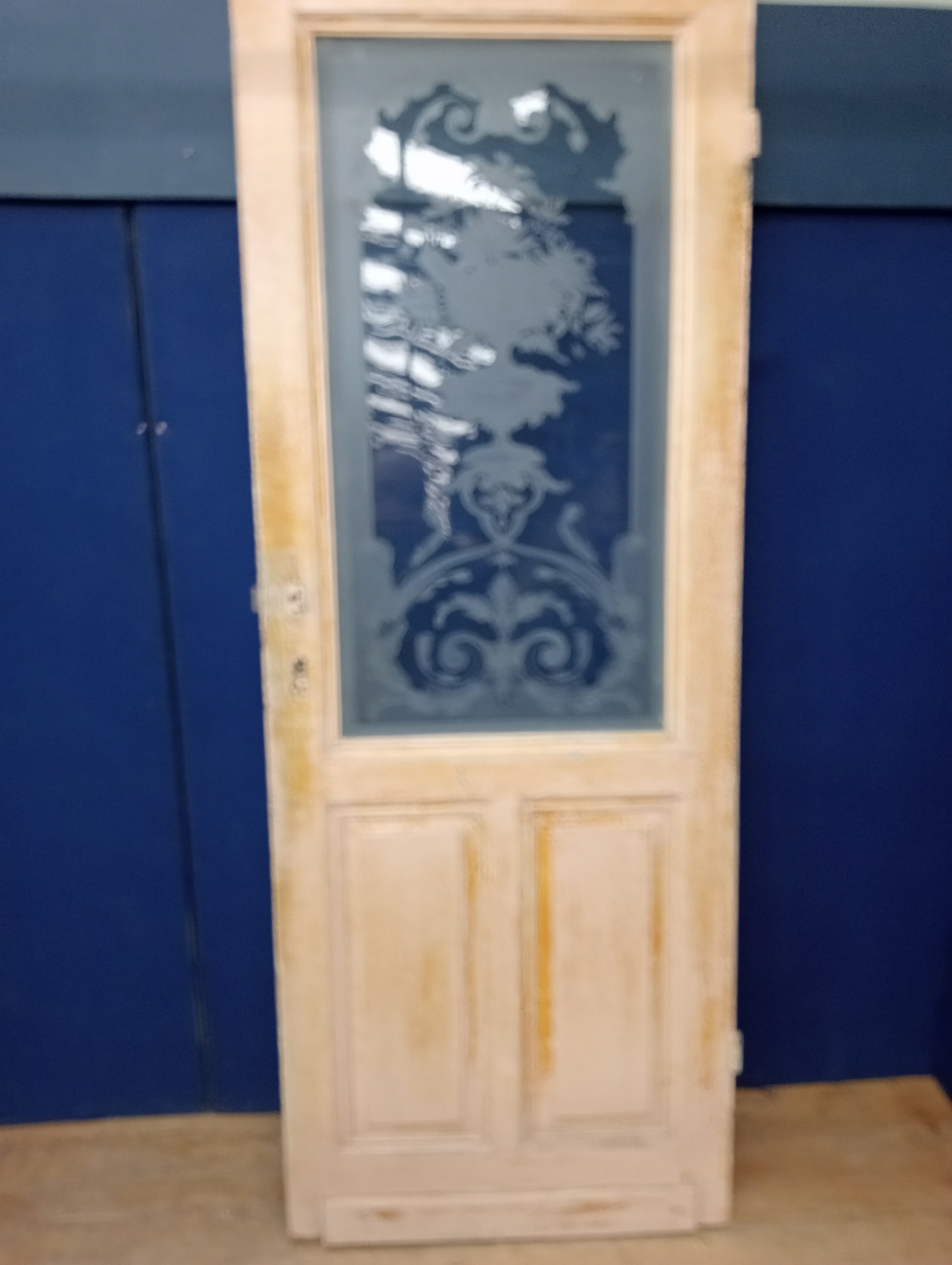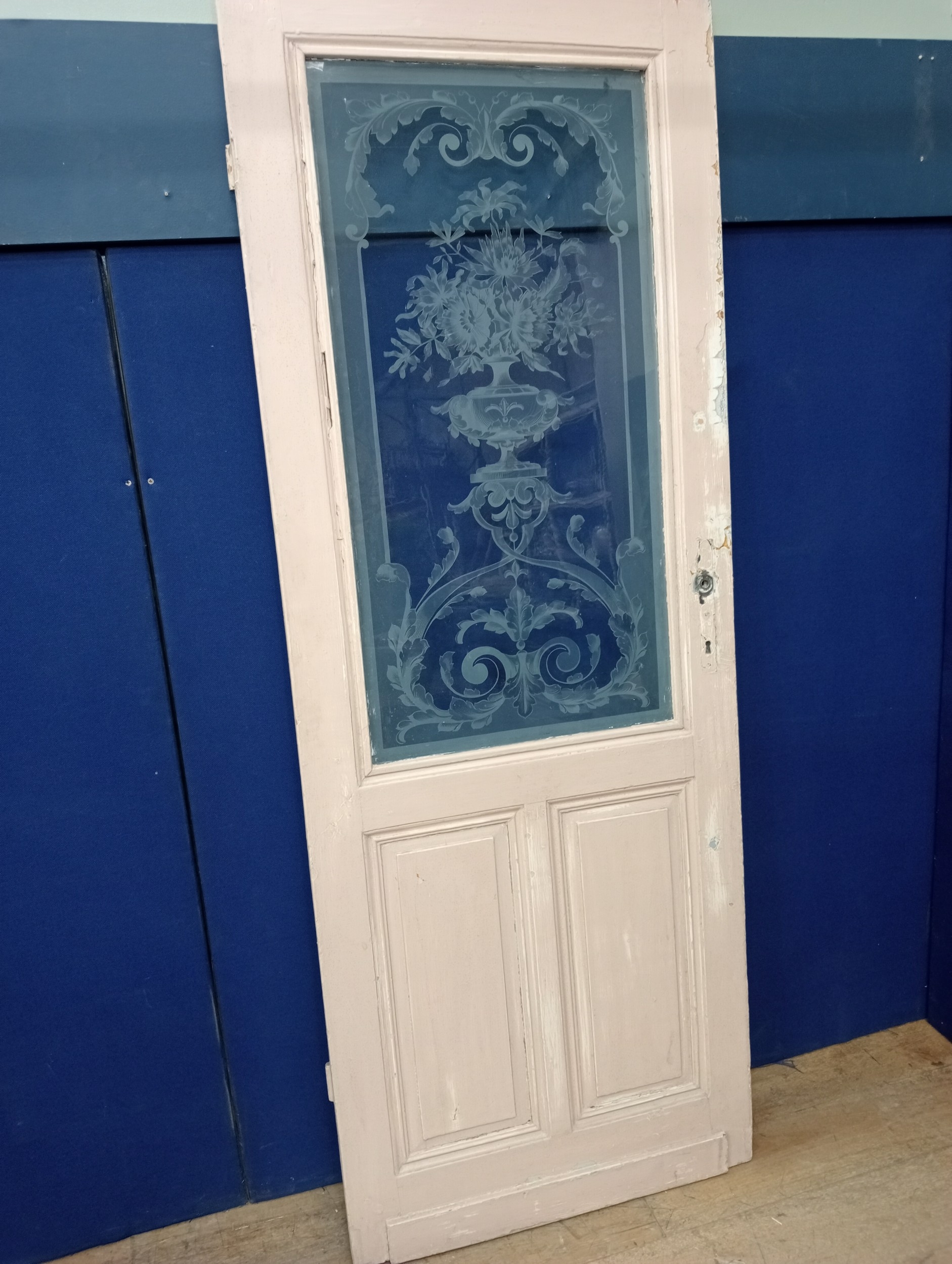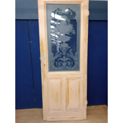 Pine door with inset etched glass panel. (H 217cm x W 80cm )
