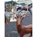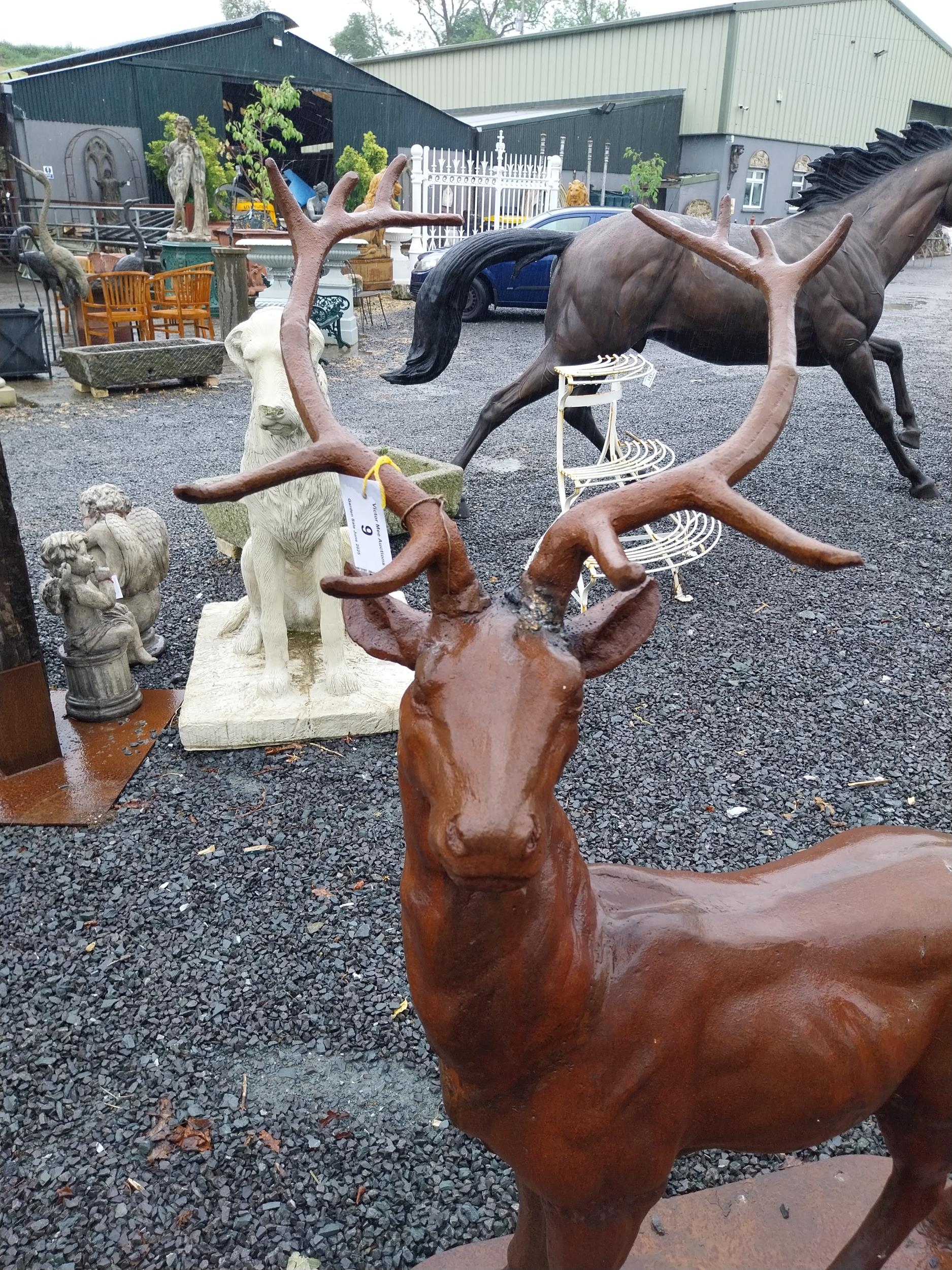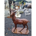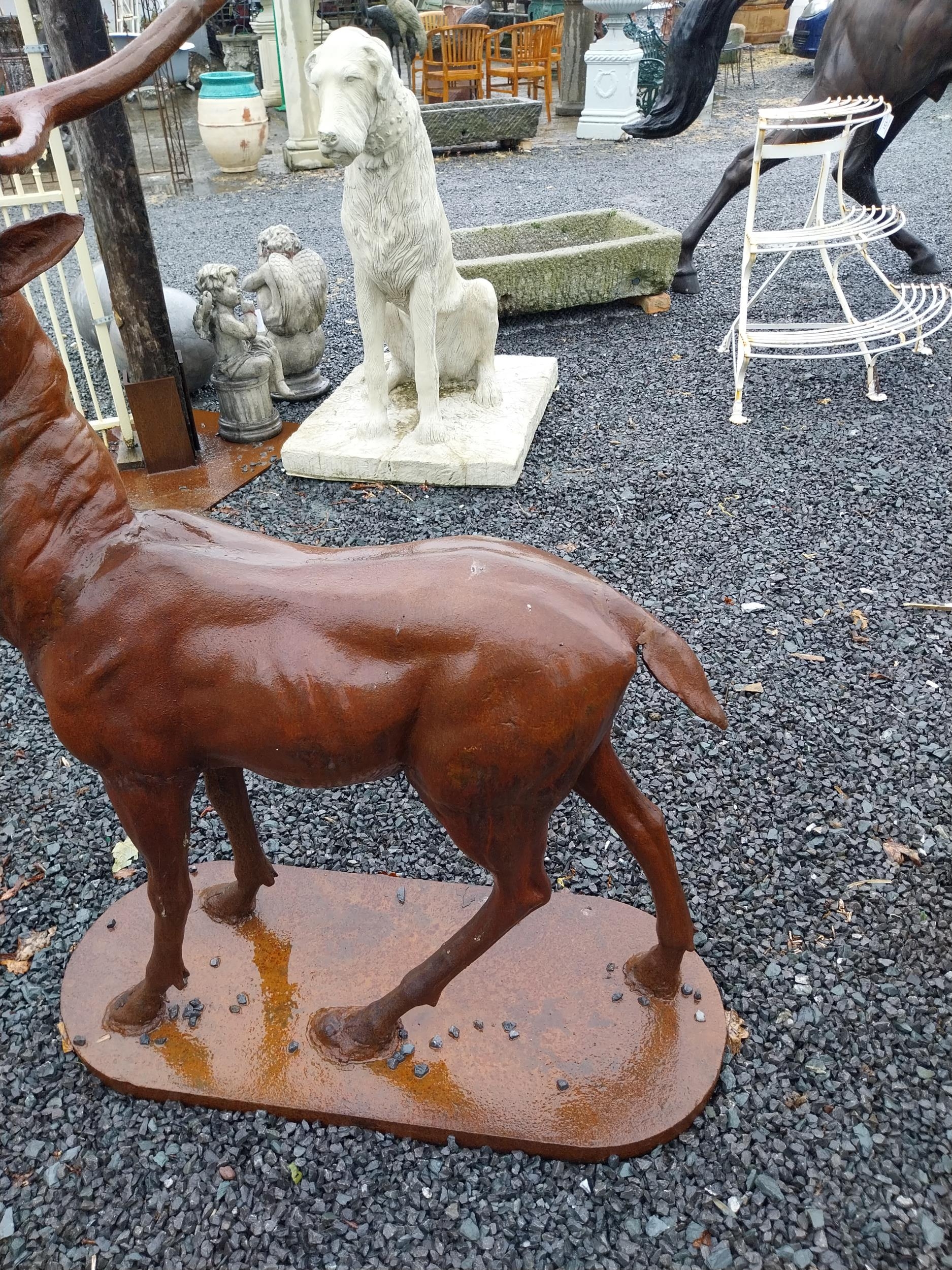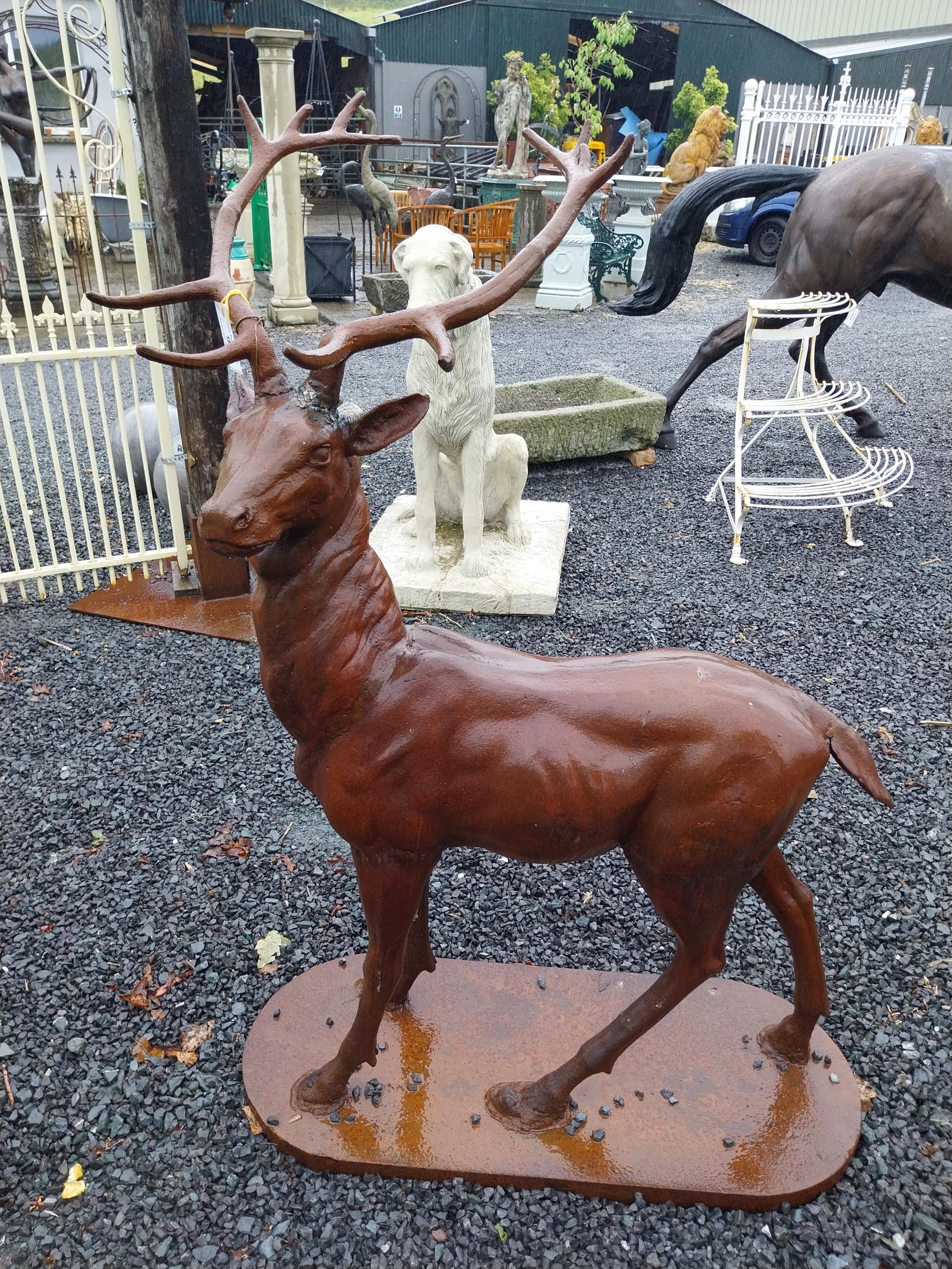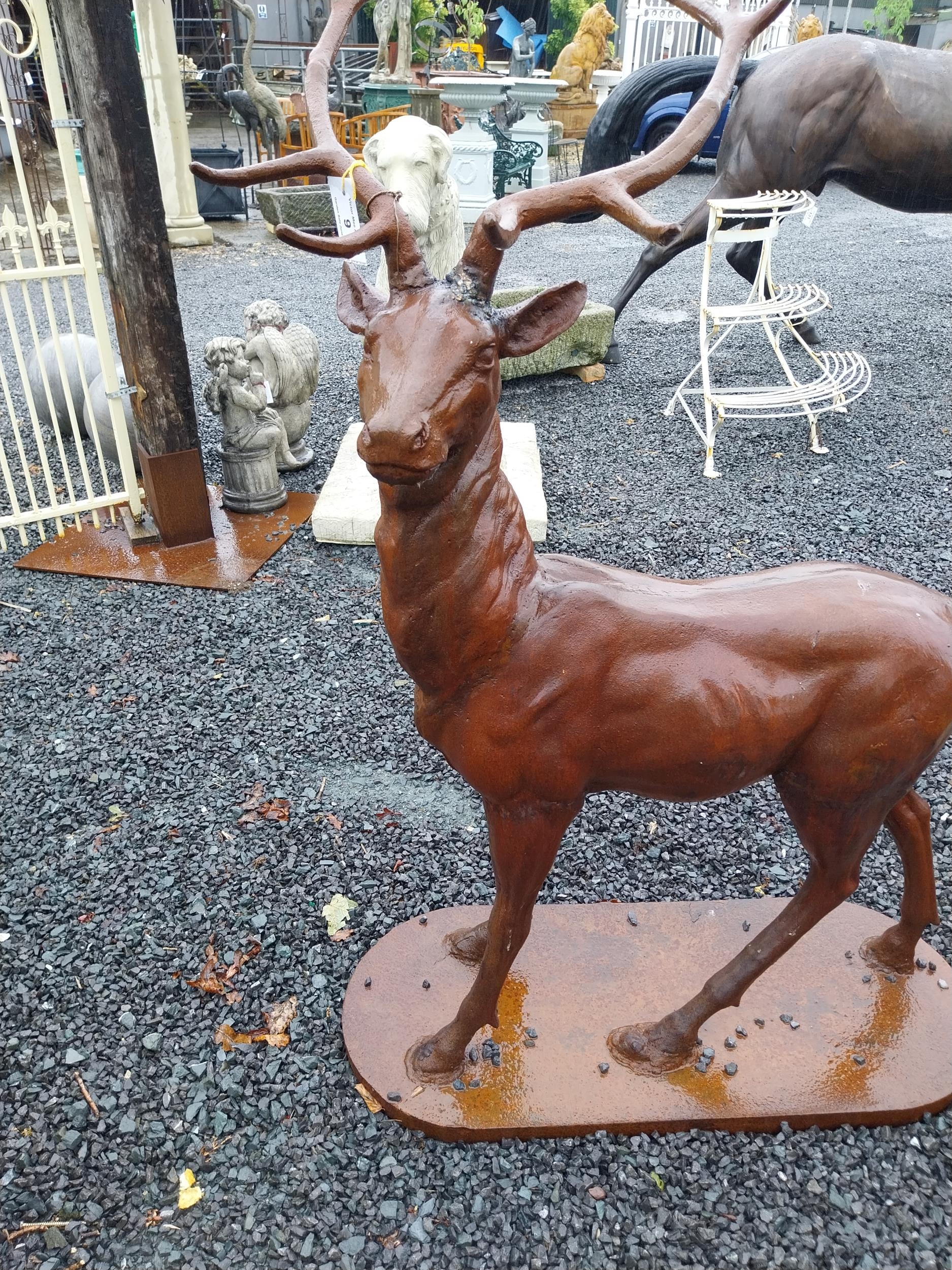 Cast iron Stag on plinth. {150 cm H x 100 cm W x 42 cm D}.