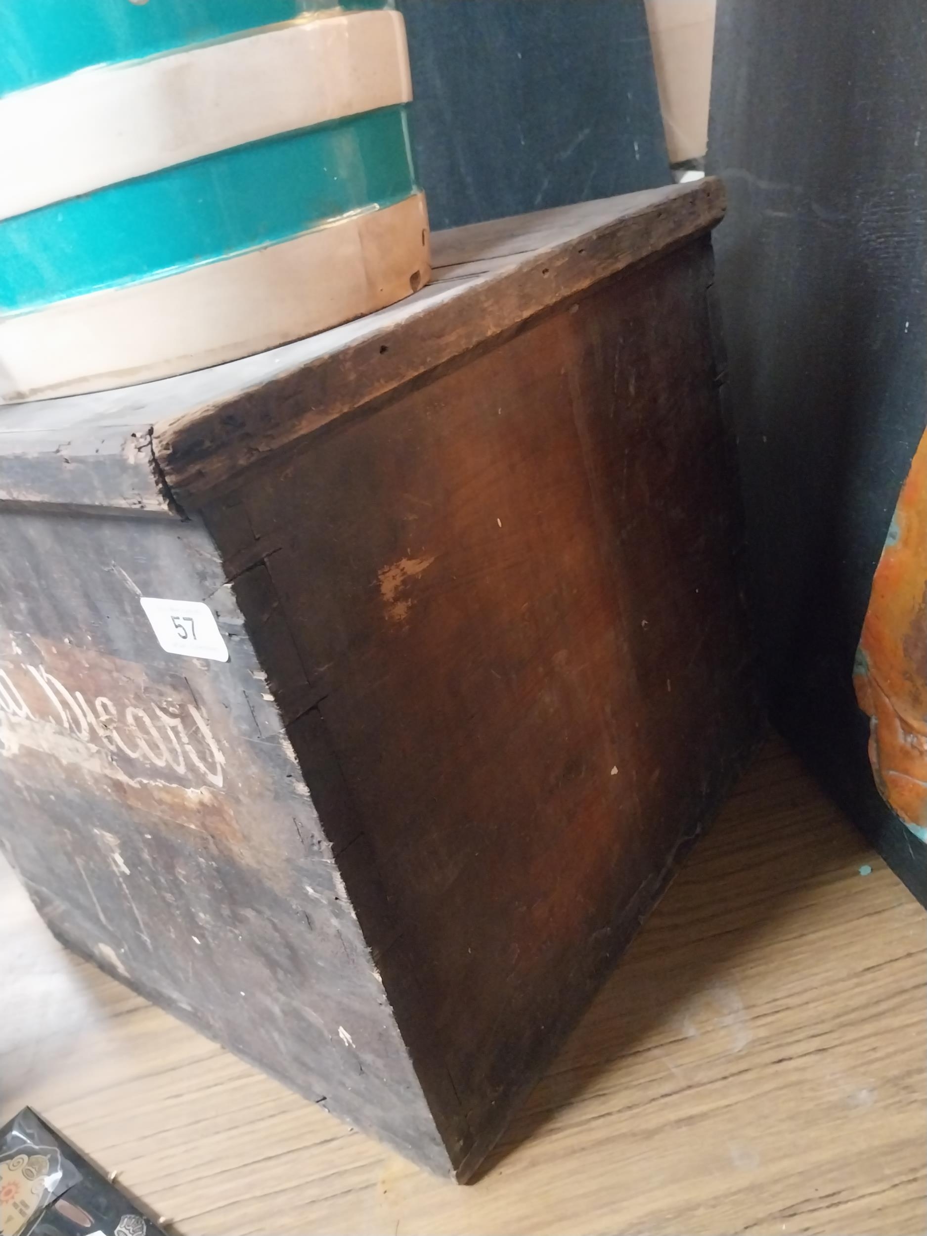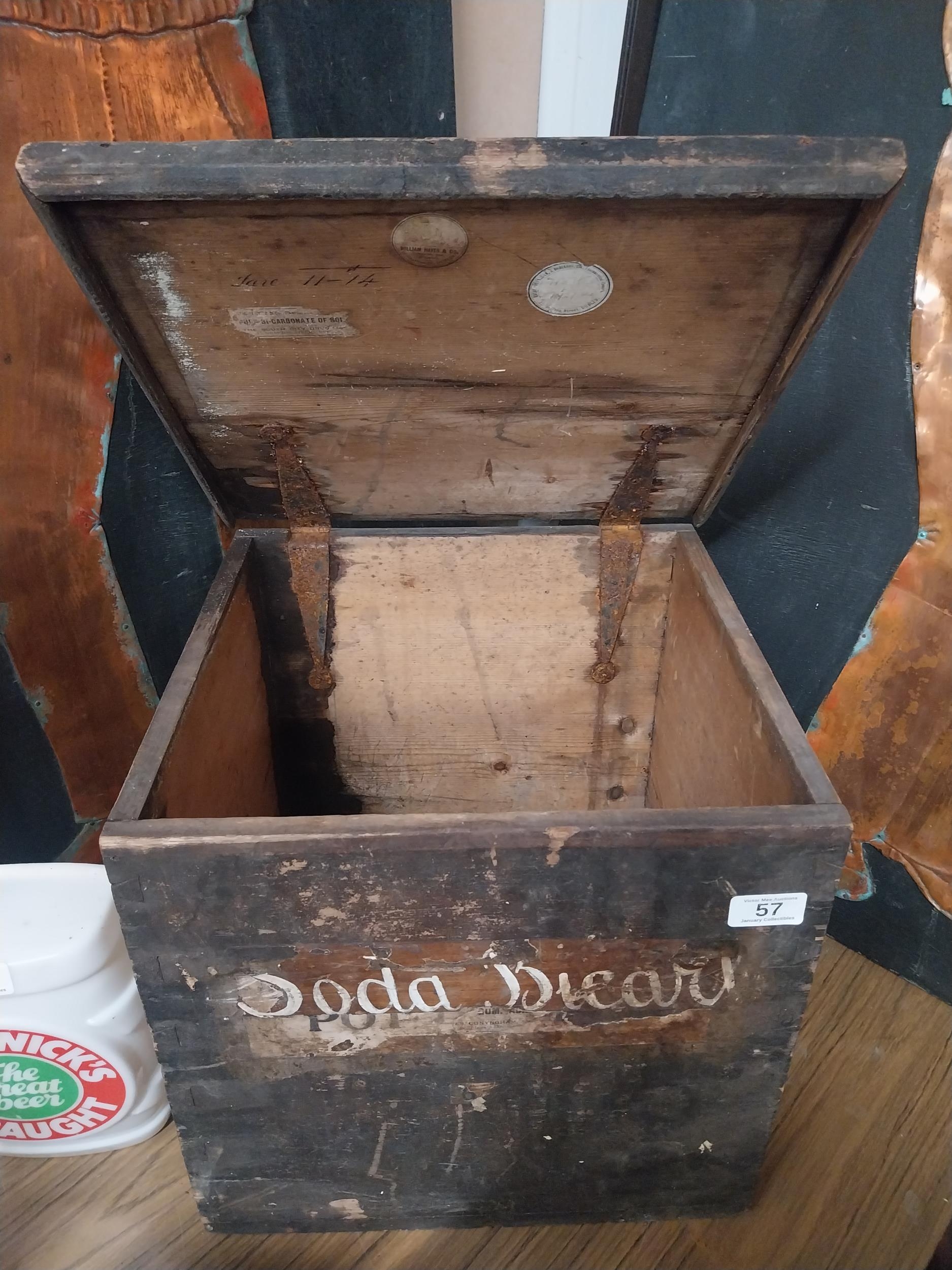19th. C. wooden advertising Chemist's Soda Bicarb box { 35cm H X 38cm W X 37cm D}.