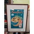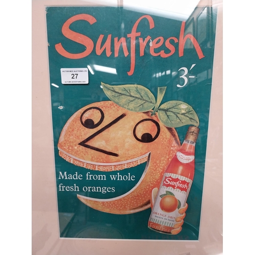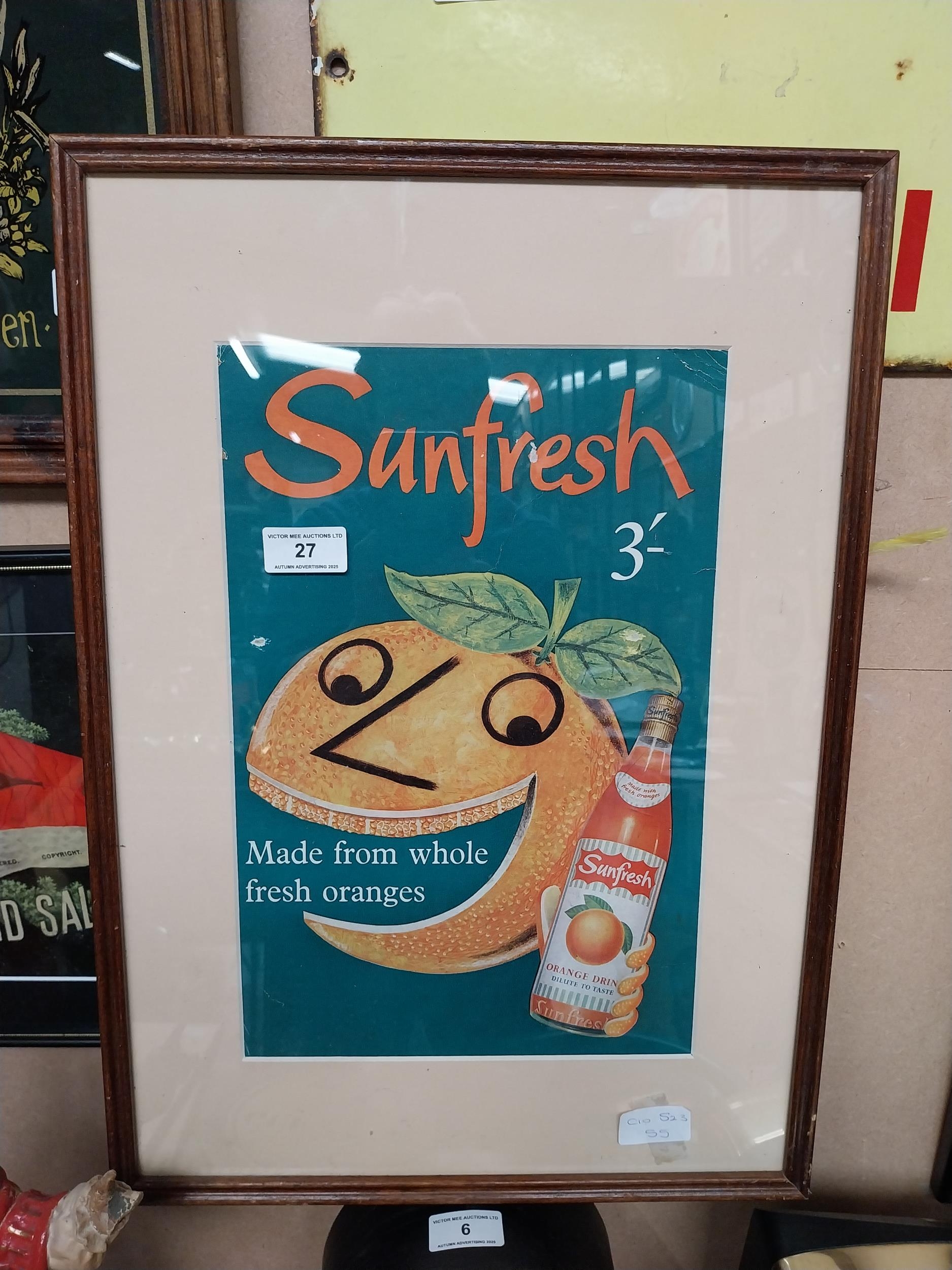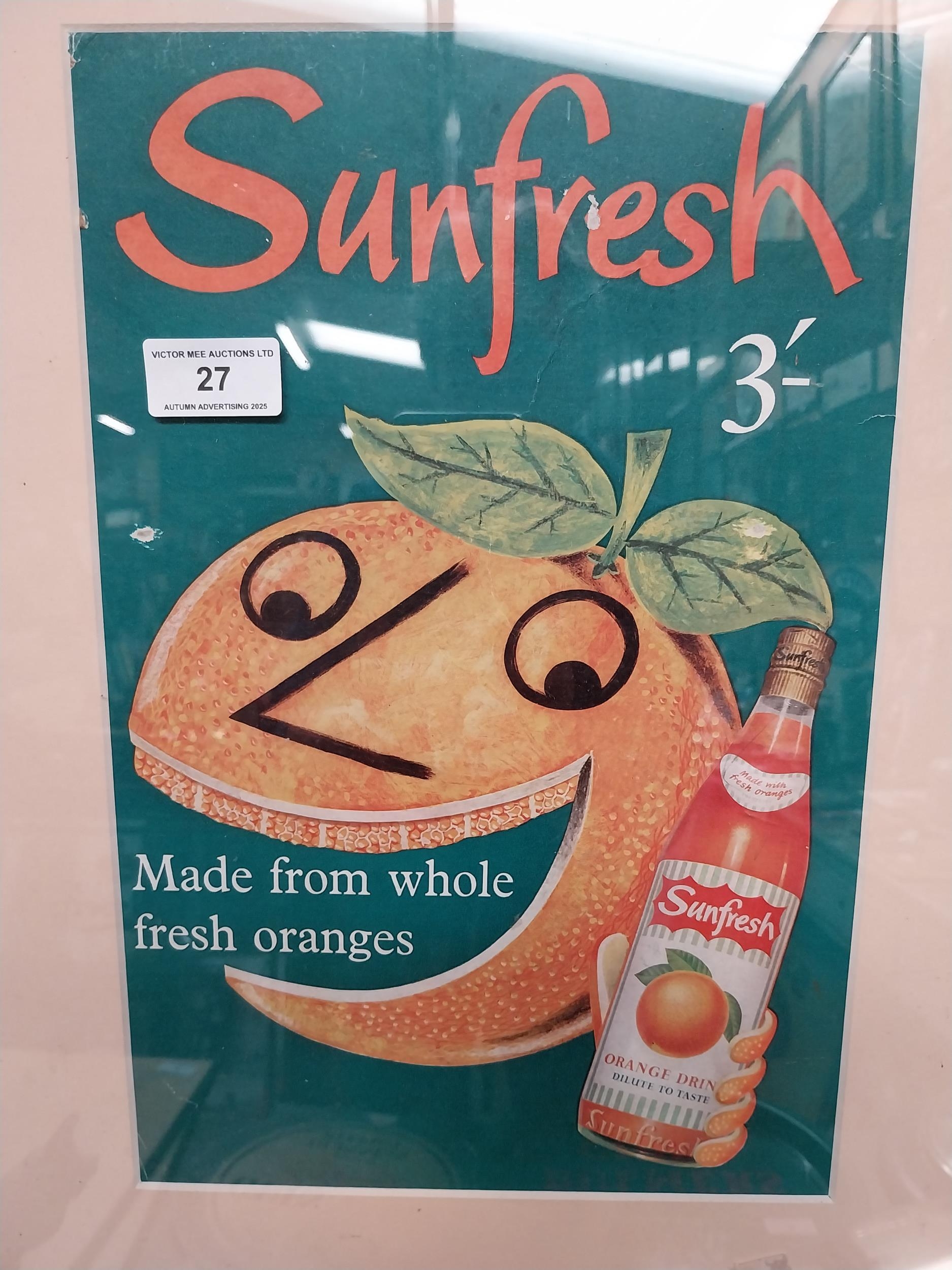 Sunfresh Orange framed cardboard advertising showcard. {52 cm H x 36 cm D}