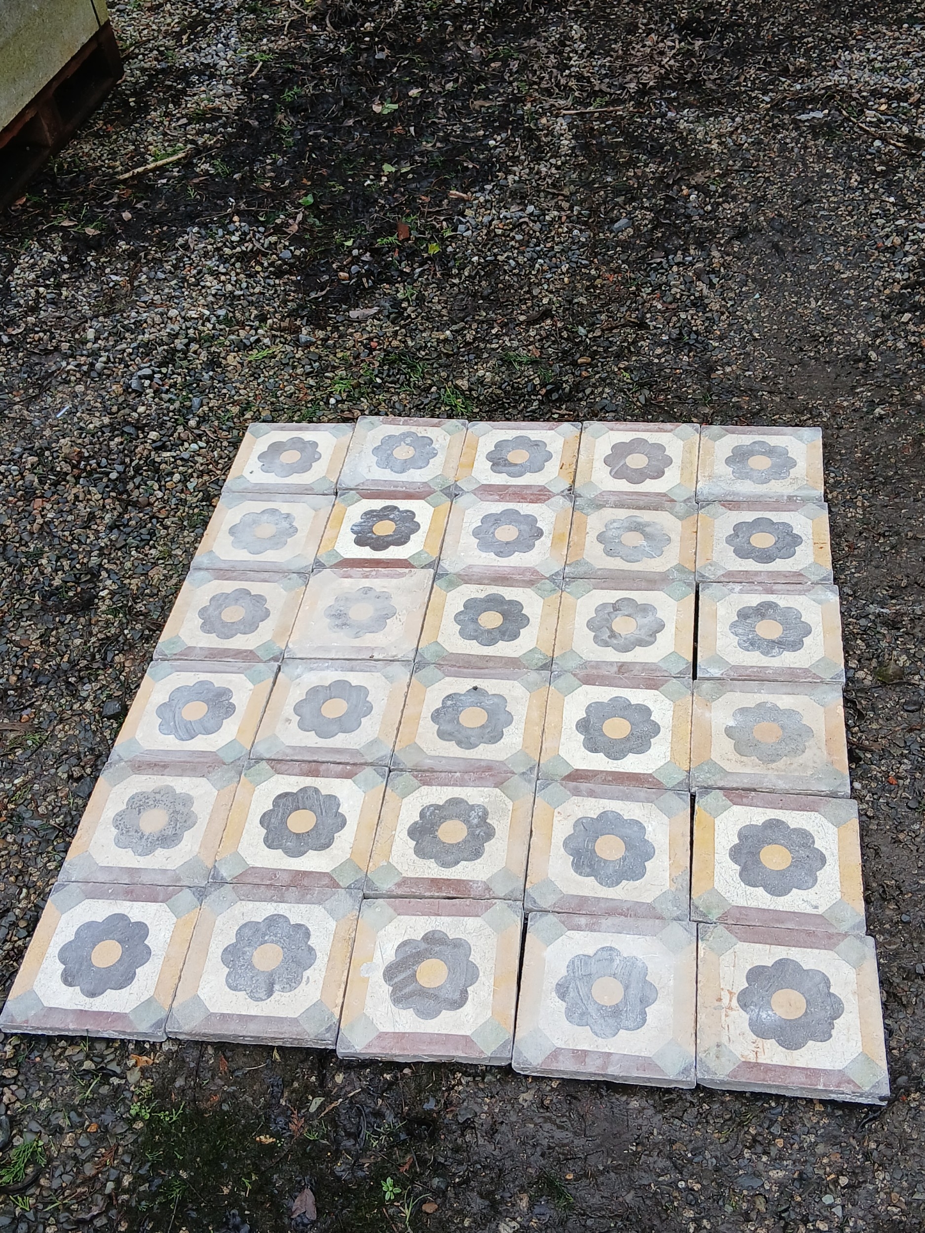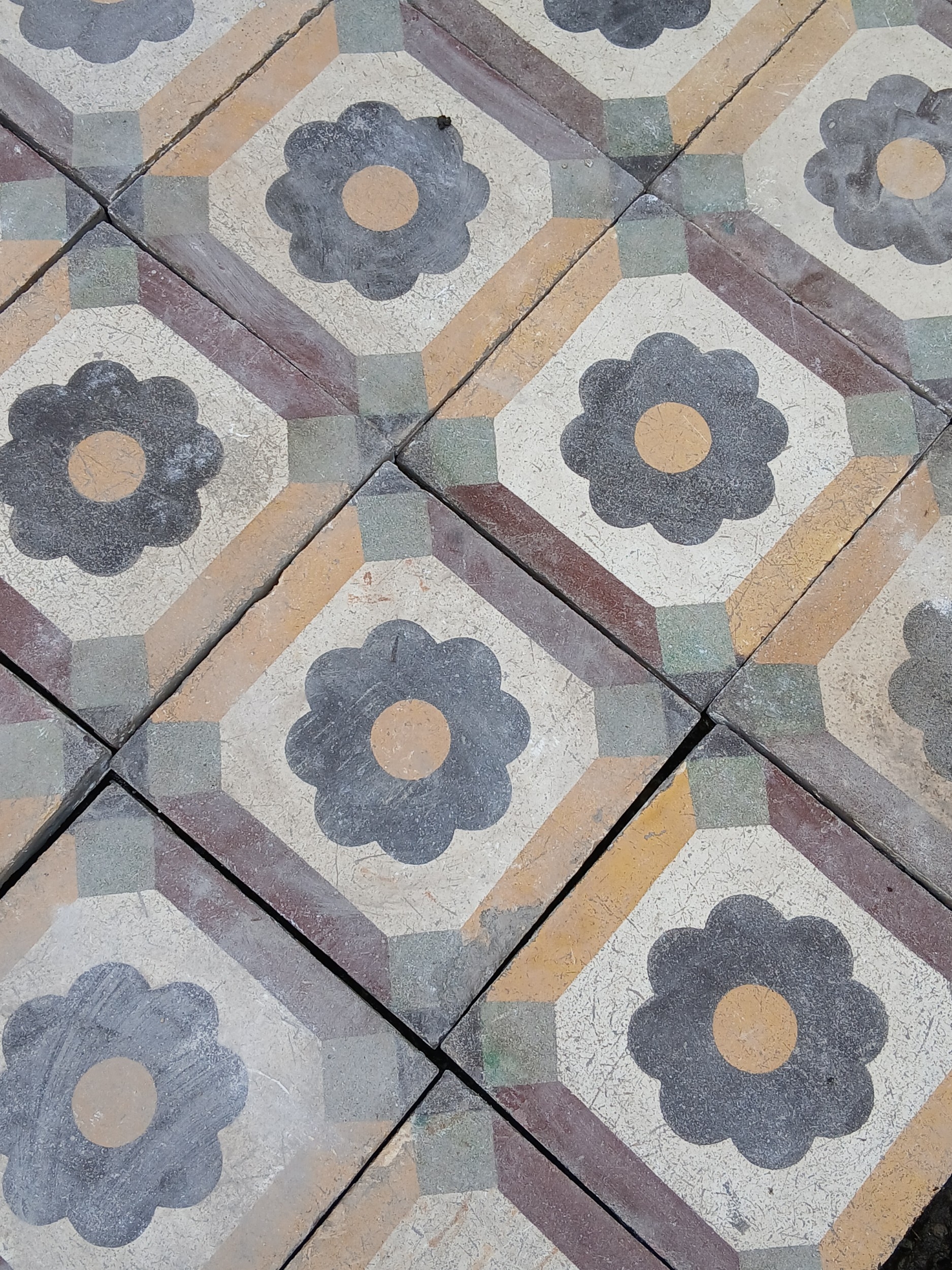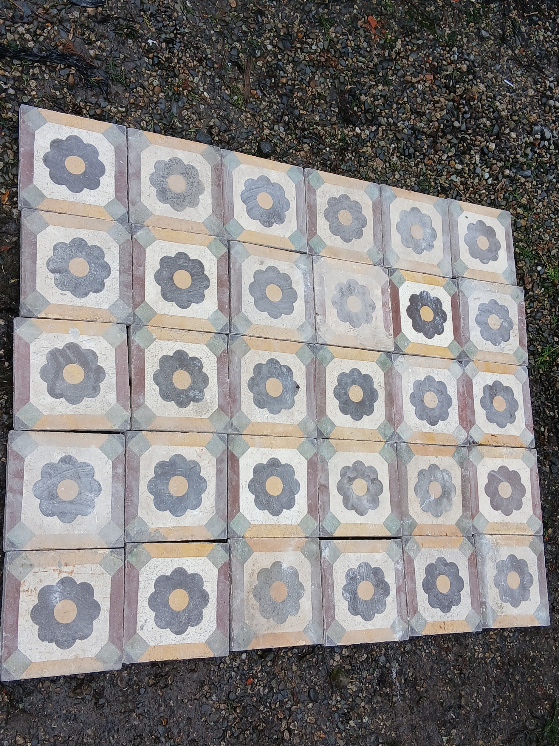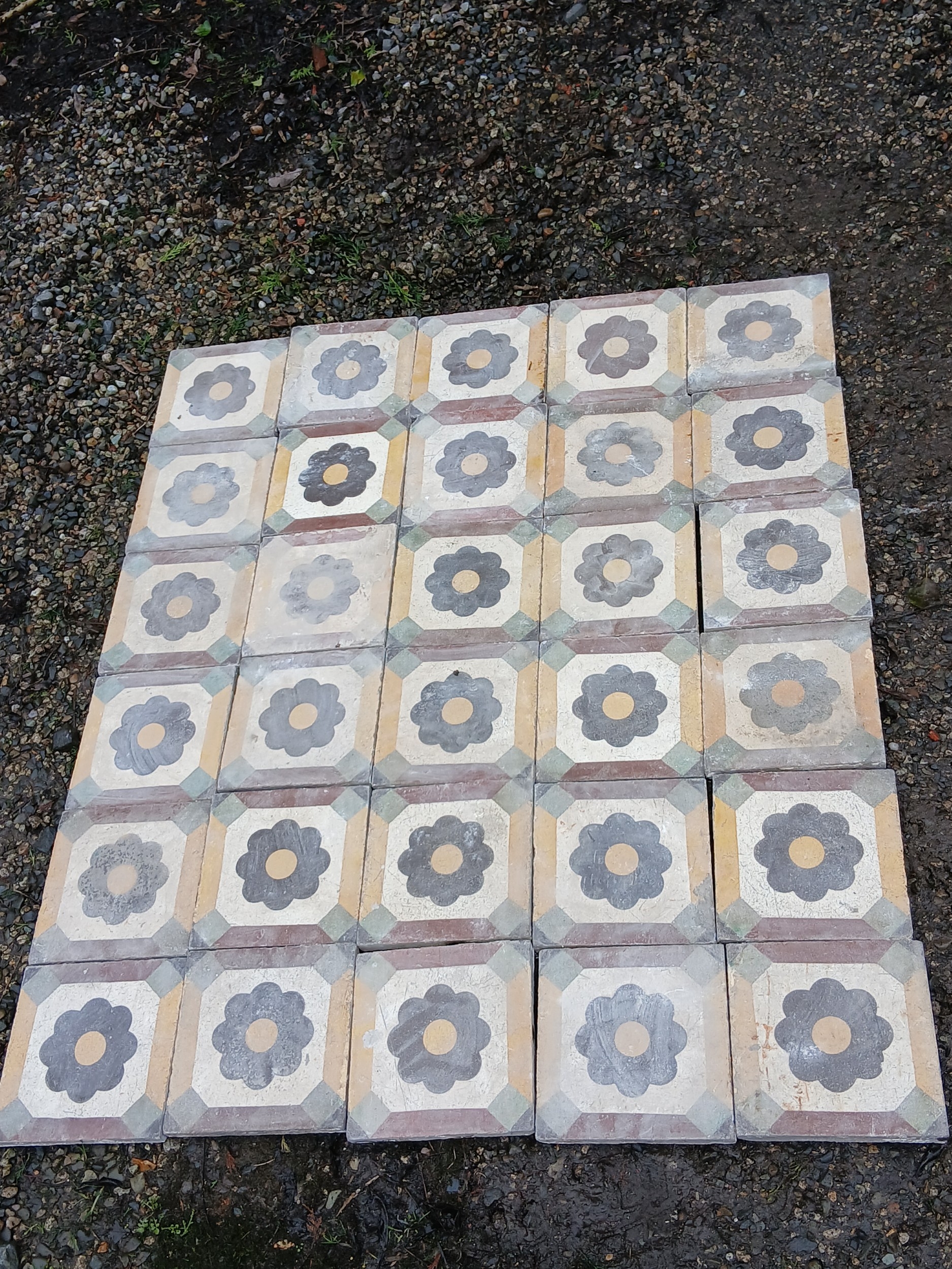Lot of 10 Sq Meters reclaimed tiles with flower design. { Each 20cm Sq. }