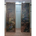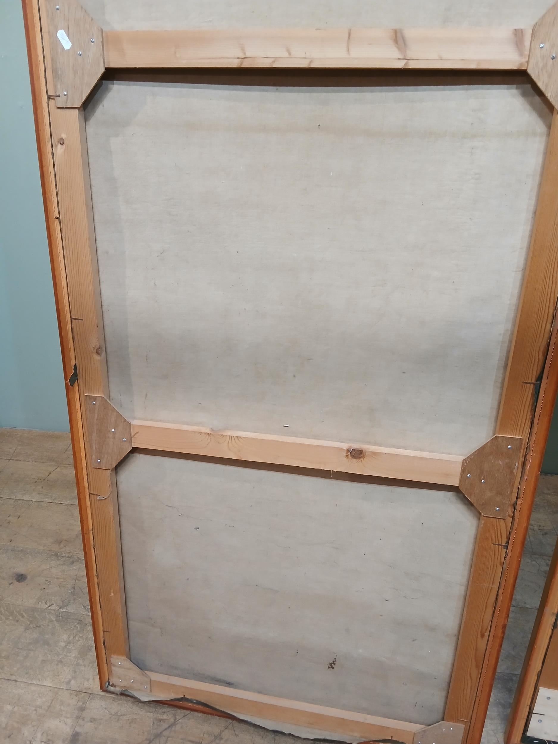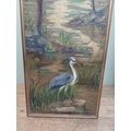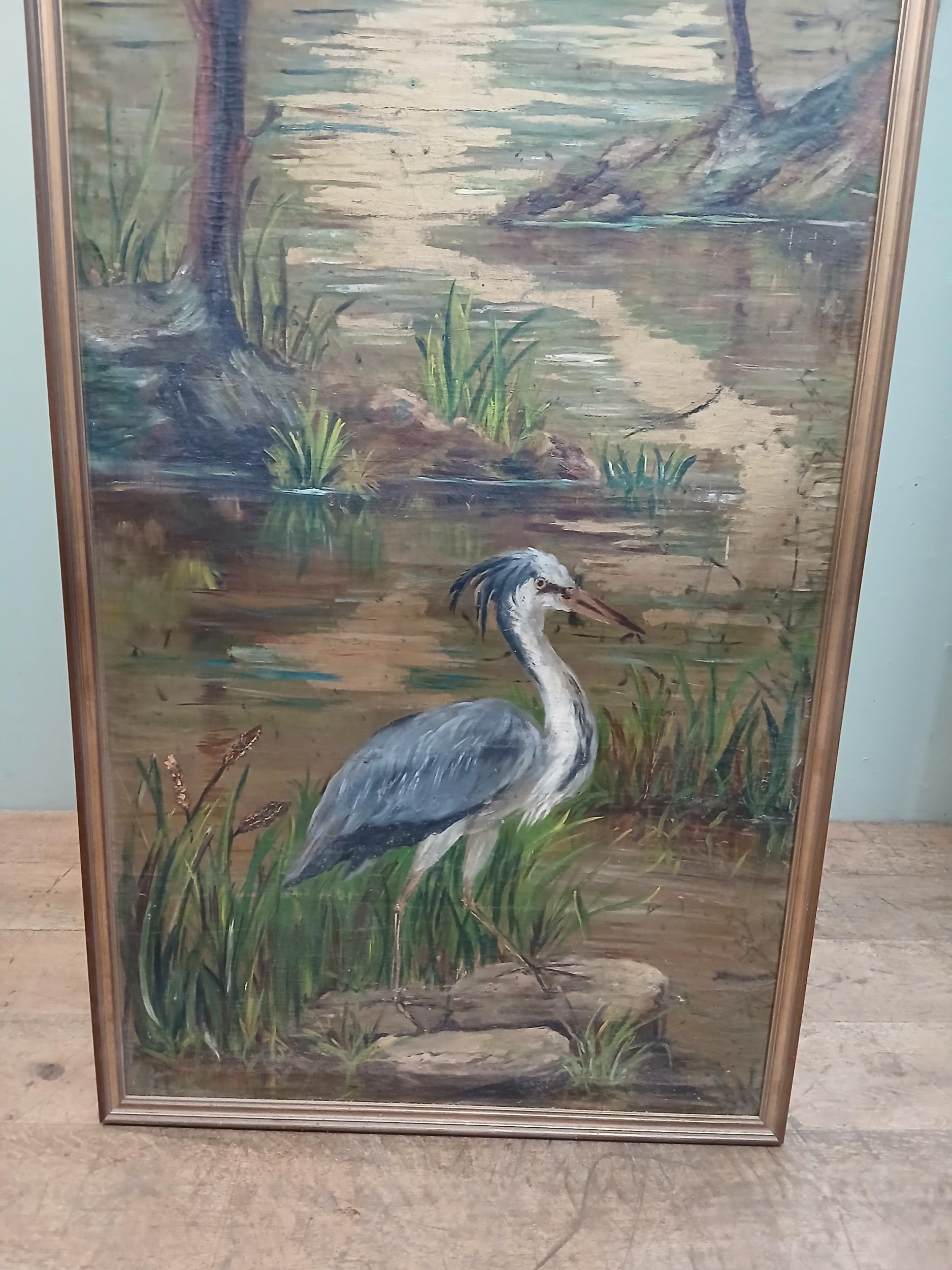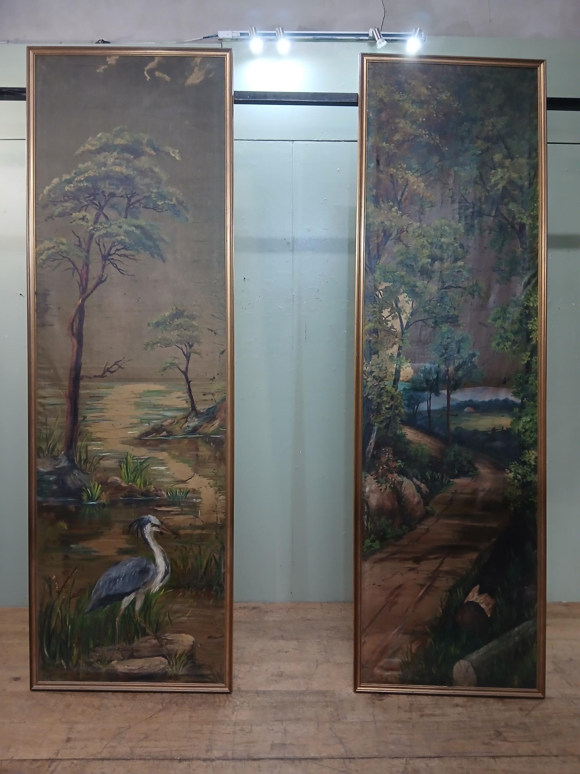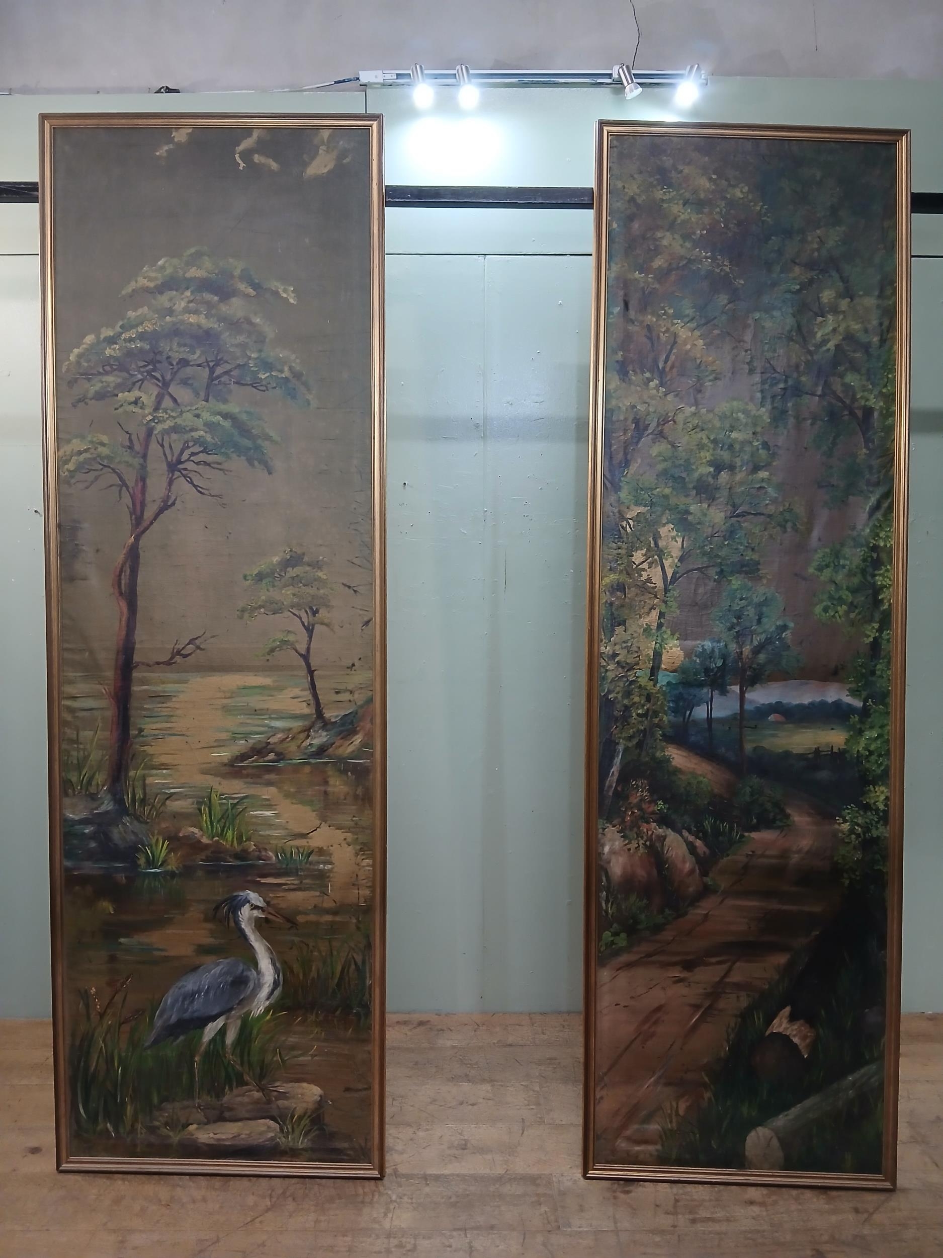 Pair of oil on canvas scenes - Heron and Countryside. {H 250cm x w 79cm }. NOT AVAILABLE TO VIEW IN PERSON.