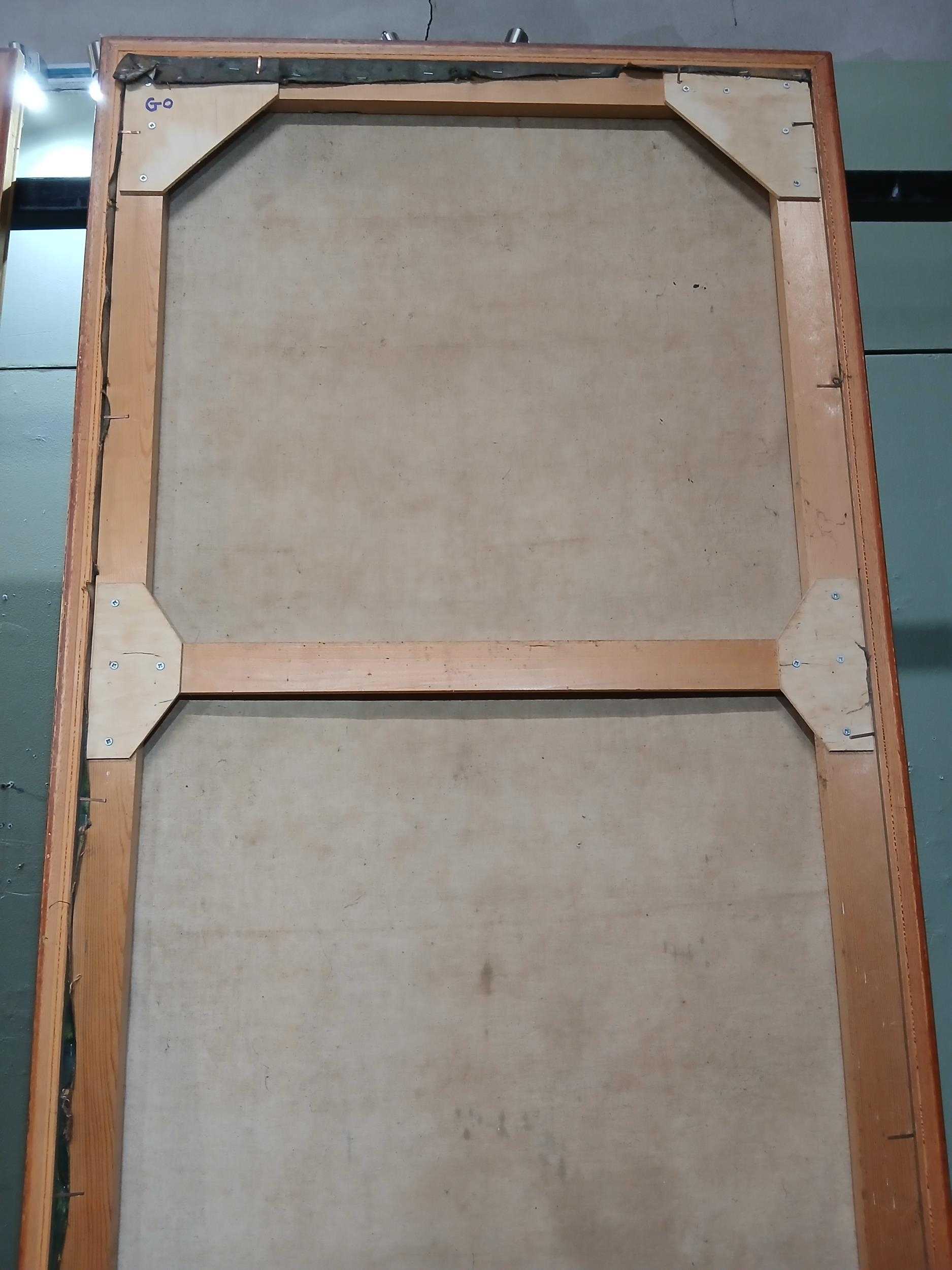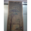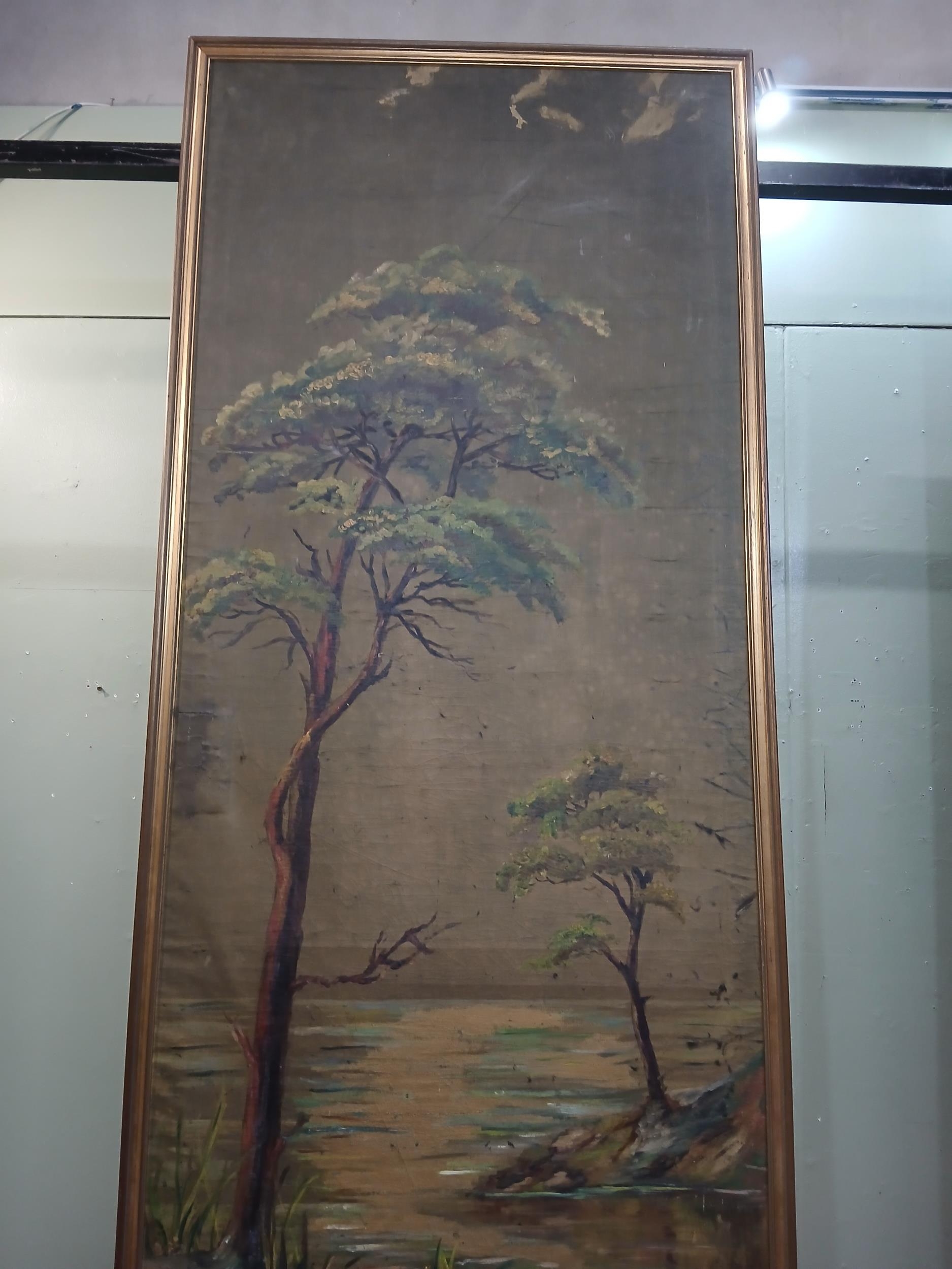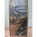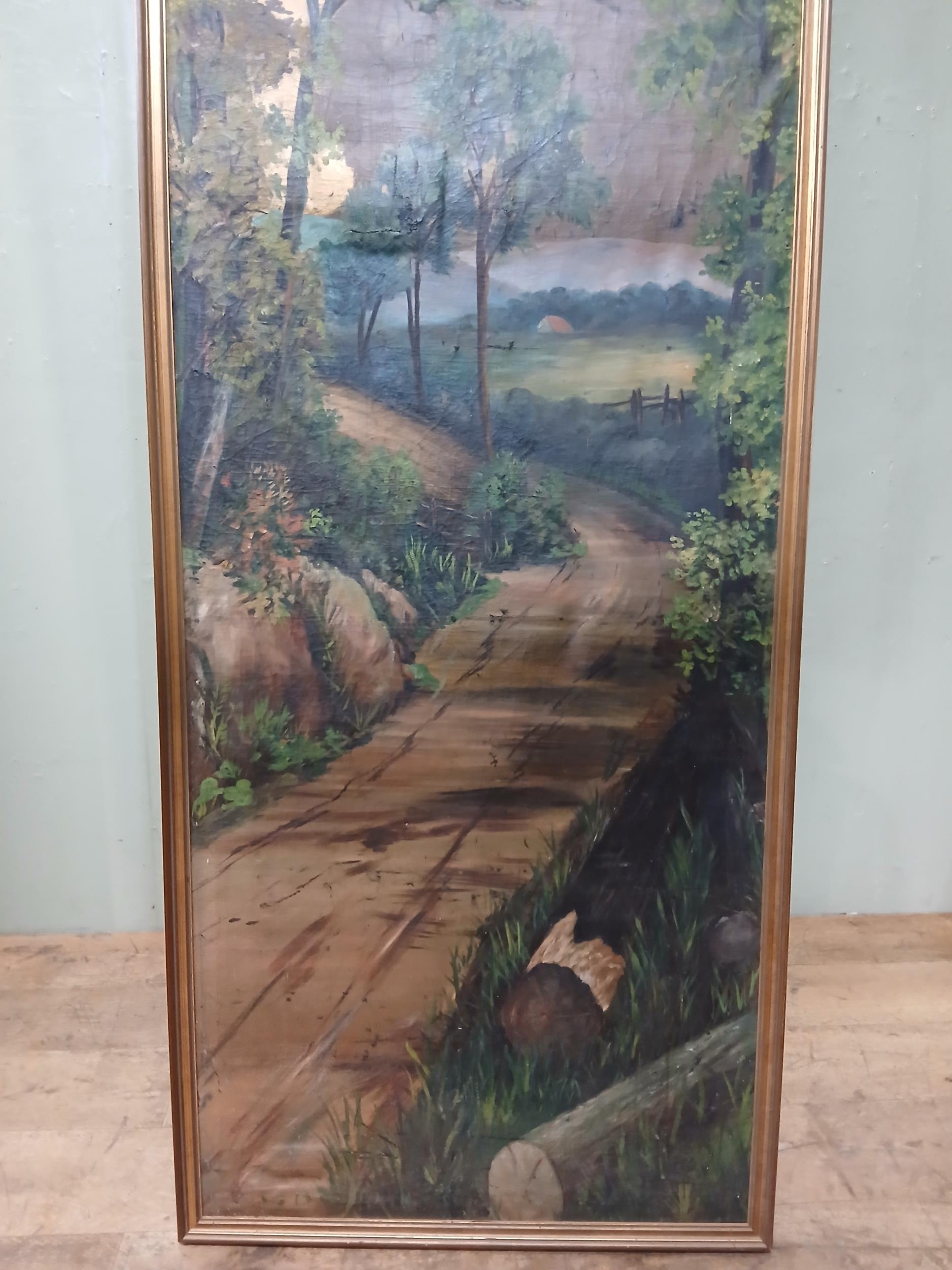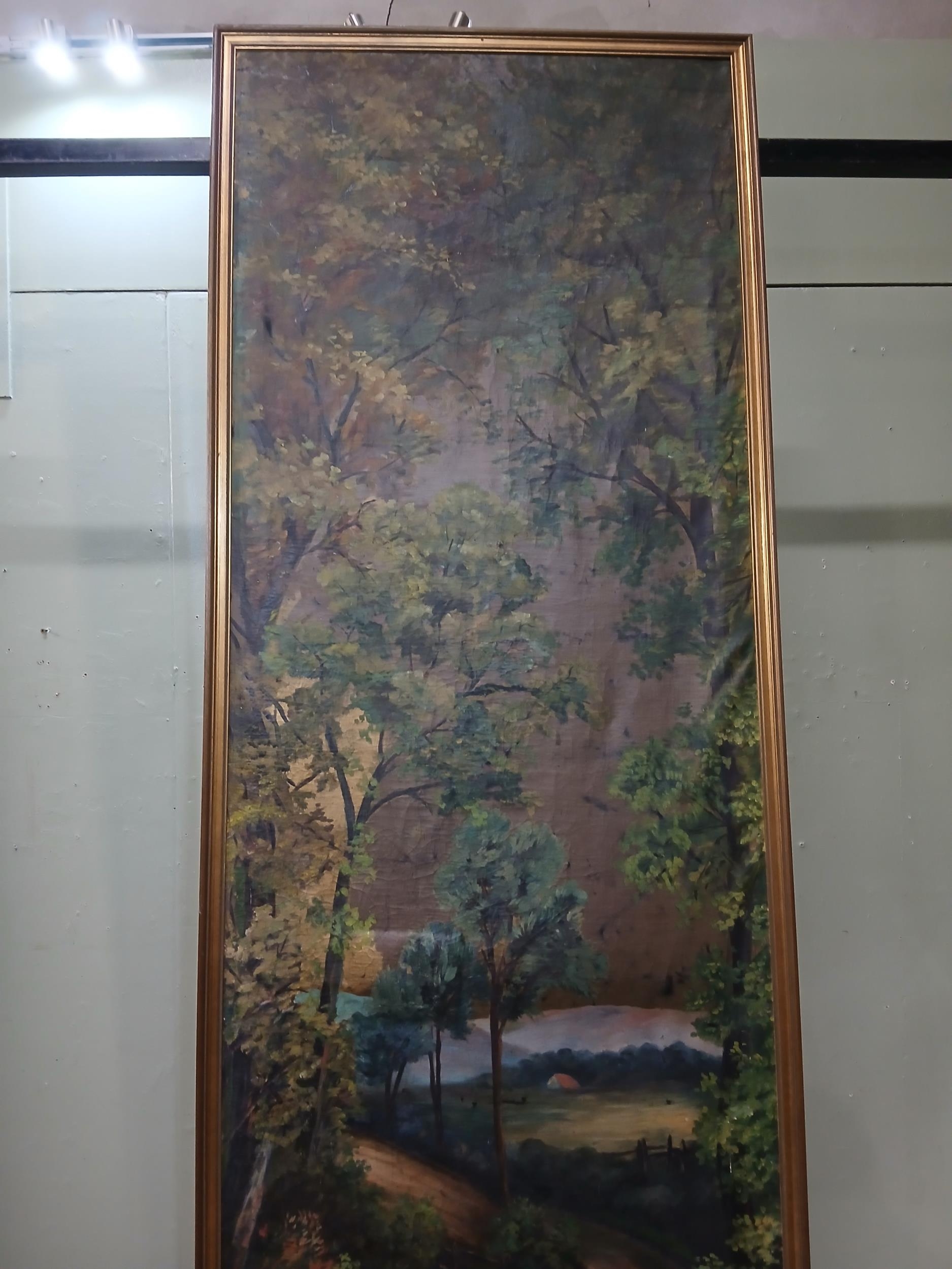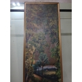Pair of oil on canvas scenes - Heron and Countryside. {H 250cm x w 79cm }. NOT AVAILABLE TO VIEW IN PERSON.