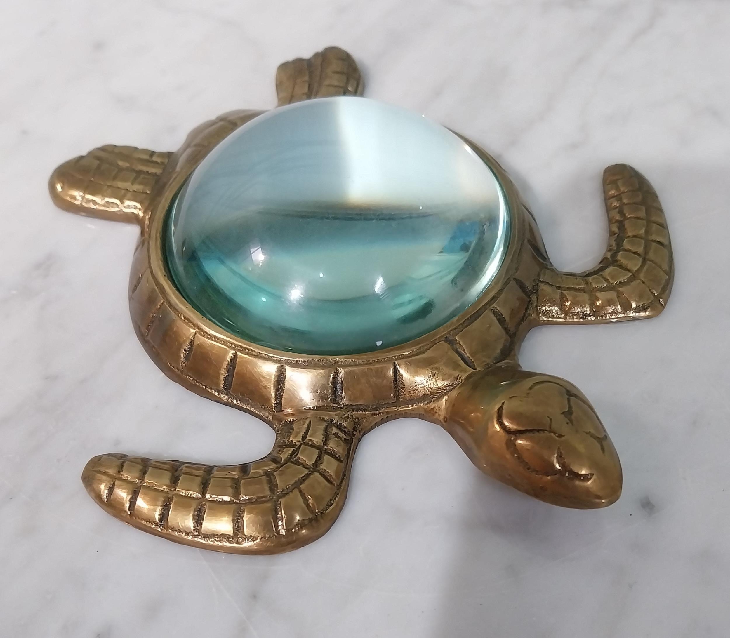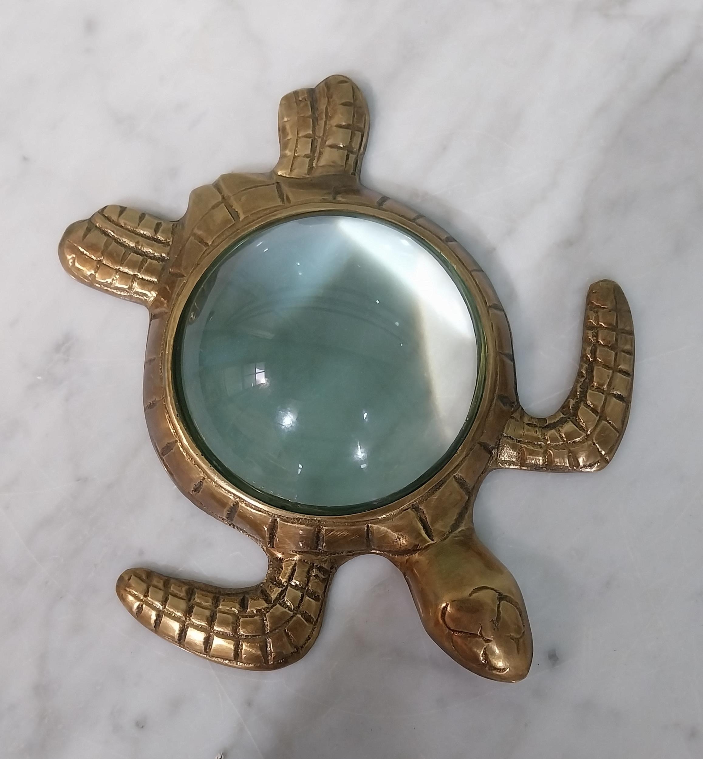 Unusual brass magnifying glass in the form of a Turtle. [4 cm H x 16 cm W x 15 cm D}.