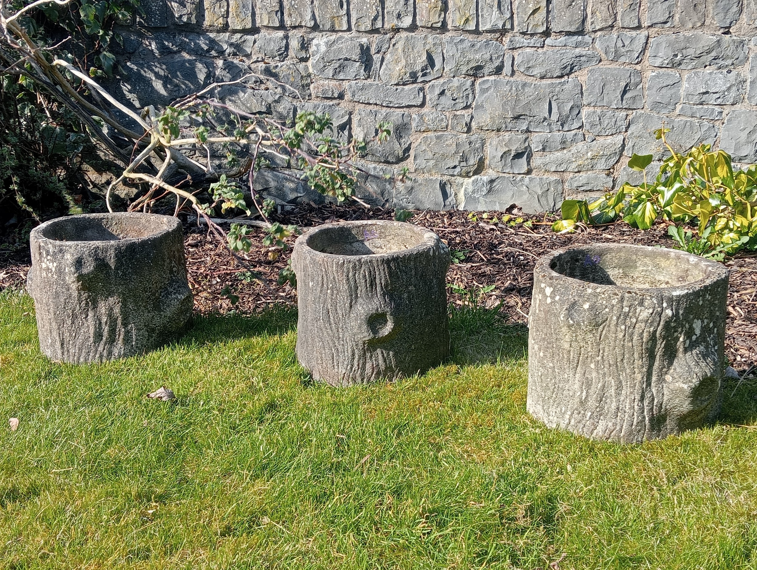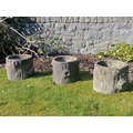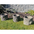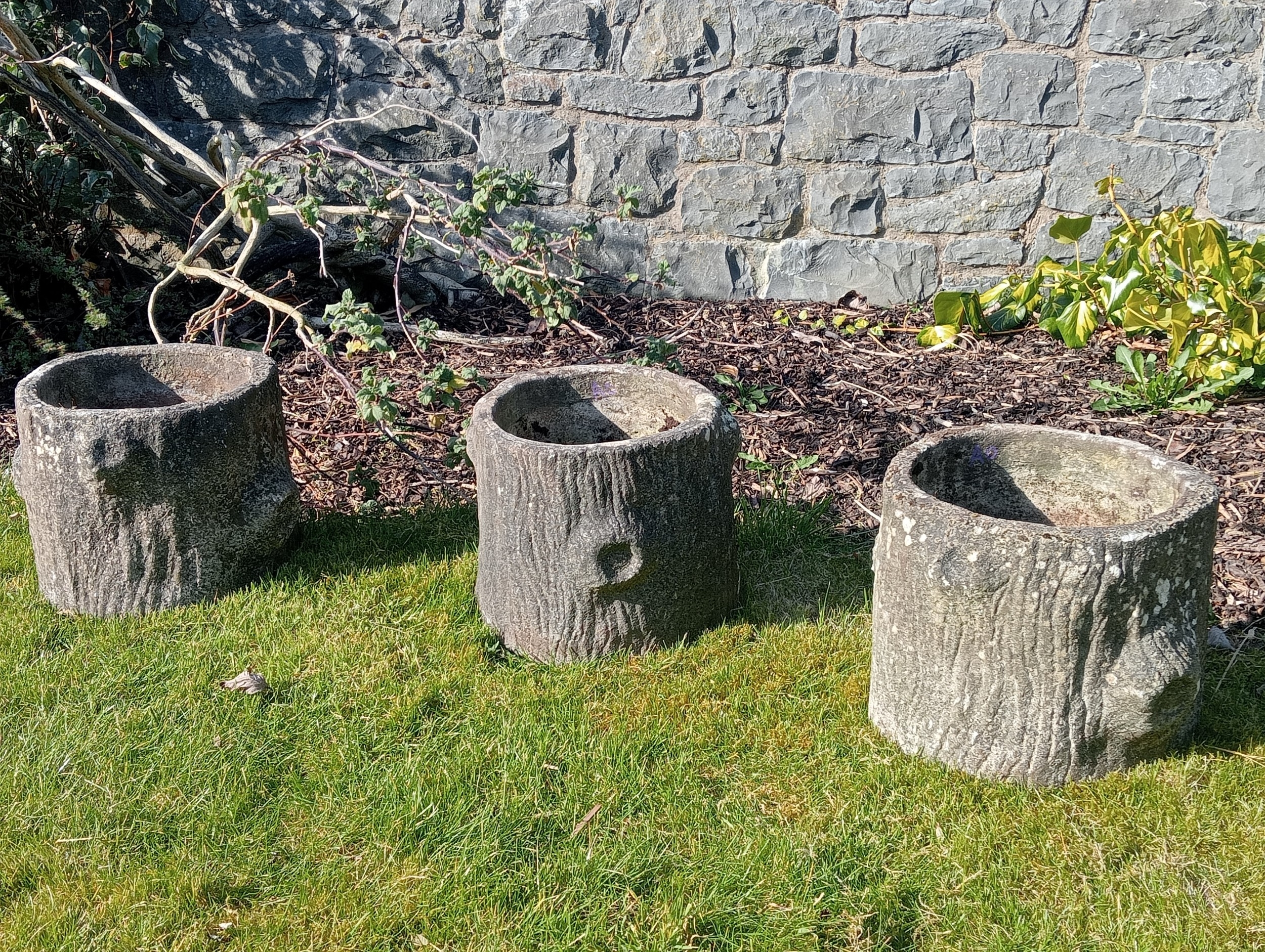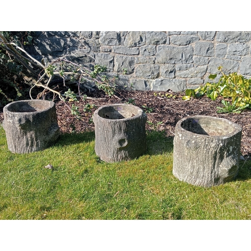 Set of three composition stone log style planters (H 29cm x Dia 32cm )