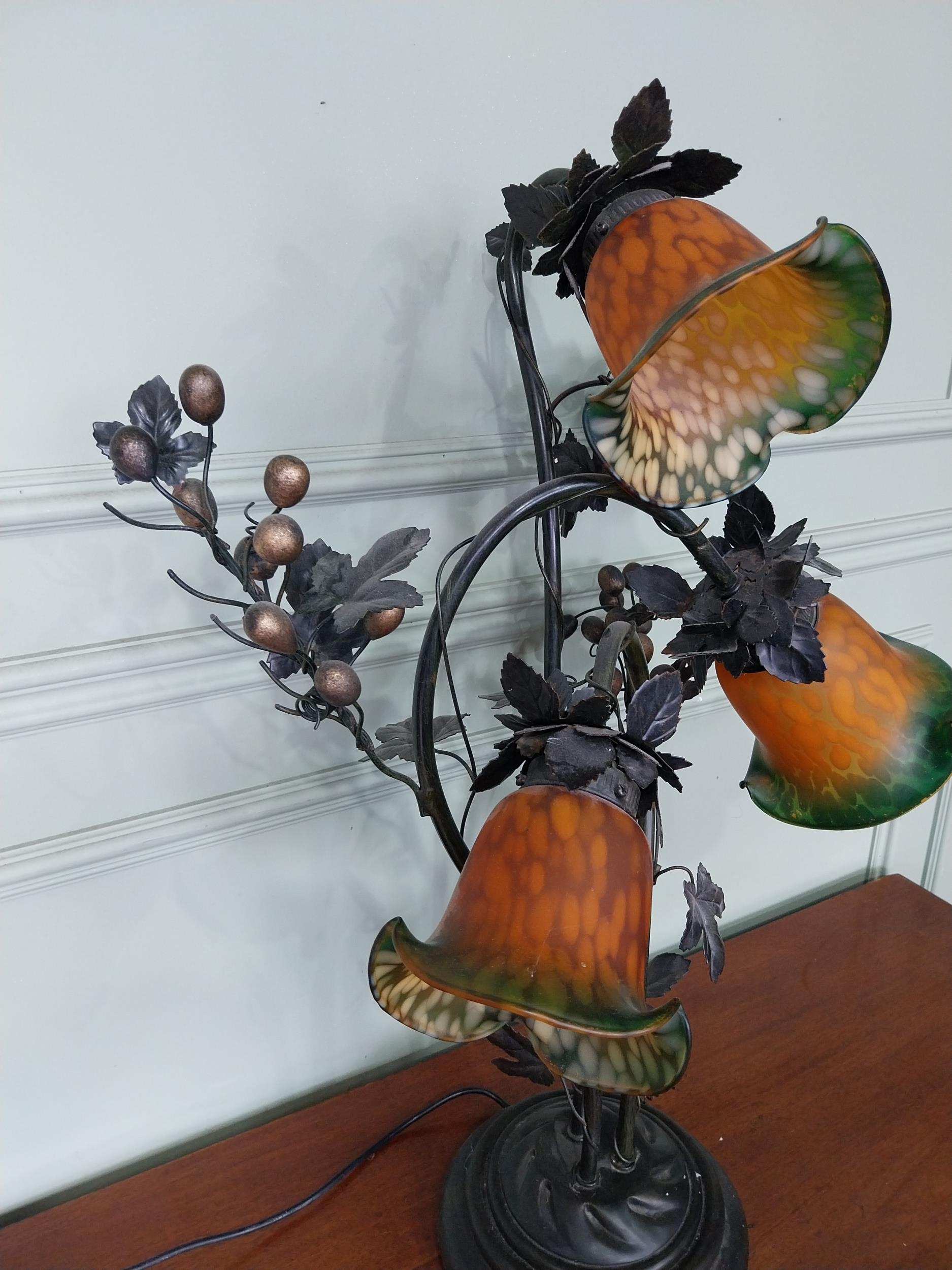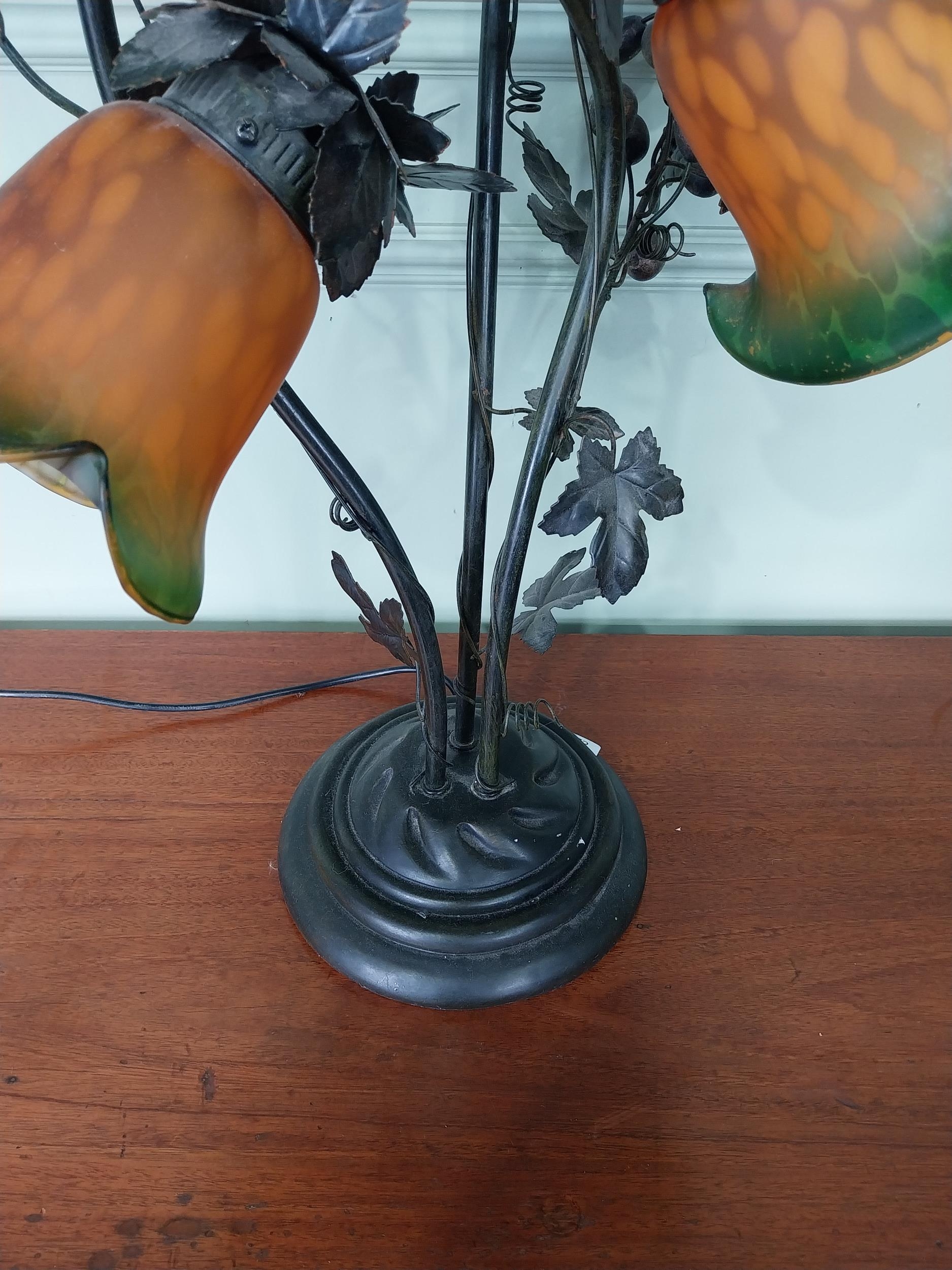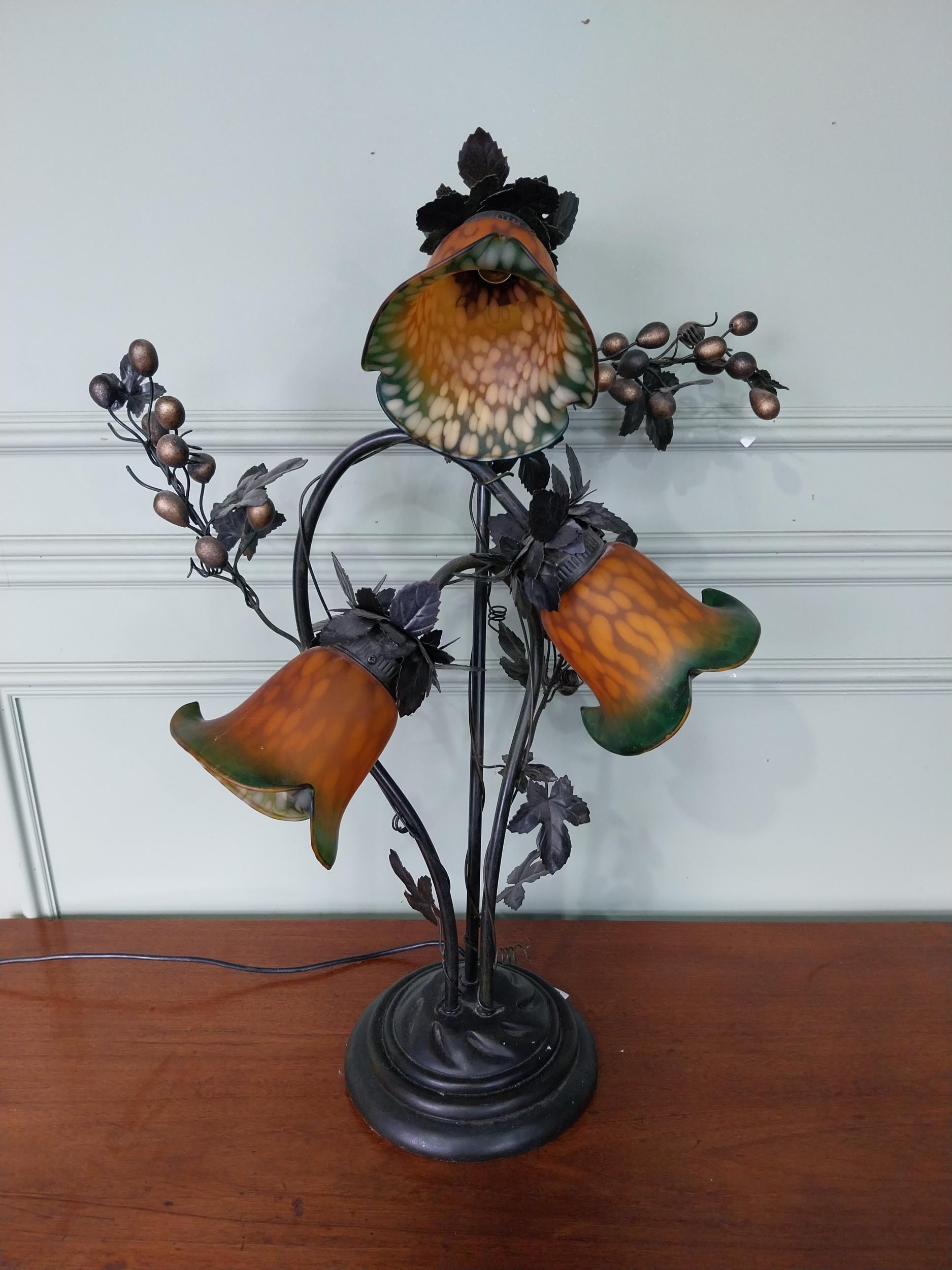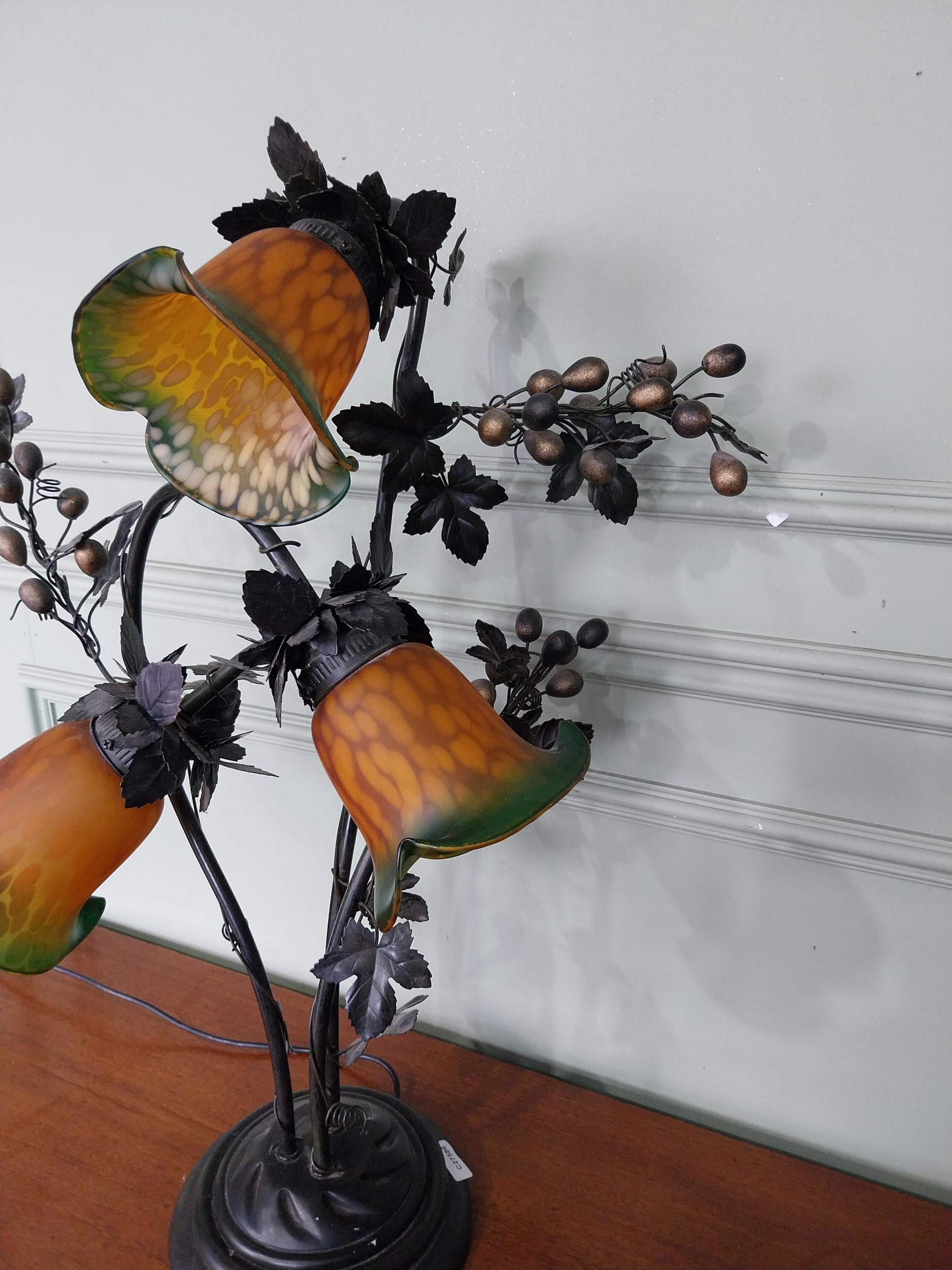 Decorative three branch table lamp. {76 cm H x 53 cm W x 40 cm D}.