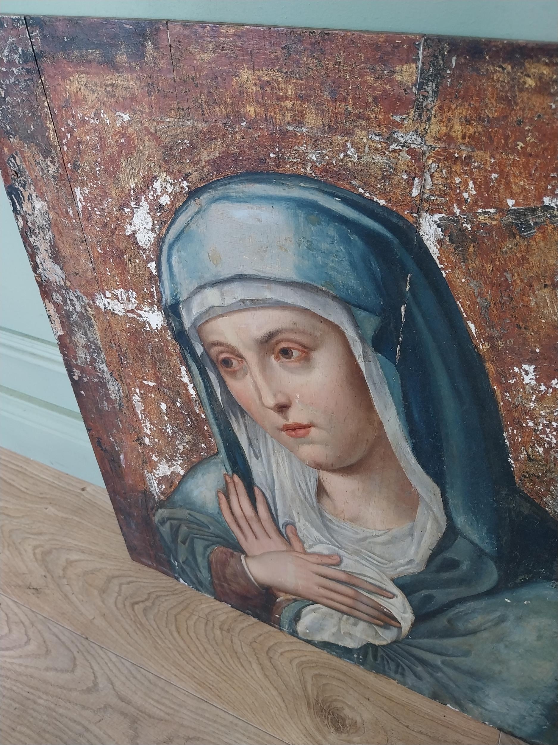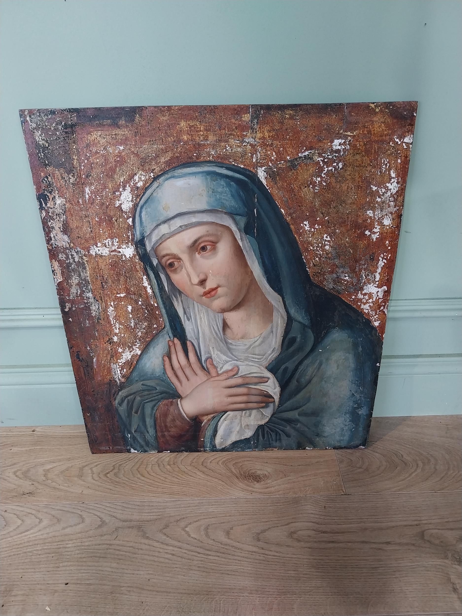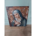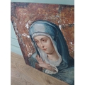 19th C. oil on board of The Virgin Mary in the Greek Orthodox style. {59 cm H x 52 cm W}.