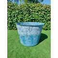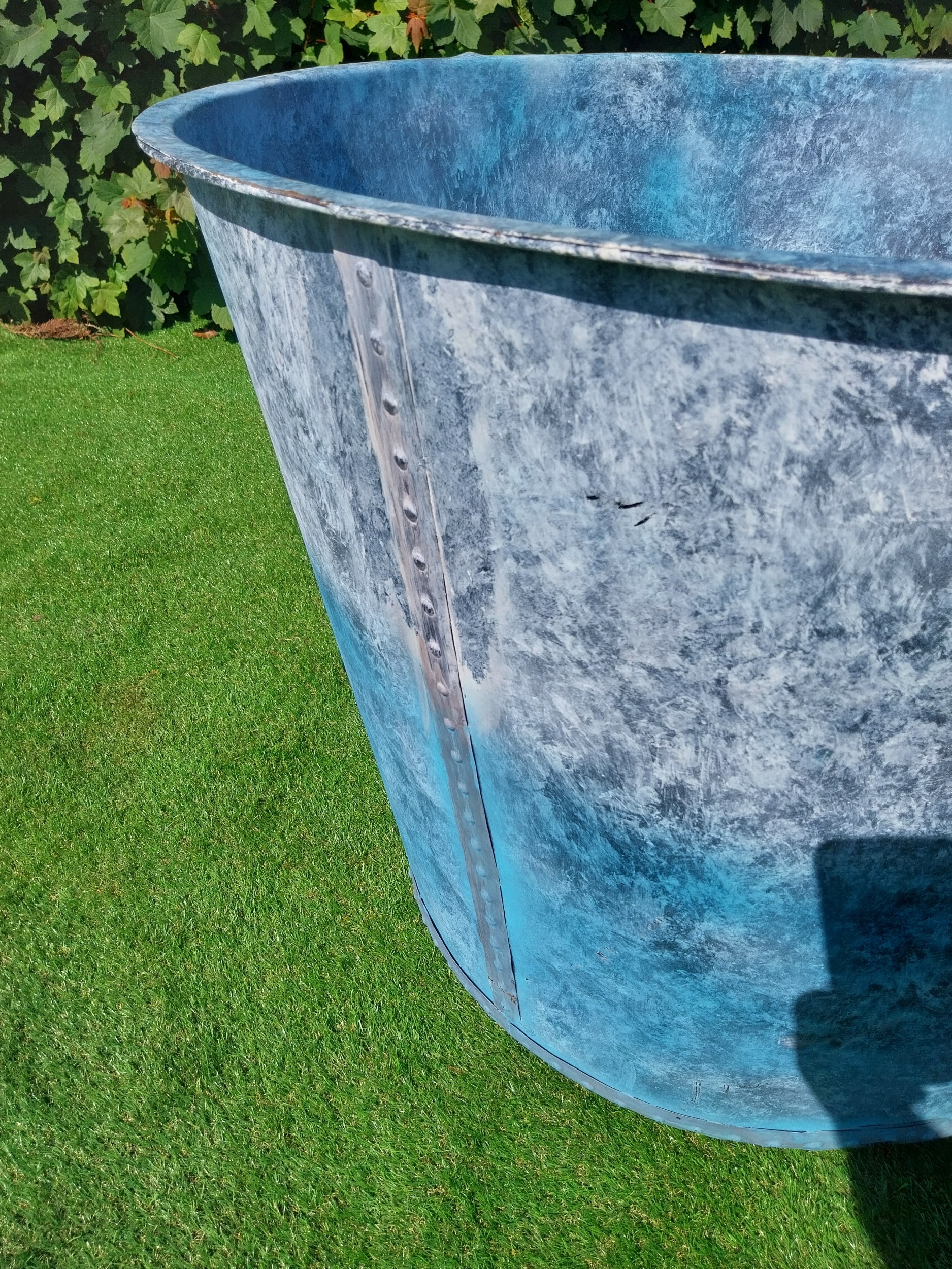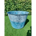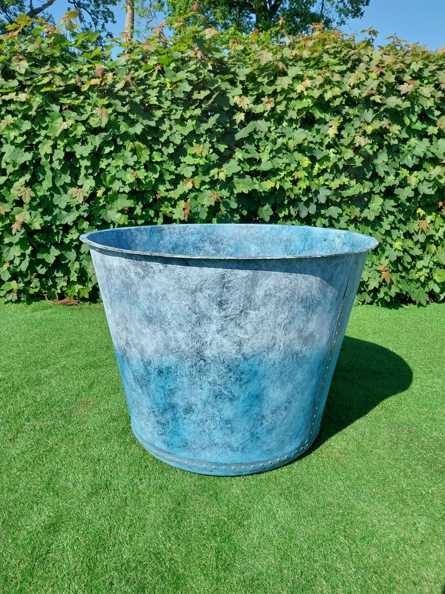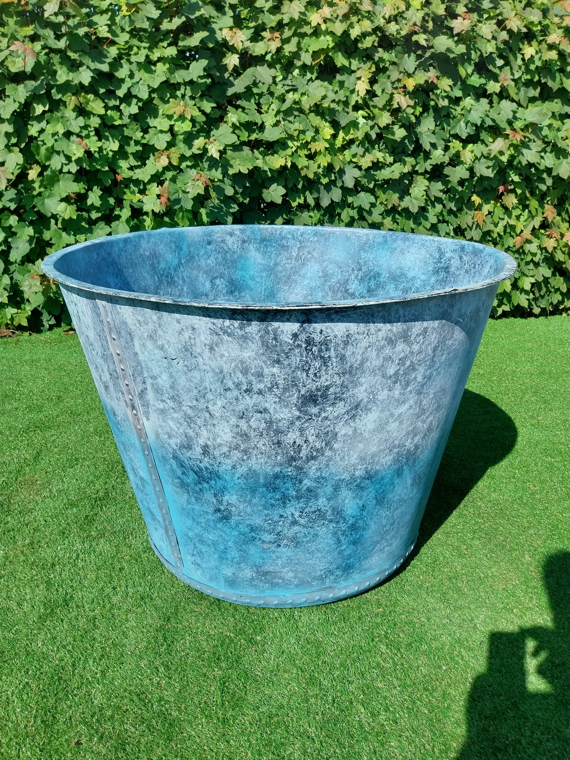 Large wrought iron planter with verdigris copper effect. {76 cm H x 100 cm Dia.}.