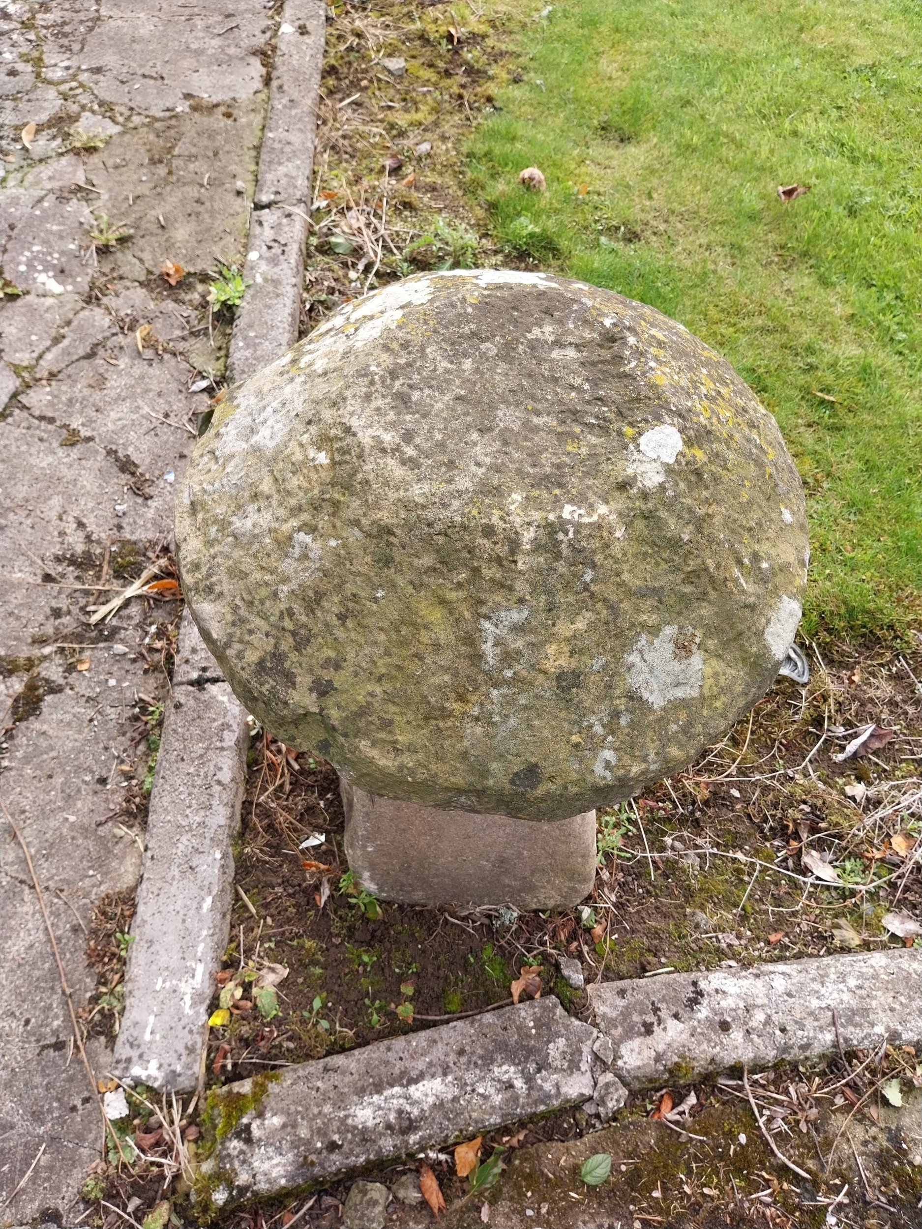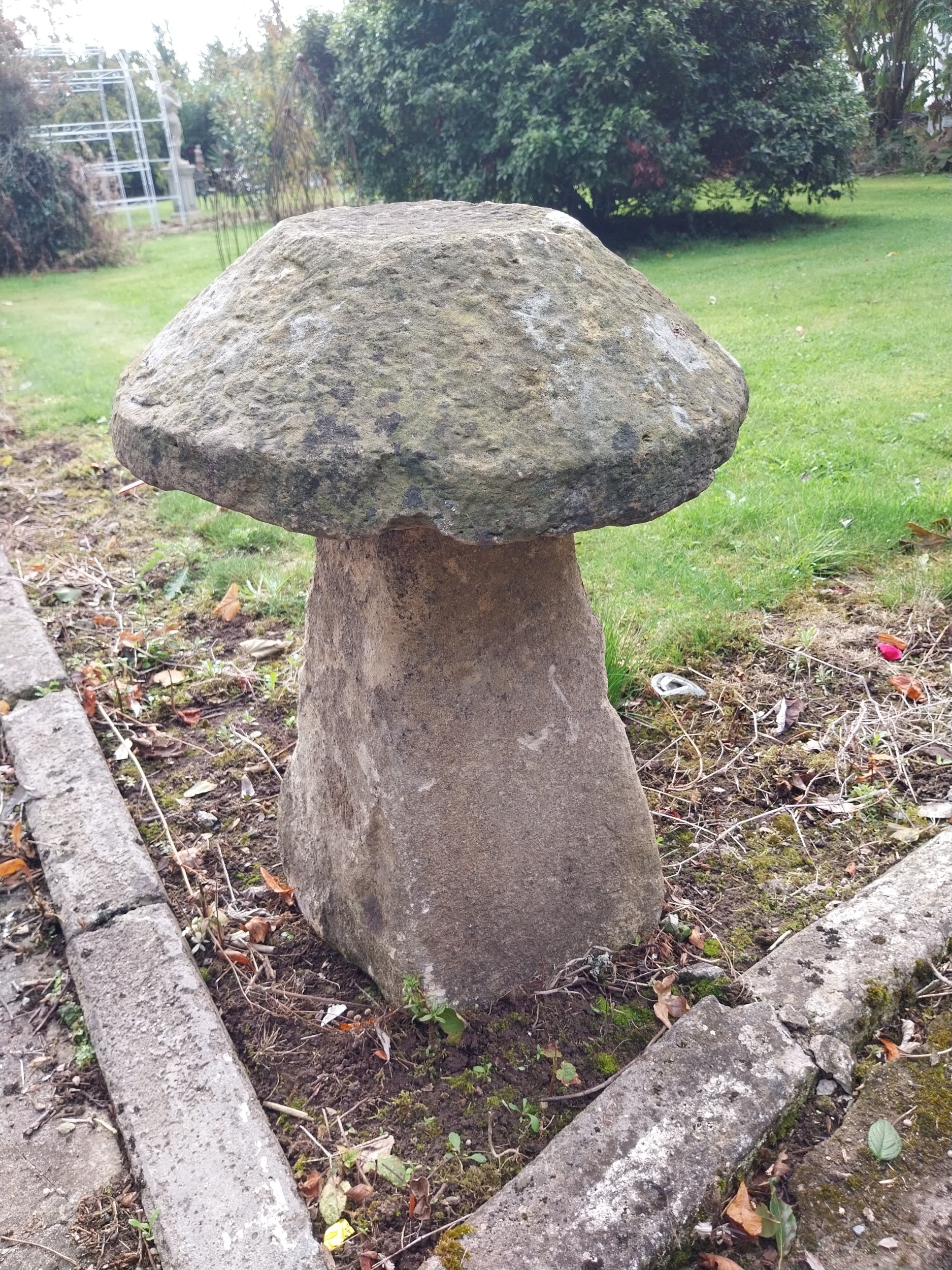 19th. C. sandstone staddle stone. { 63cm H X 40cm Dia. }.