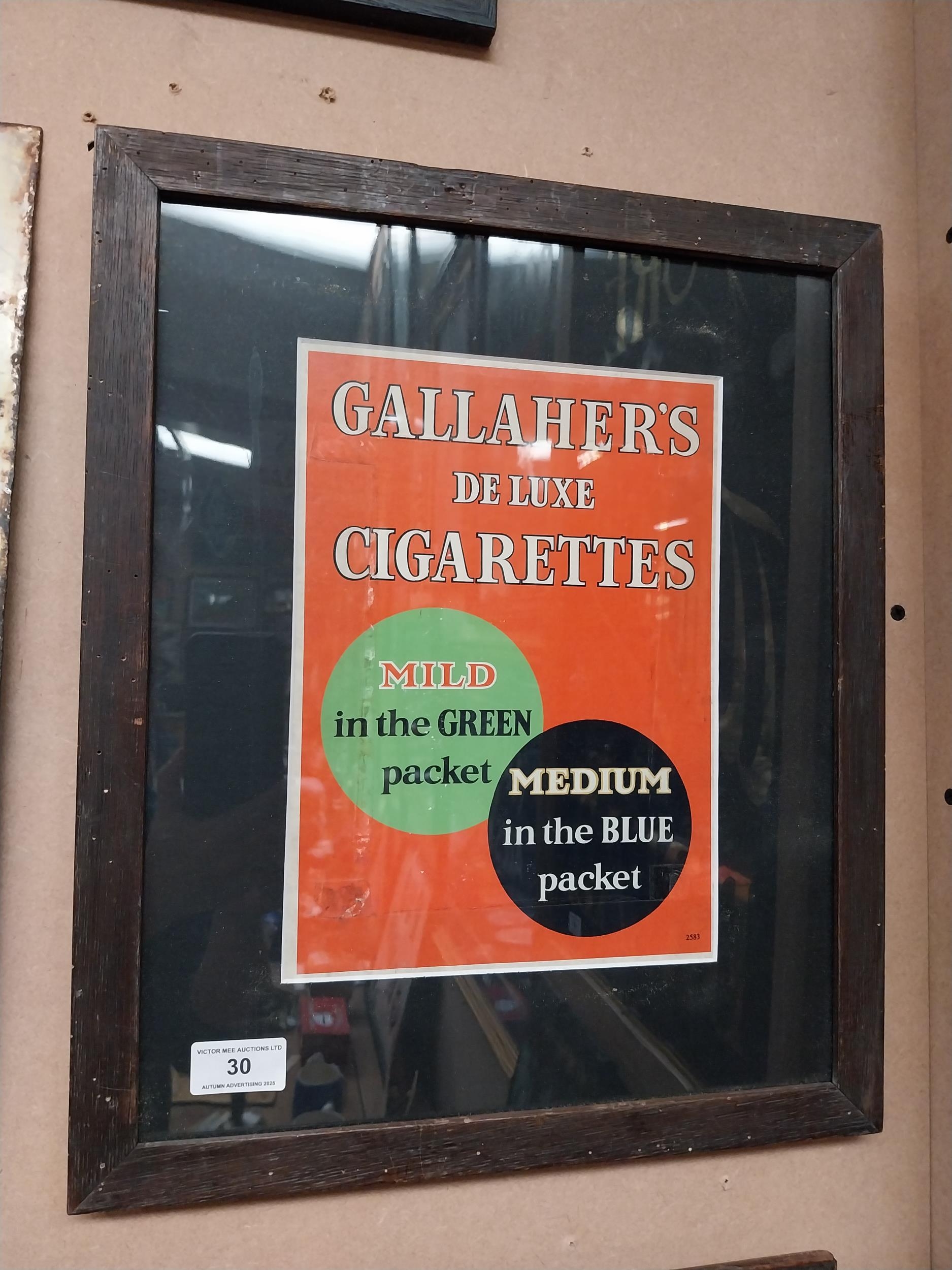Gallaher's Delux Cigarette's framed showcard . {43 cm H x 36 cm W}.