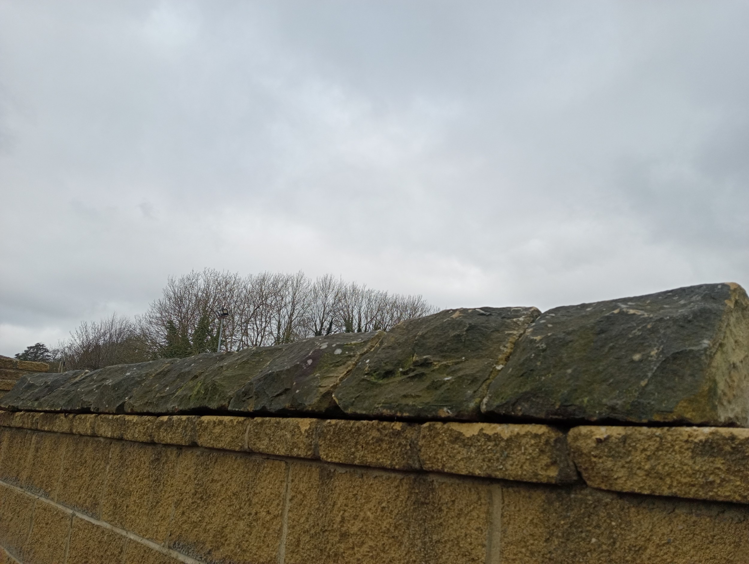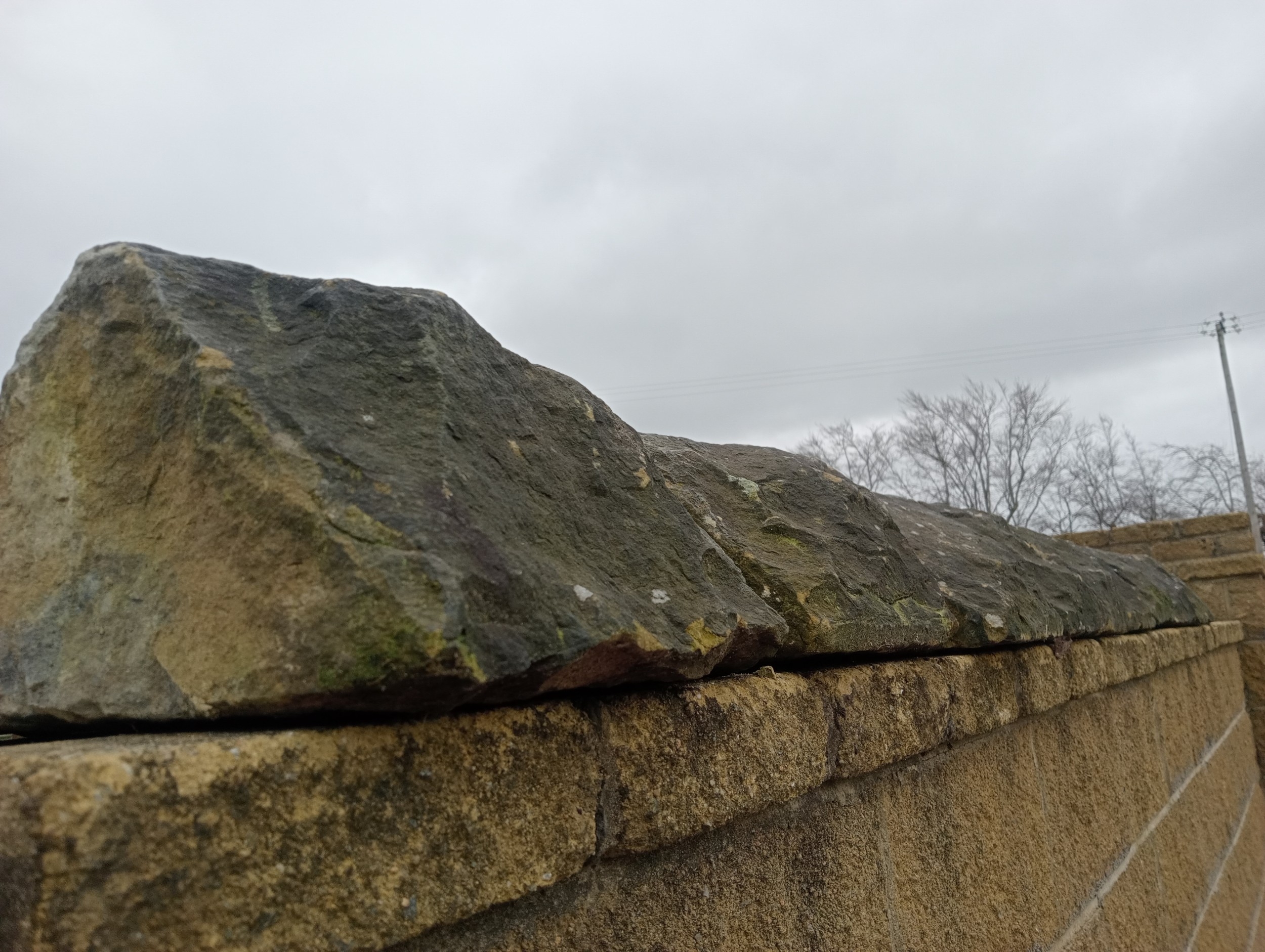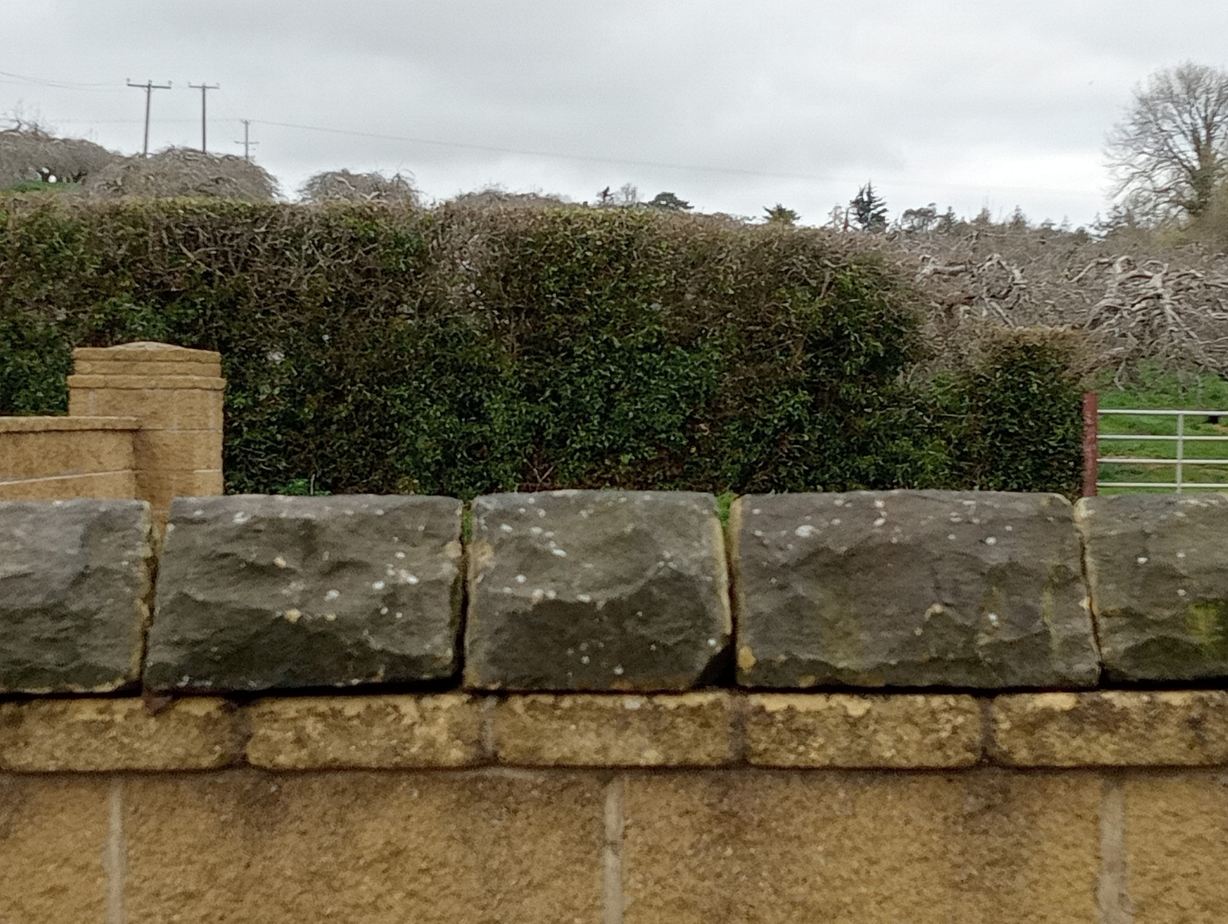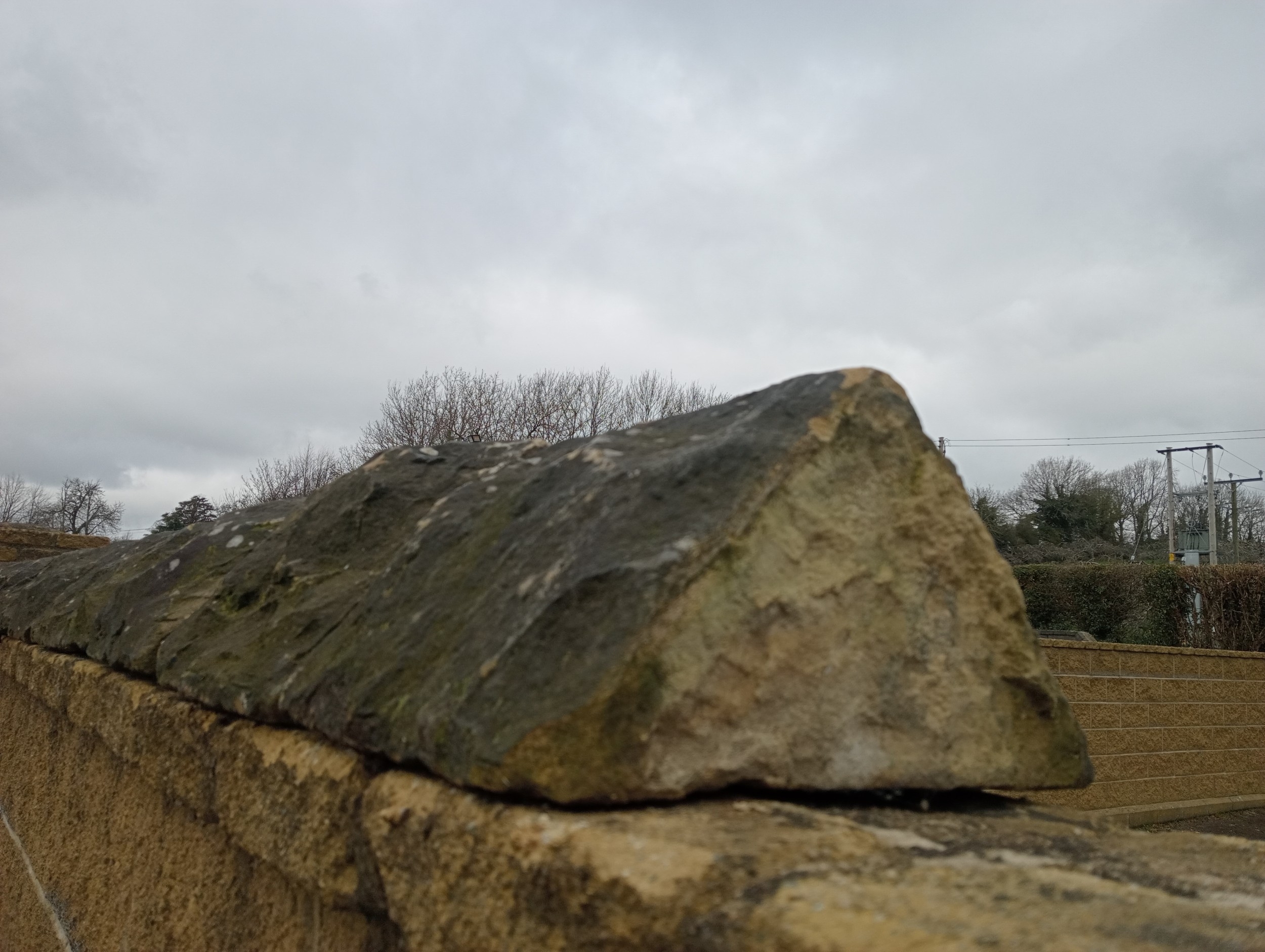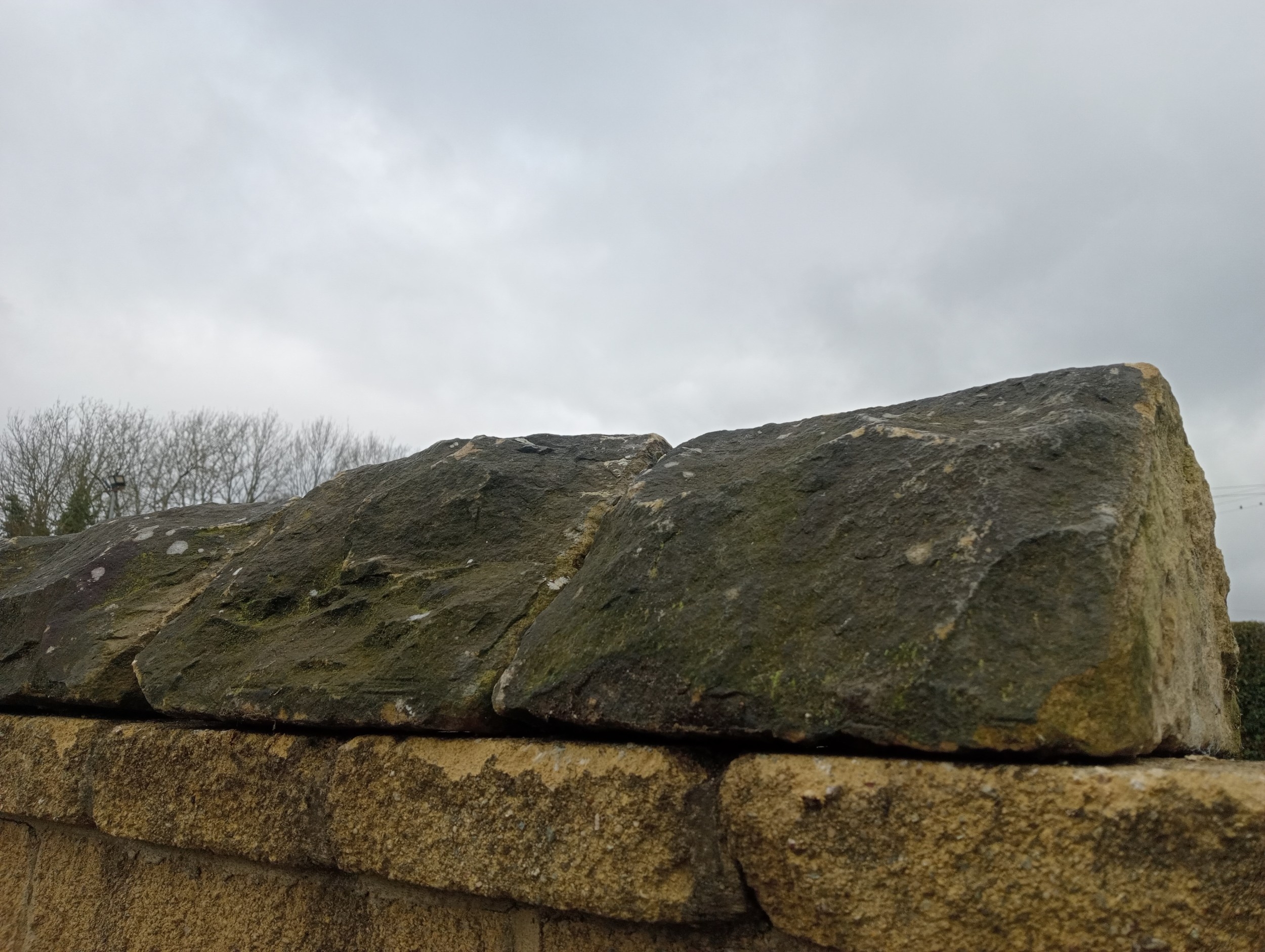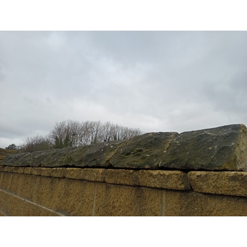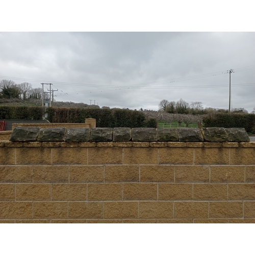 Collection of ten Yorkshire stone wall copings (H 18cm x W 300cm x D 30cm )