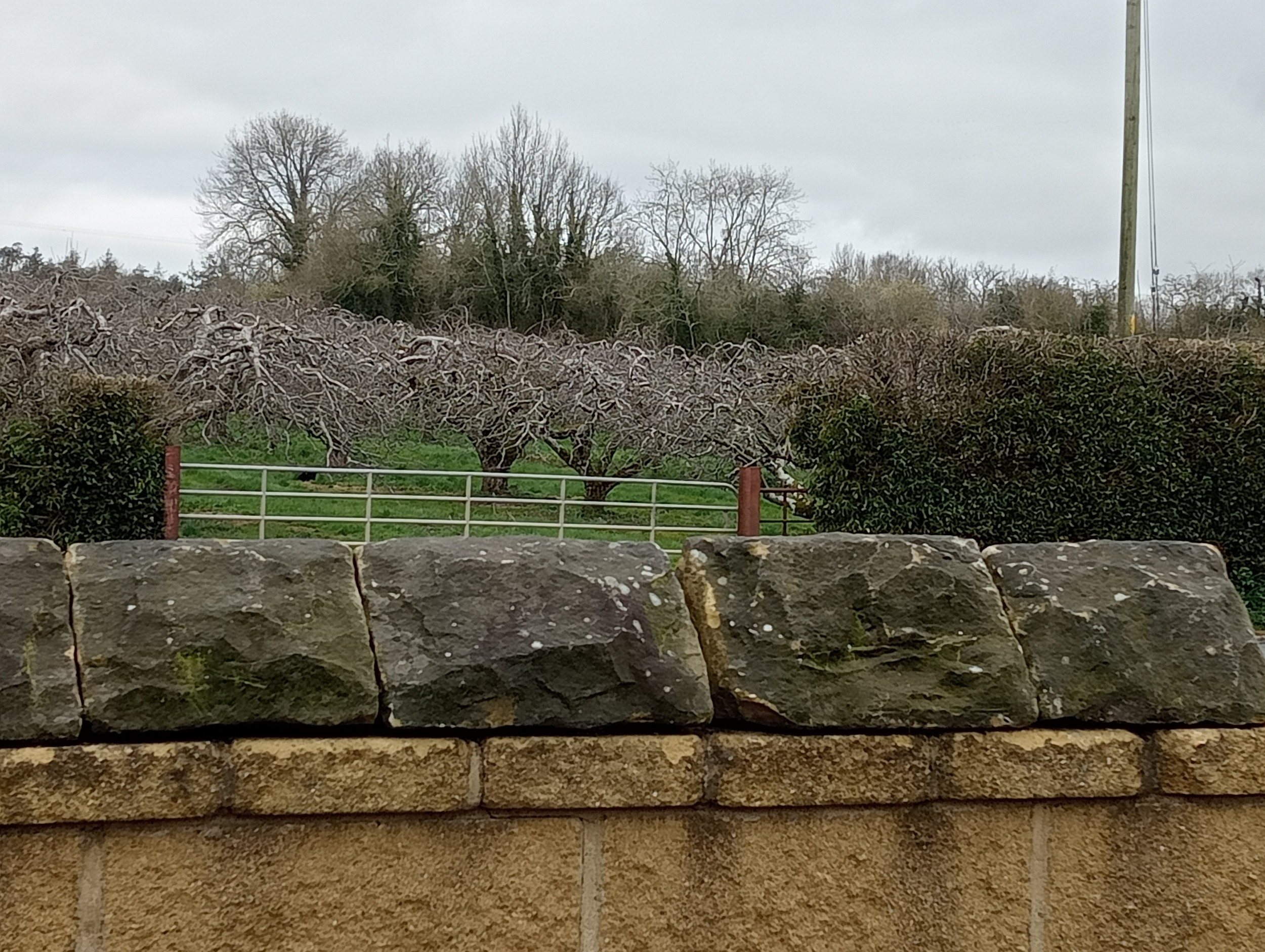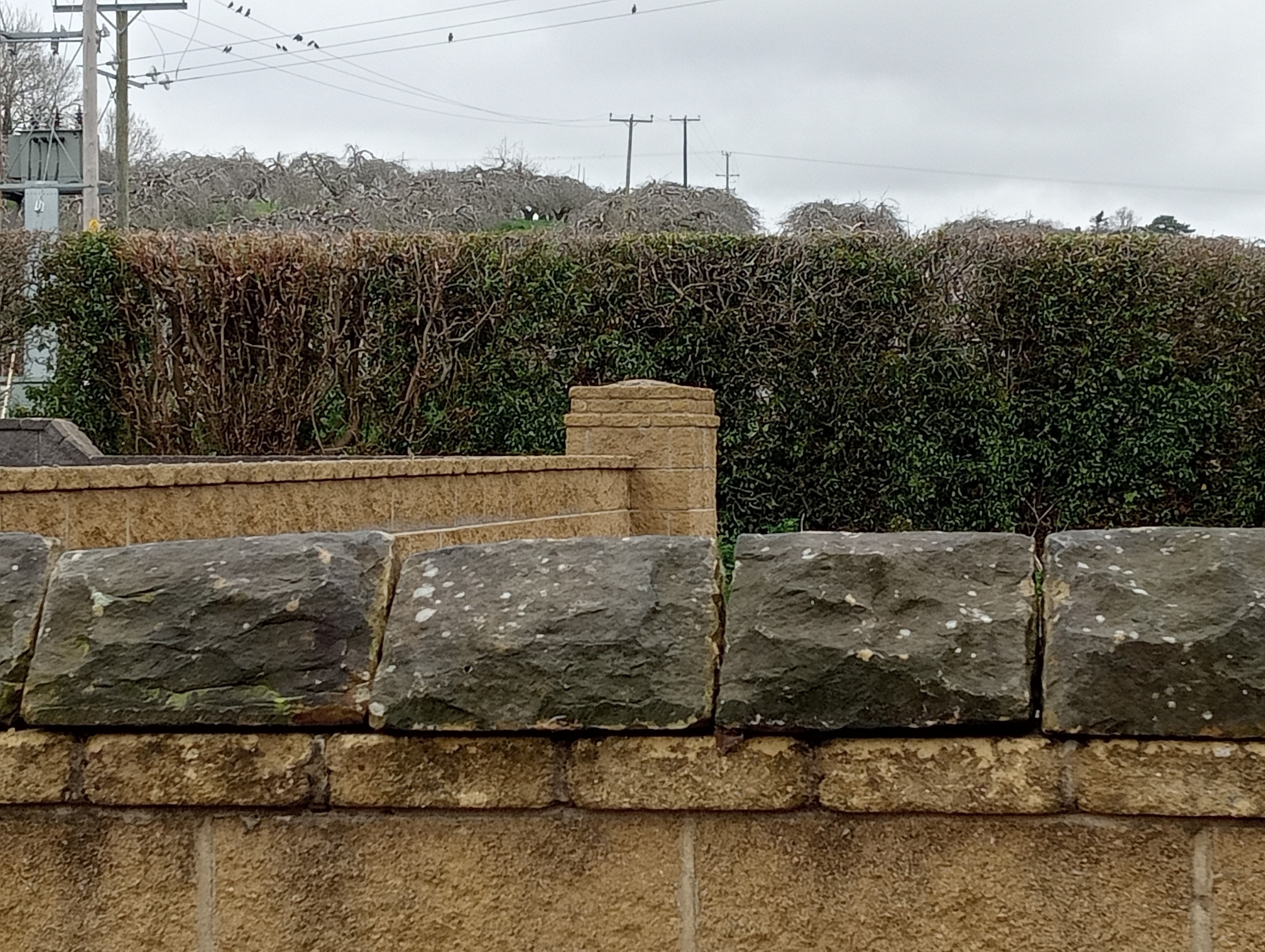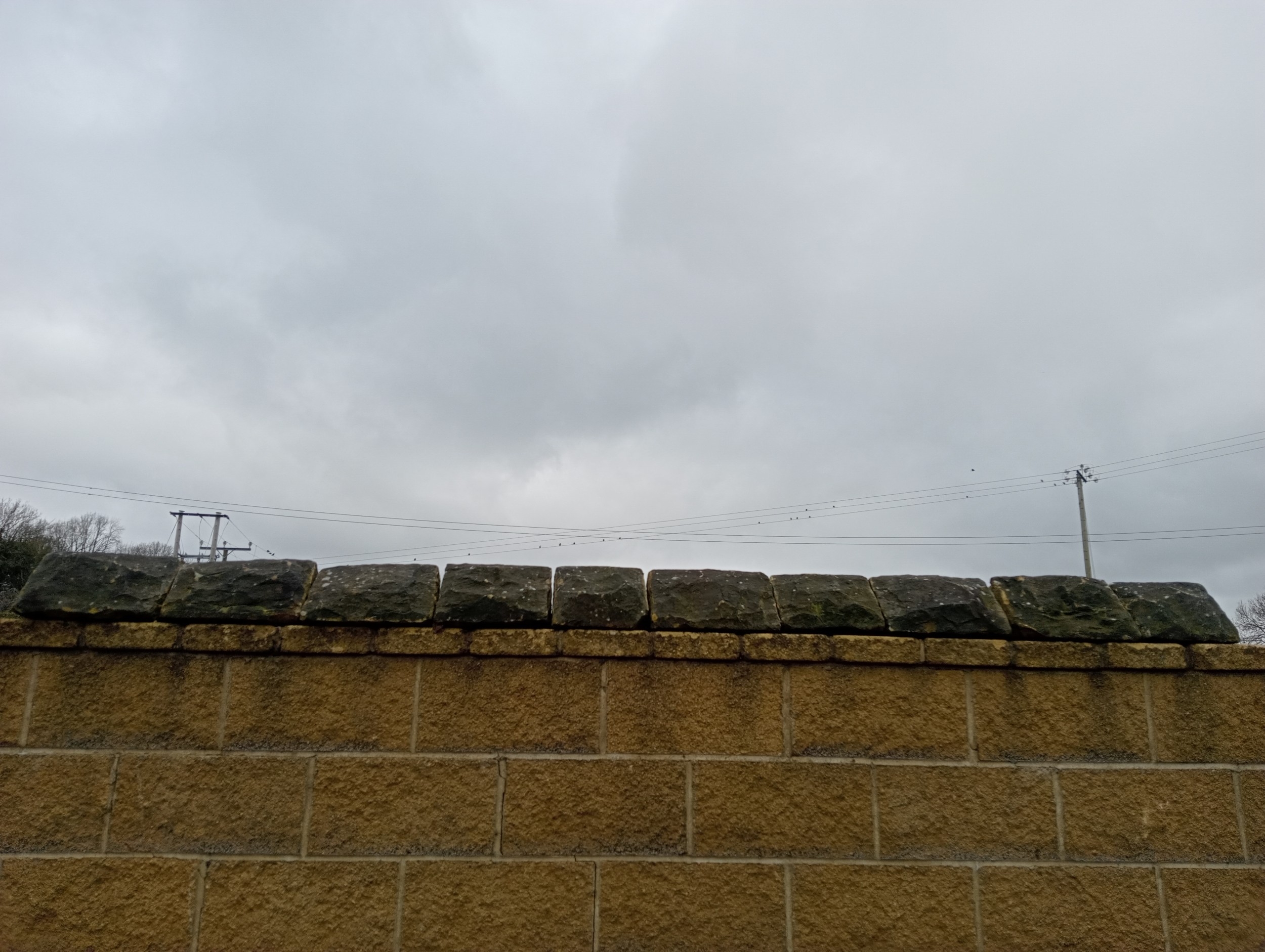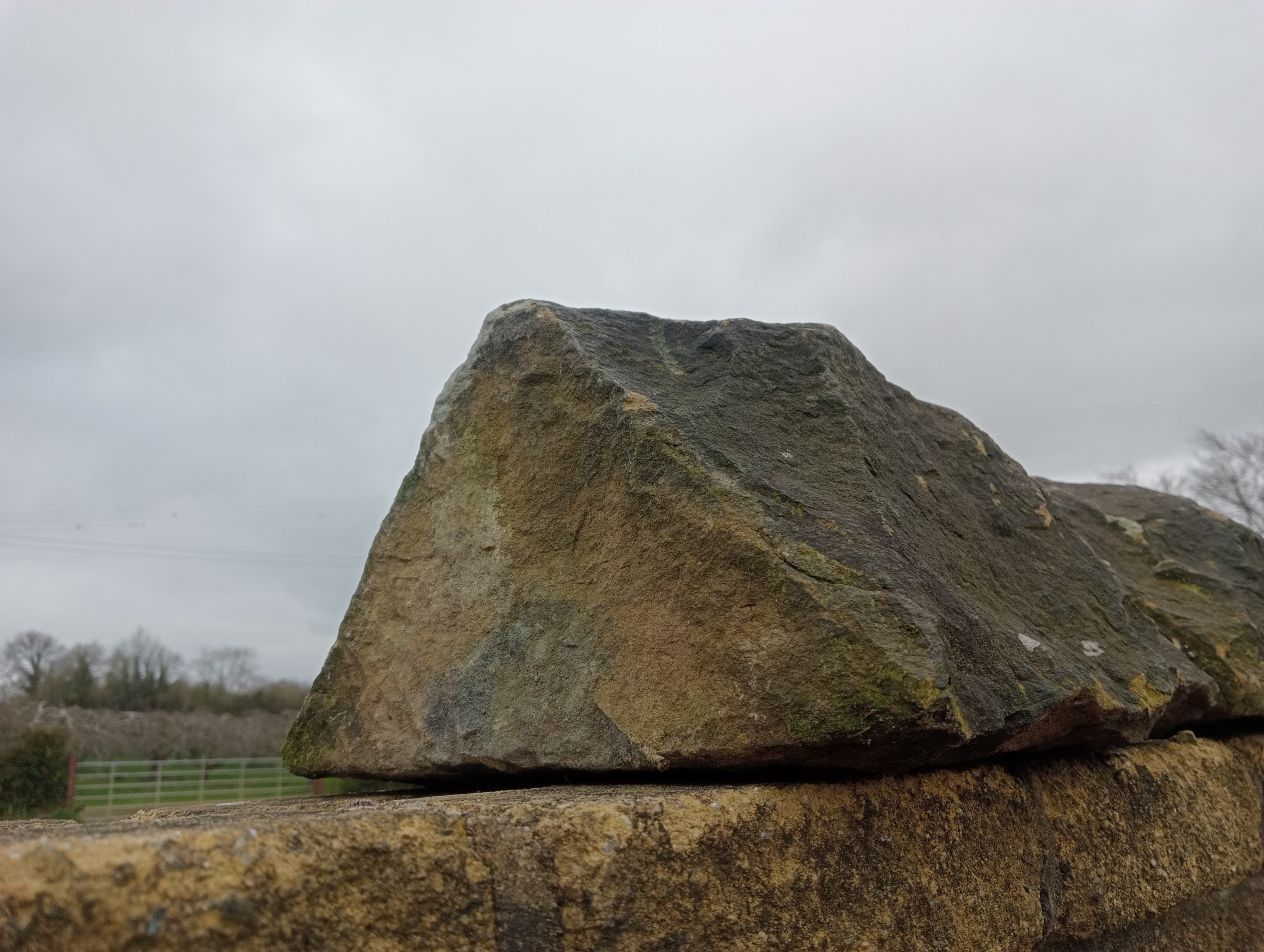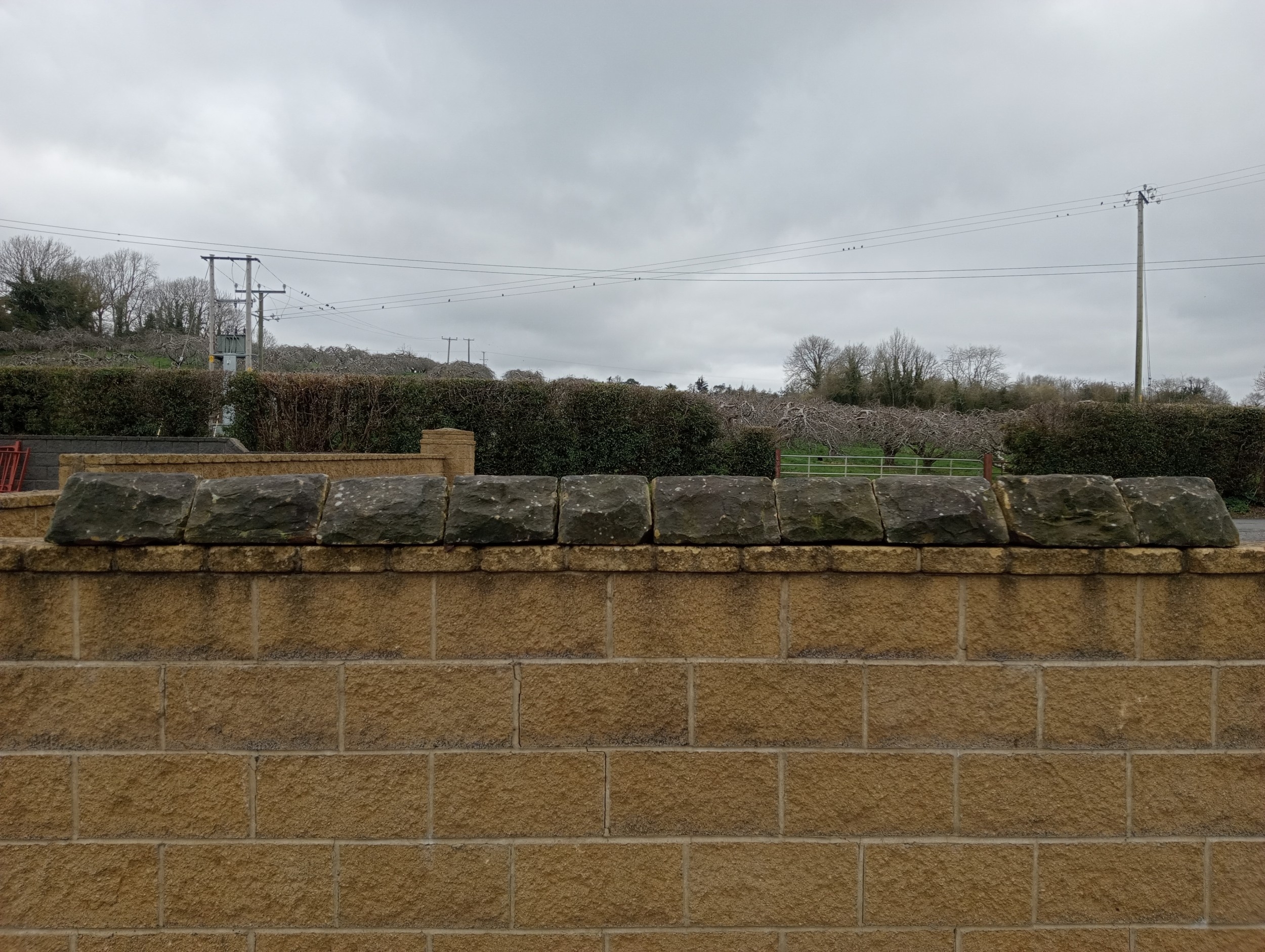 Collection of ten Yorkshire stone wall copings (H 18cm x W 300cm x D 30cm )