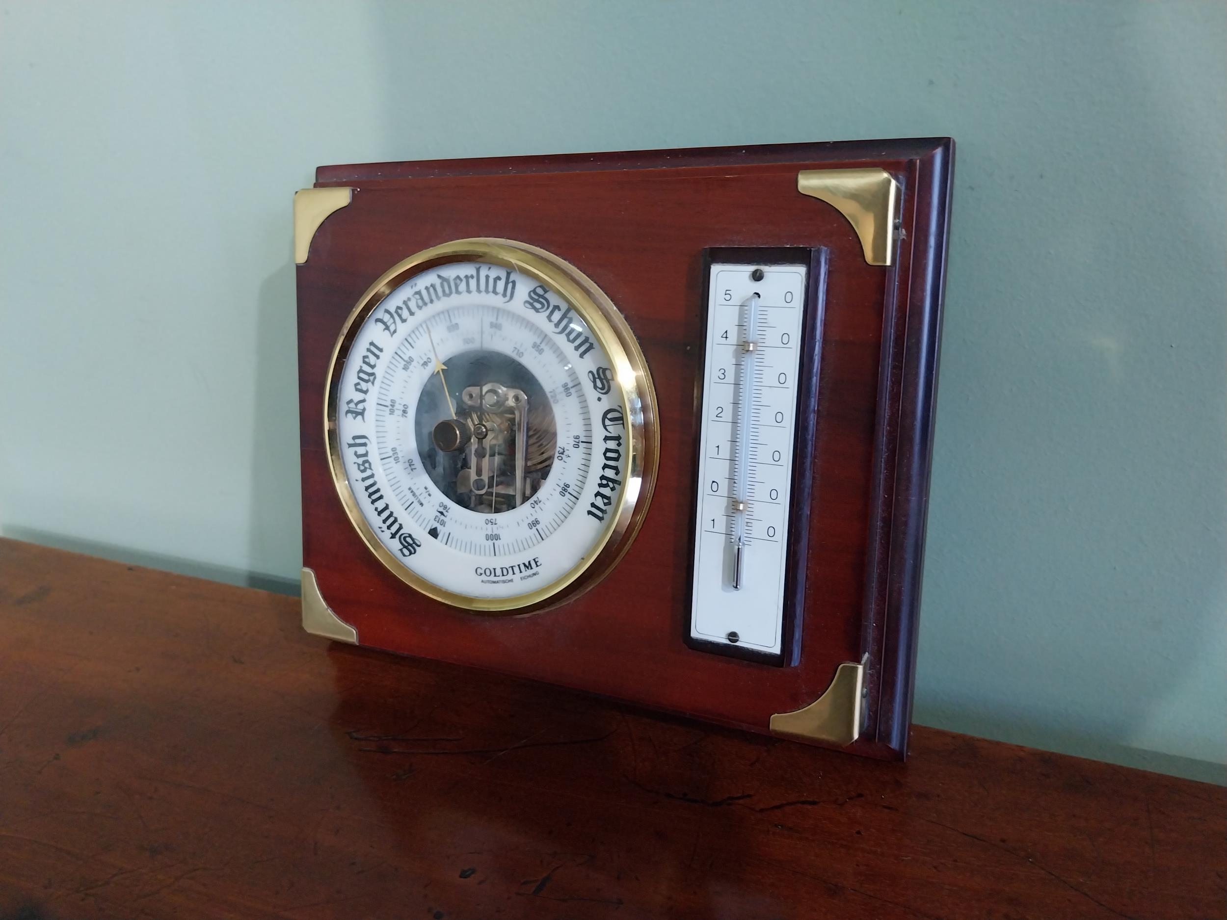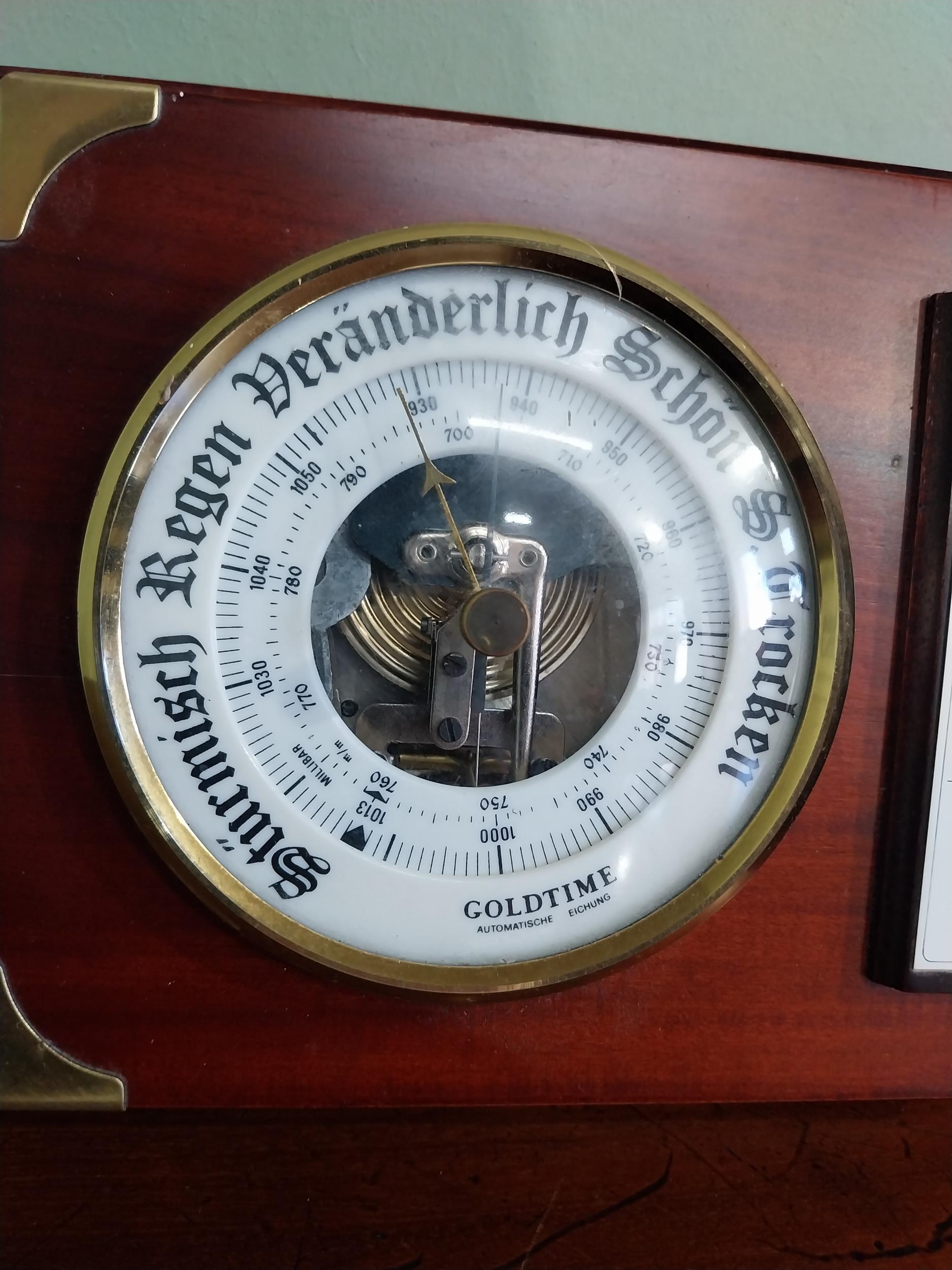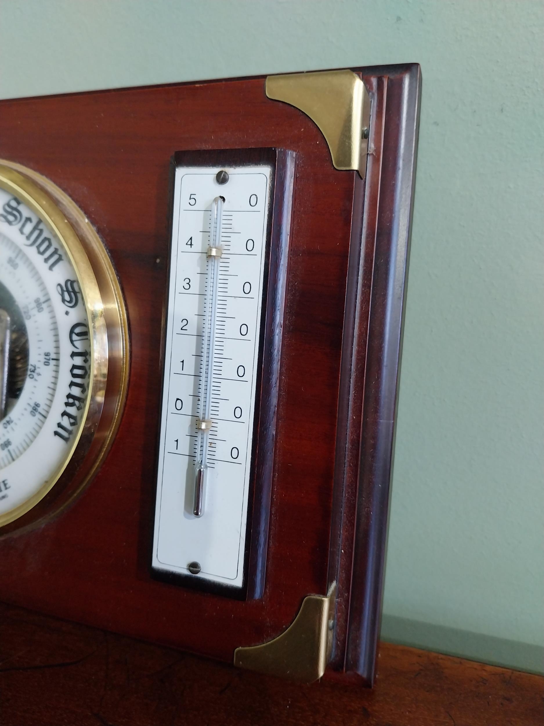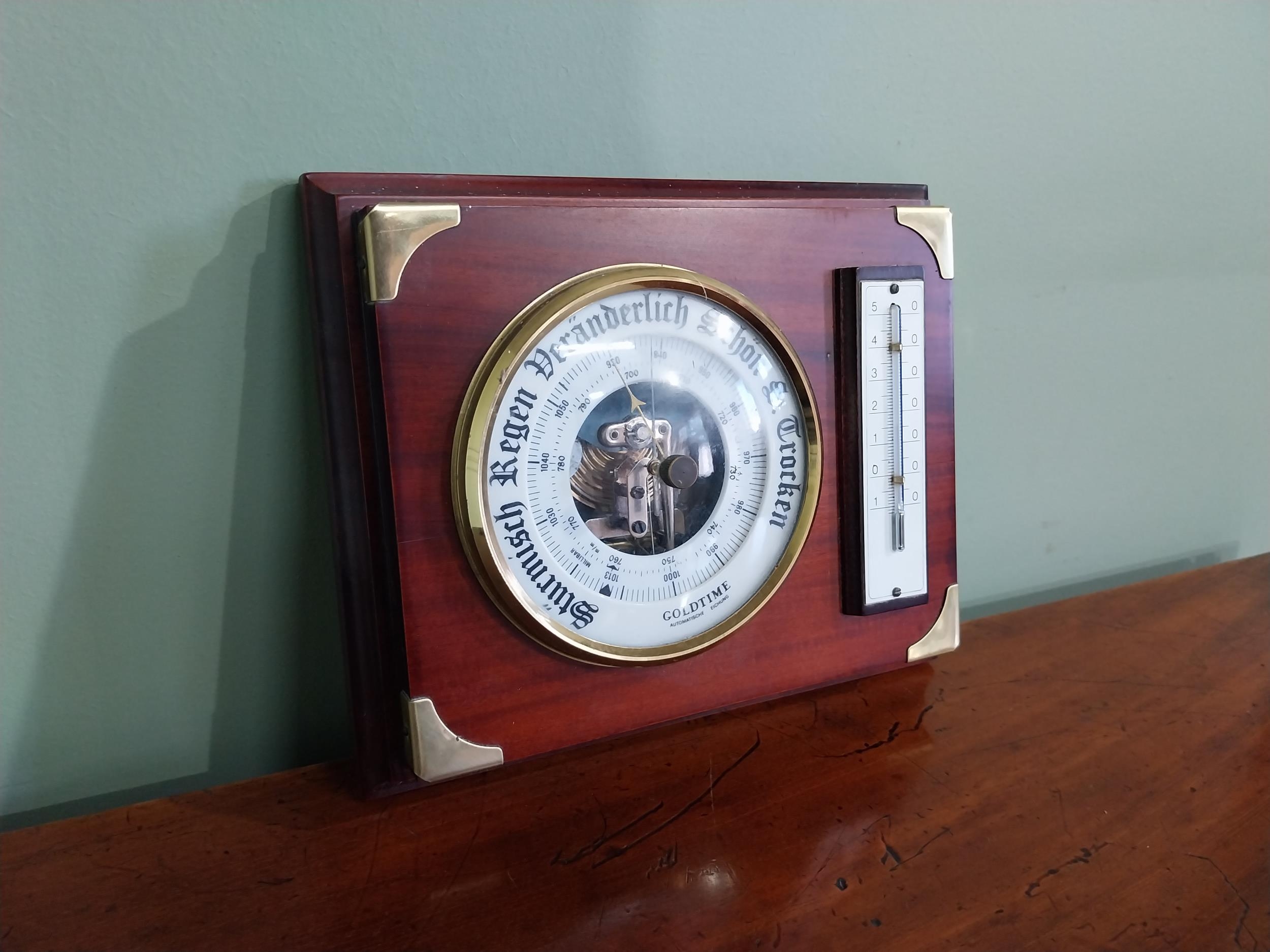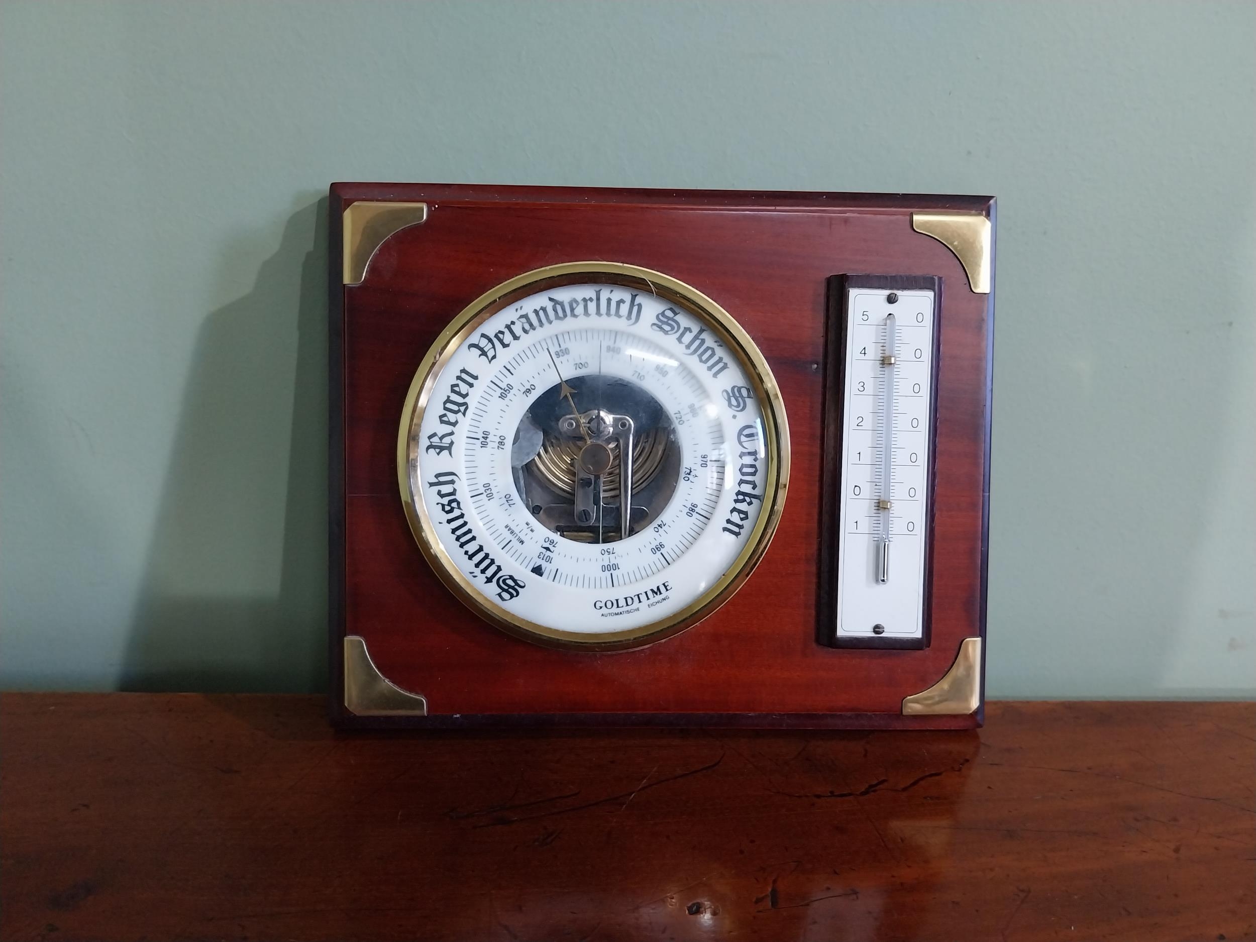 German mahogany and brass barometer {17 cm H x 21 cm W}.