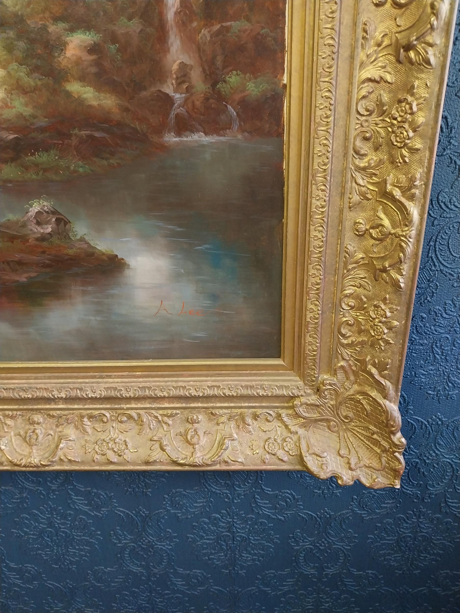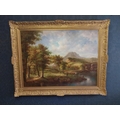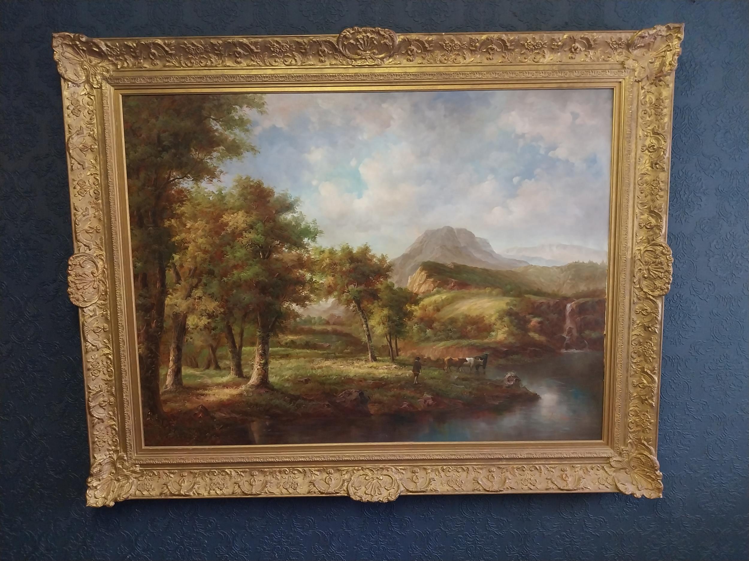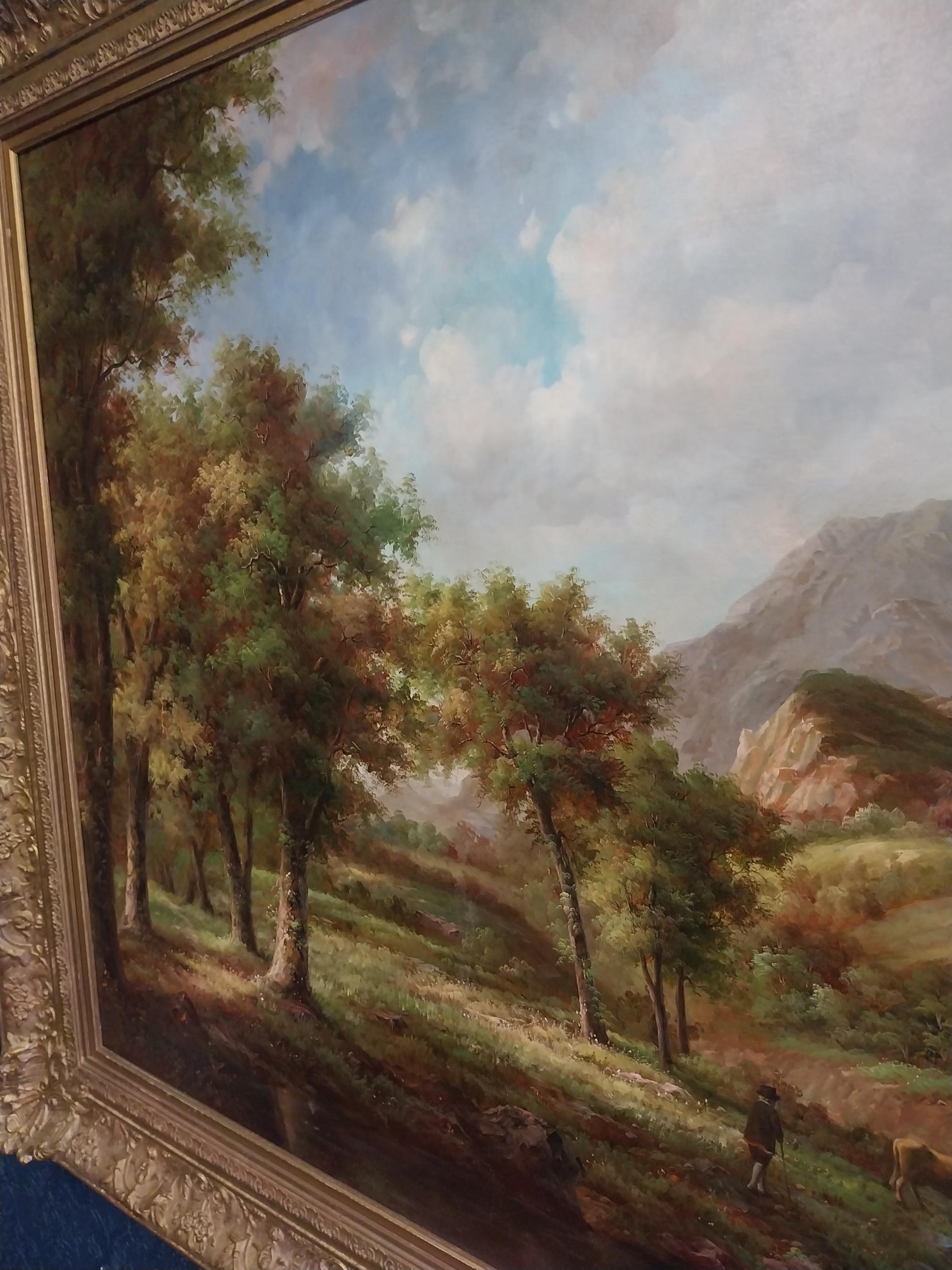 Large oleograph Countryside Scene mounted in gilt frame. {147 cm H x 118 cm W}. NOT AVAILABLE TO VIEW IN PERSON