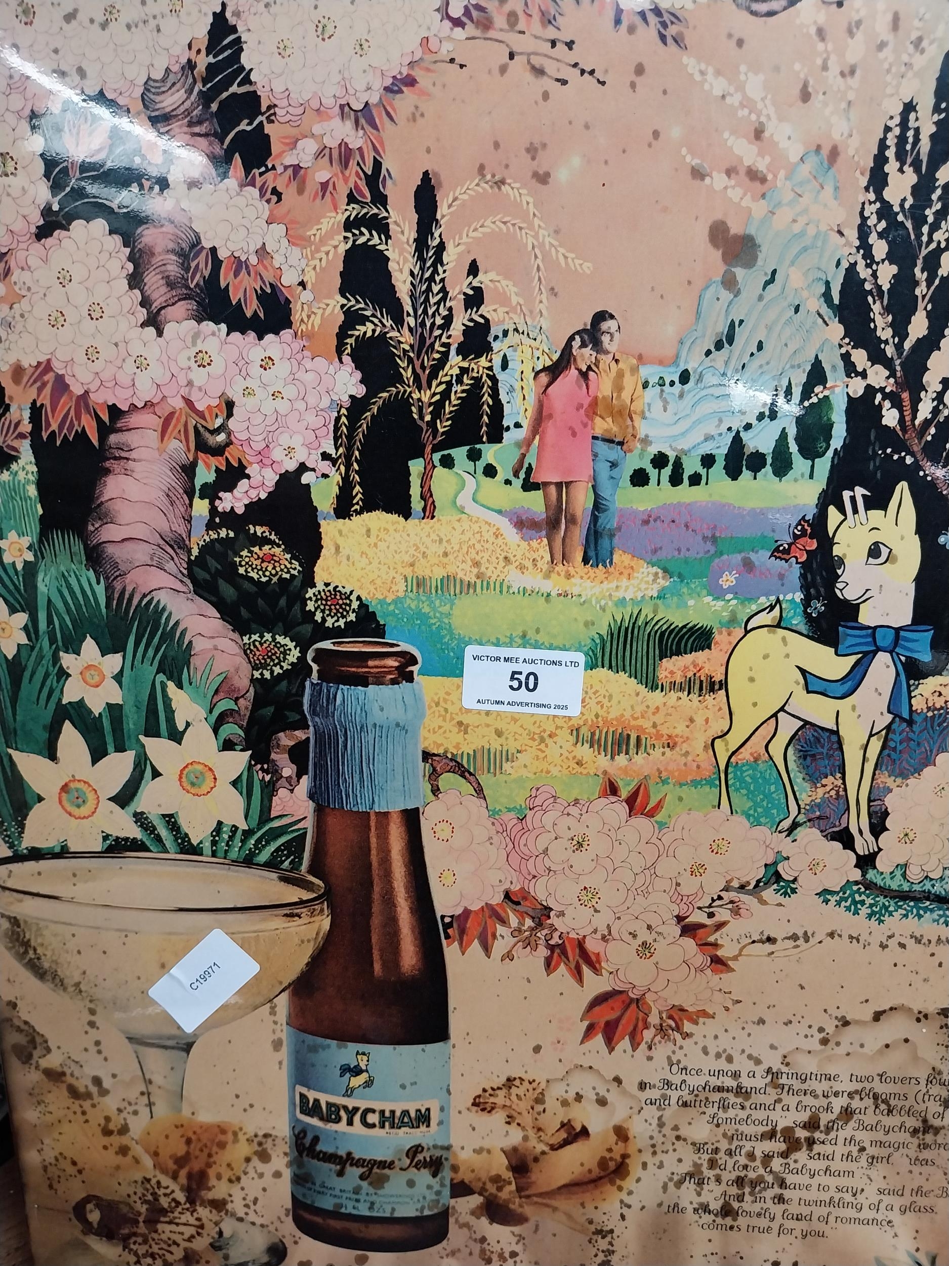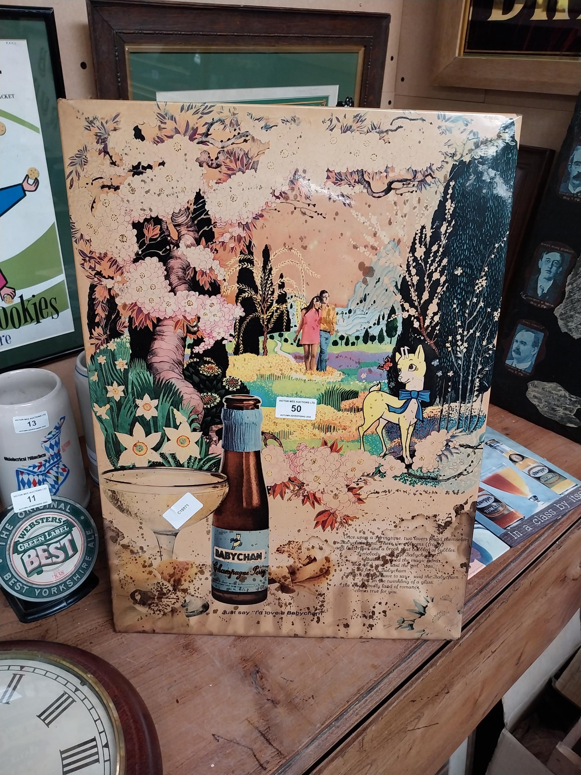 1950's Babycham celluloid advertising showcard. {52 cm H x 37 cm W}.