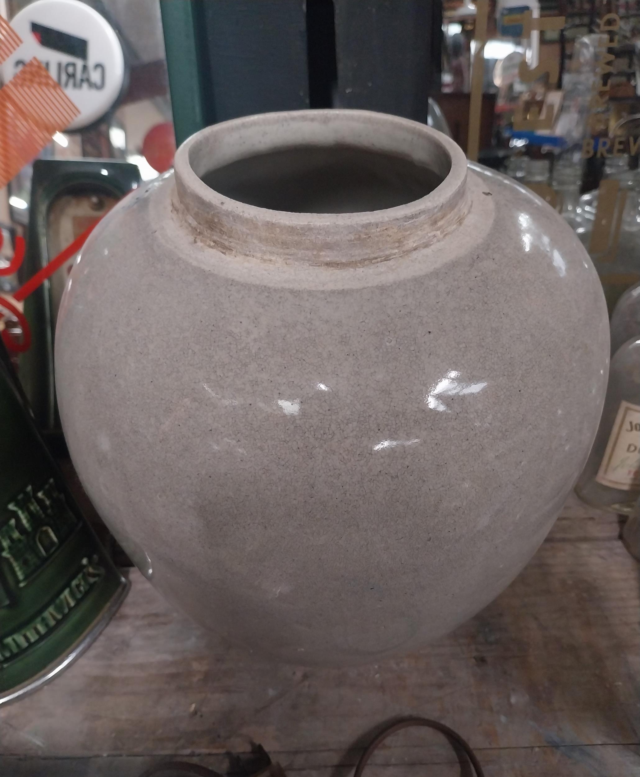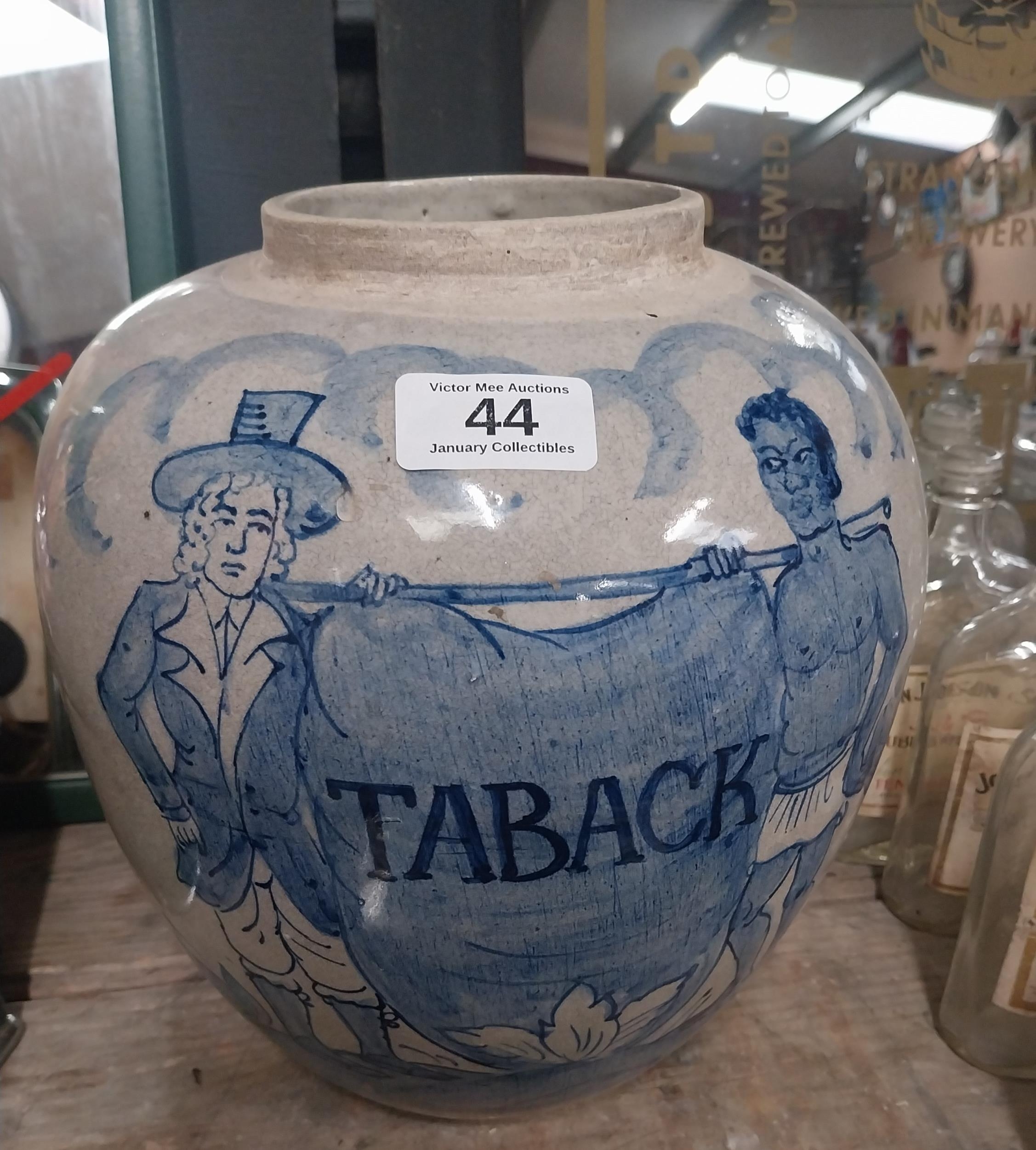 19th C. Blue and White ceramic Taback jar. {27 cm H x 23 cm Diam.}.