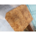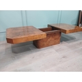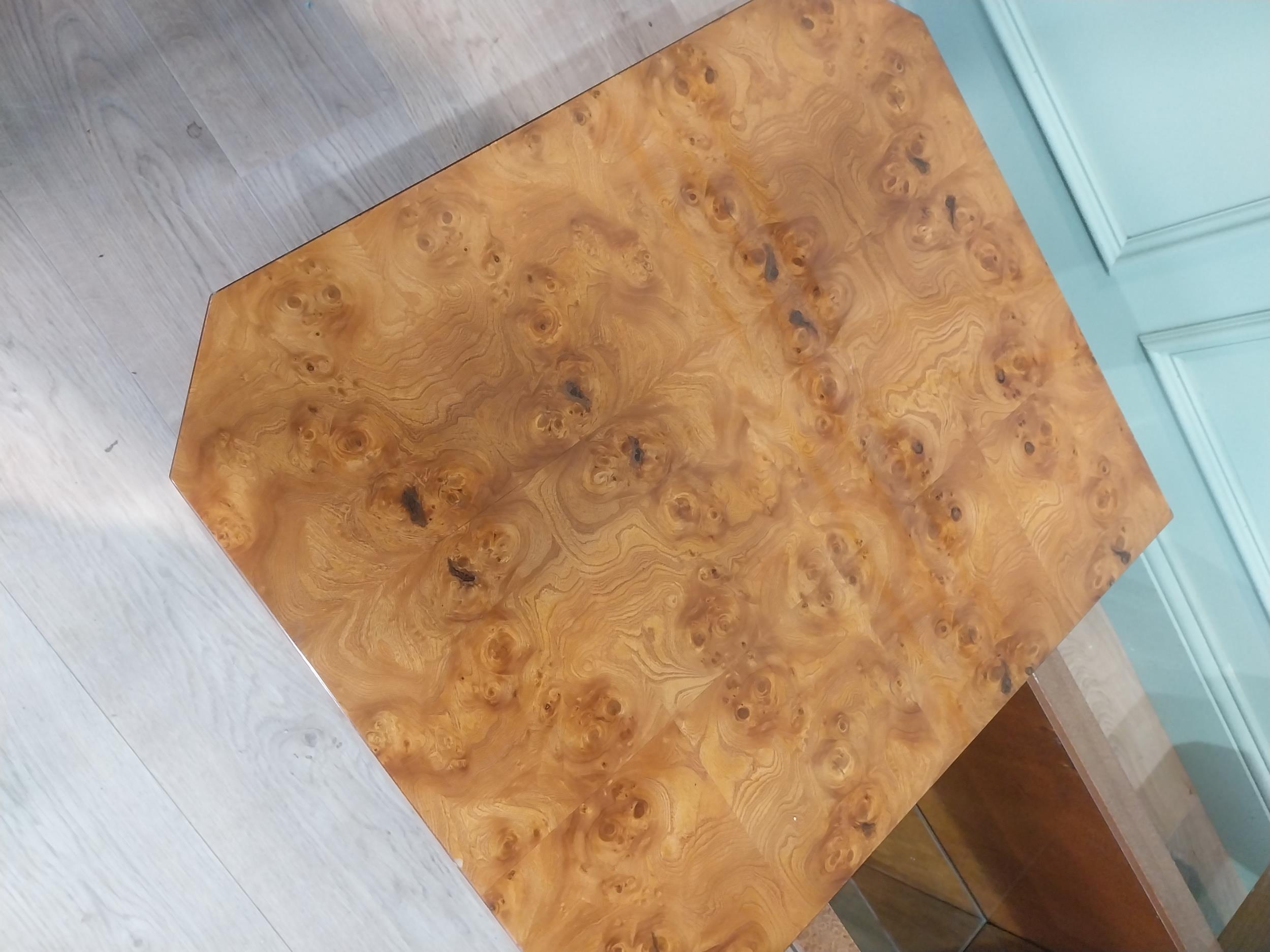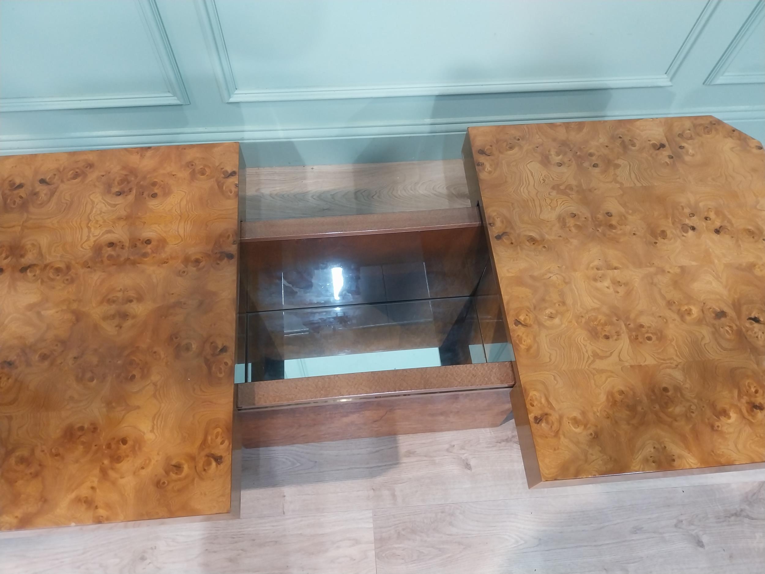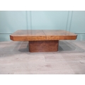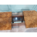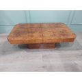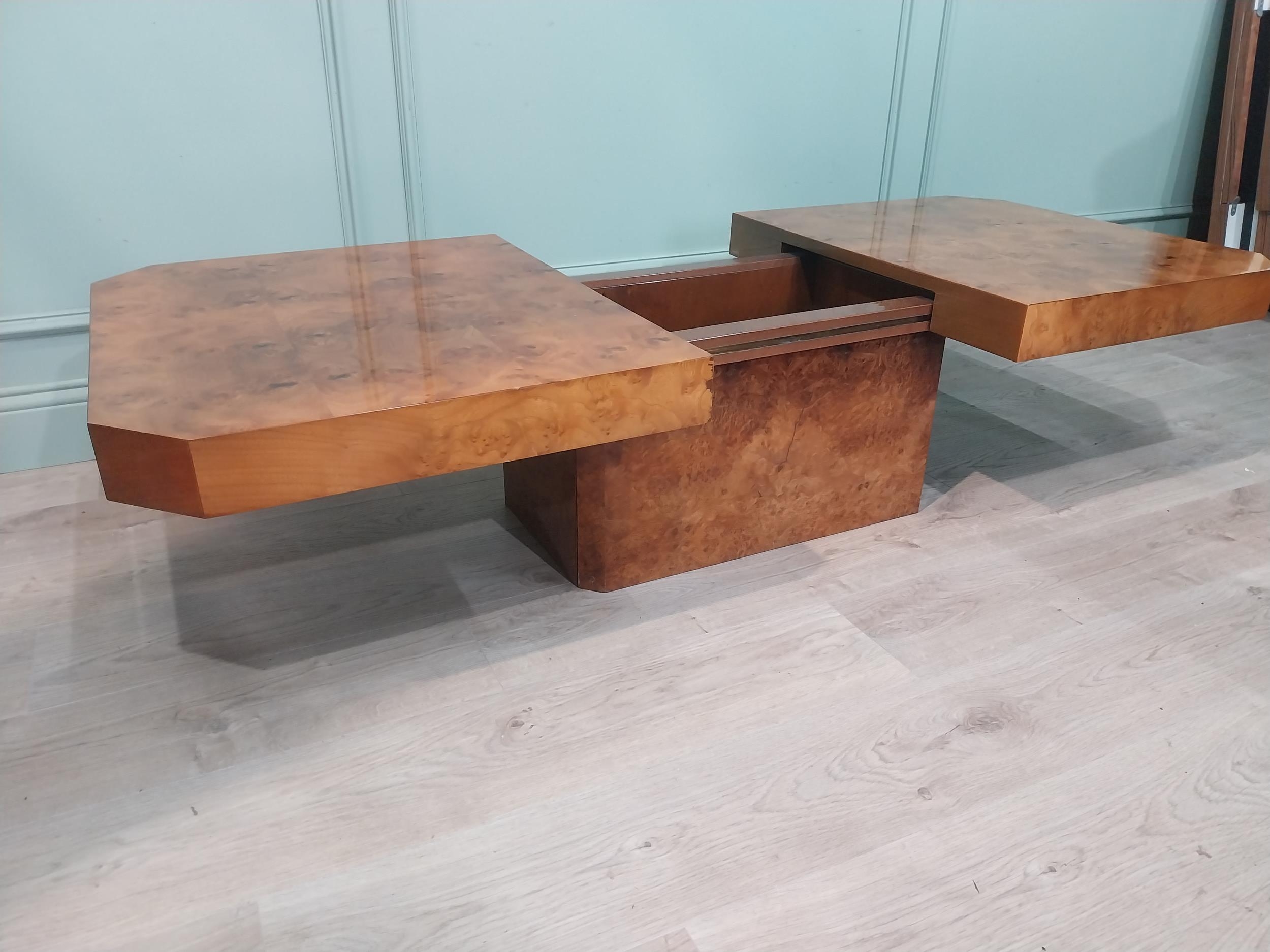 1970's burr walnut Hollywood Regency coffee table with hidden bar. {39 cm H x 120 cm W x 70 cm D}.