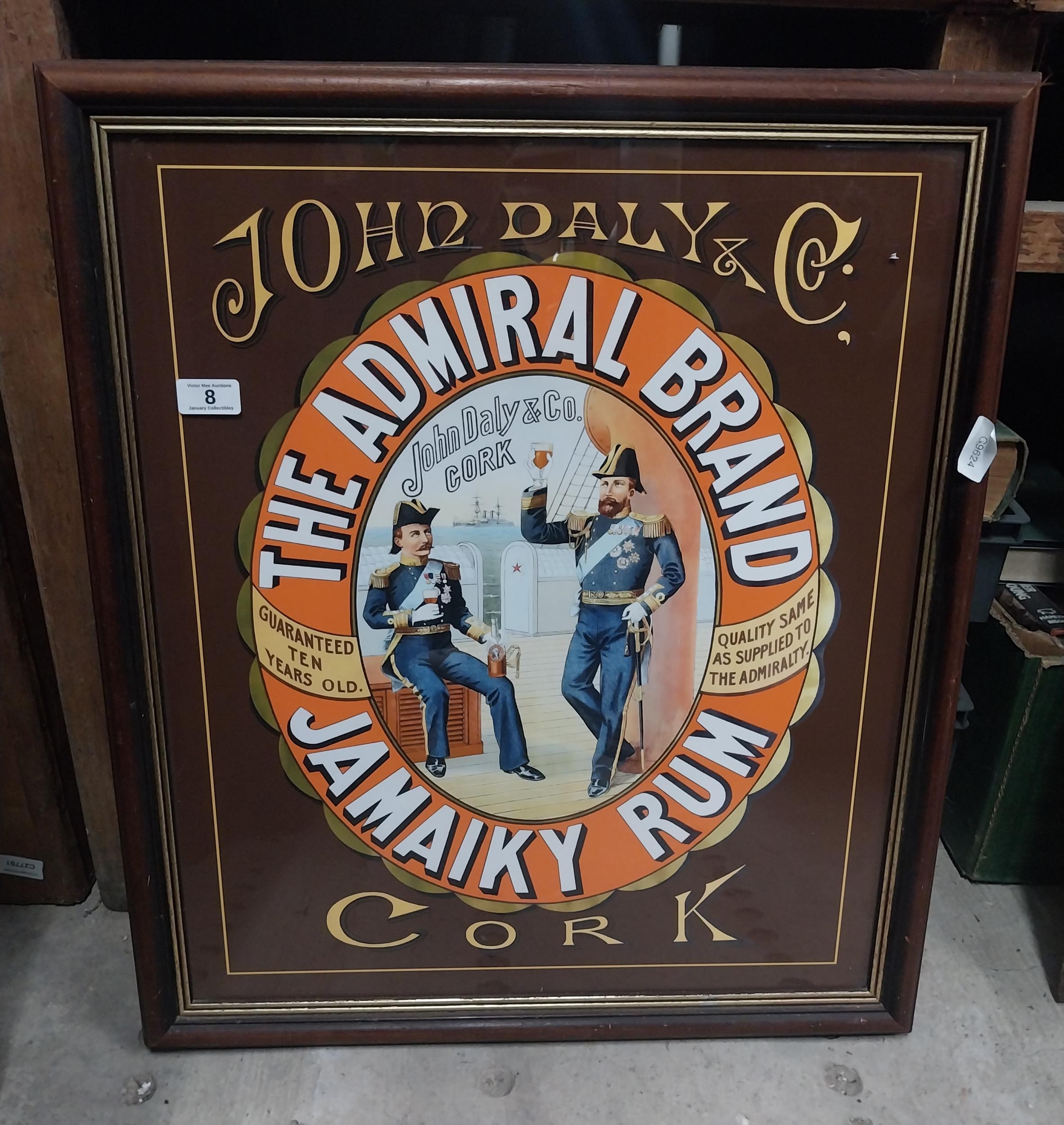 Tom Daly and Co Cork The Admiral Brand Jamaiky Rum framed print. {67 cm H x 57 cm W}.