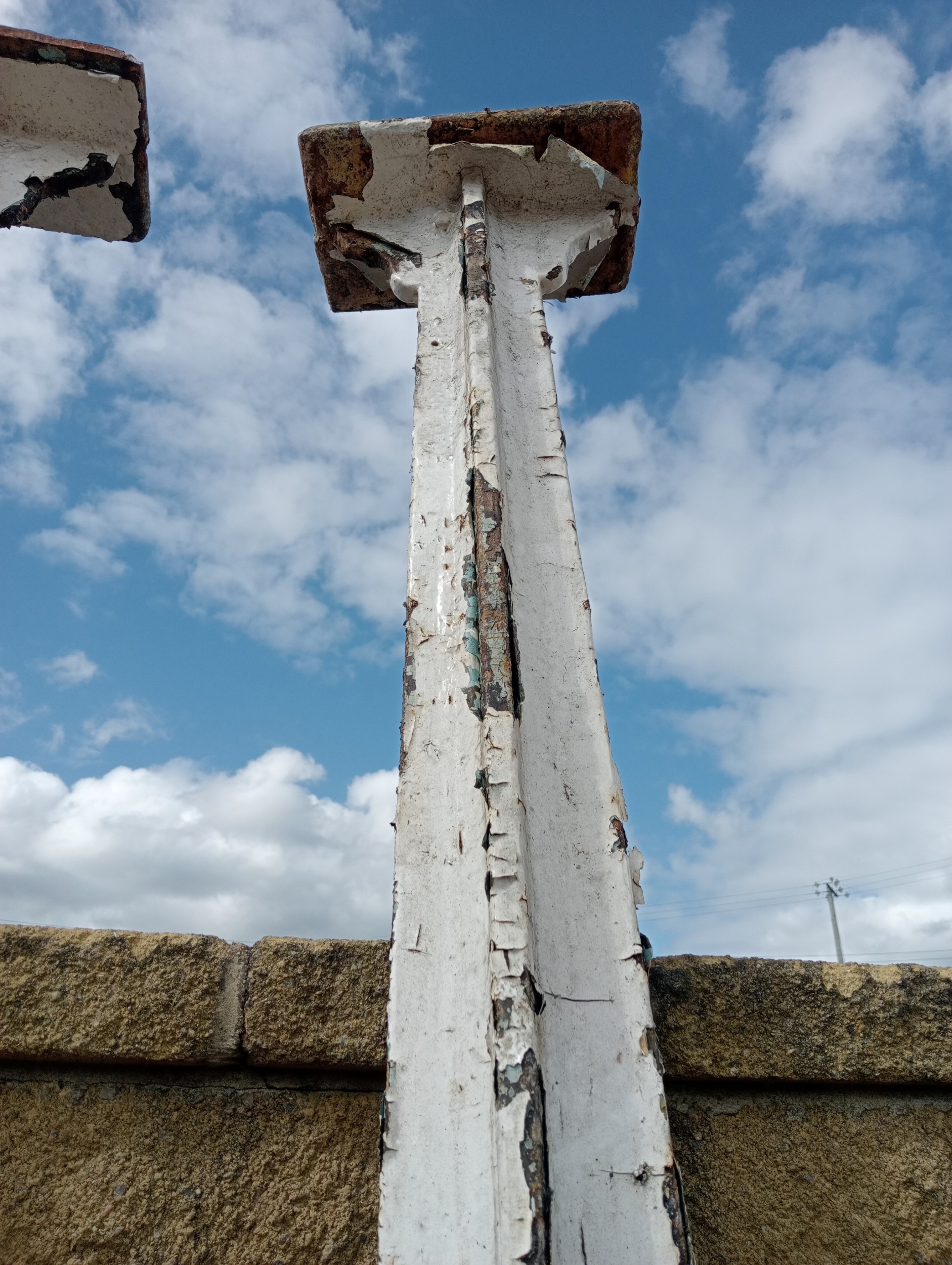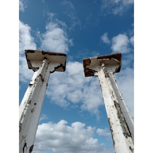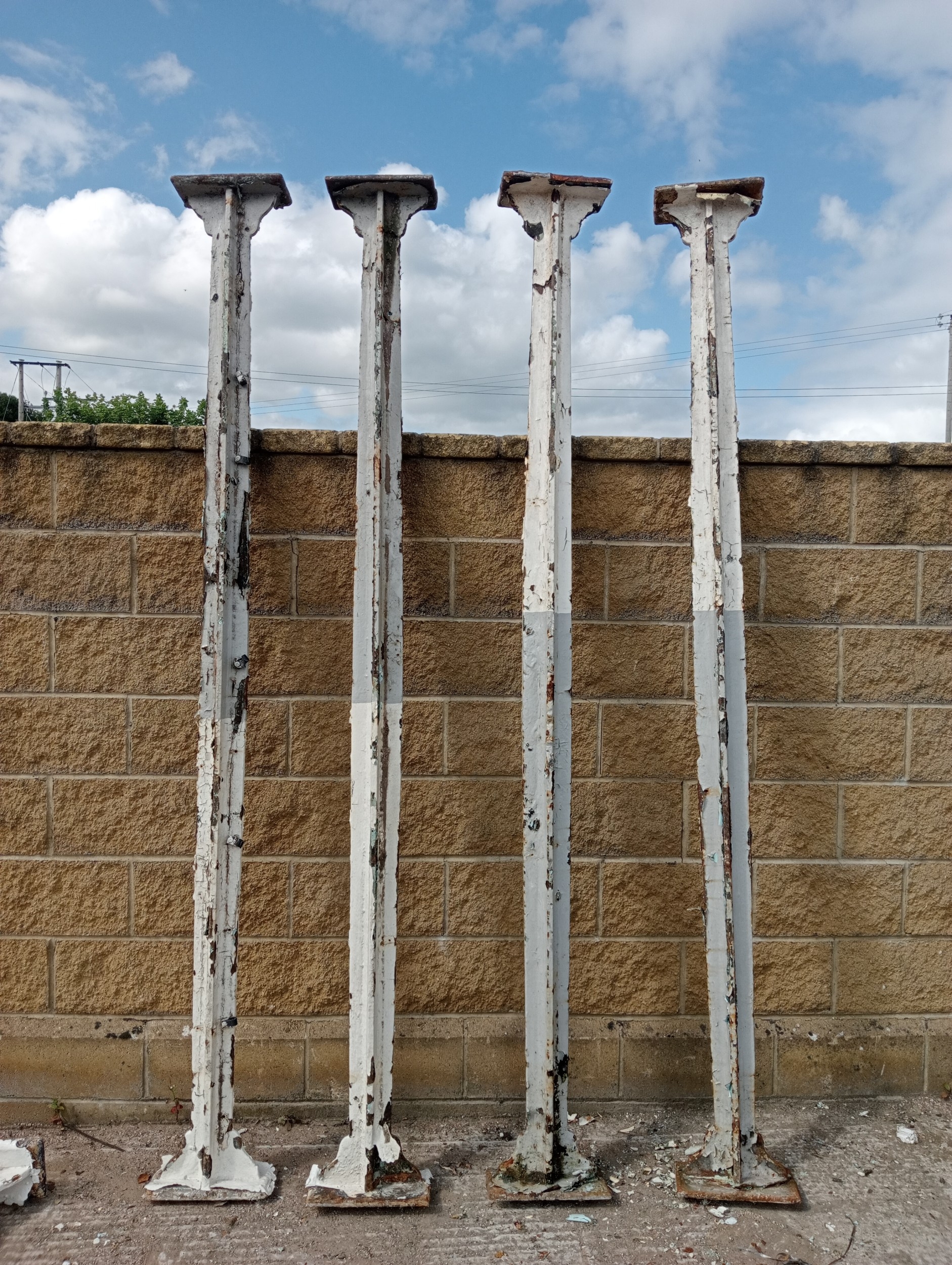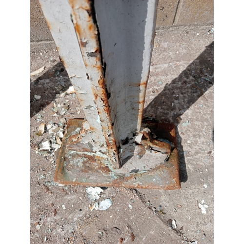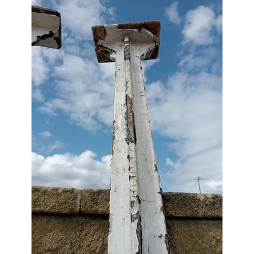 Lot of four cast iron stanchions (H 265cm x Dia 10cm Top/Bottom W 30cm x D 15cm )