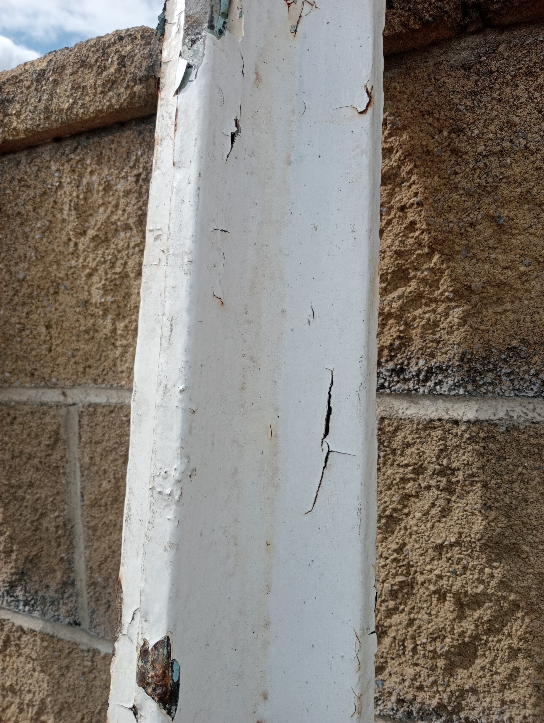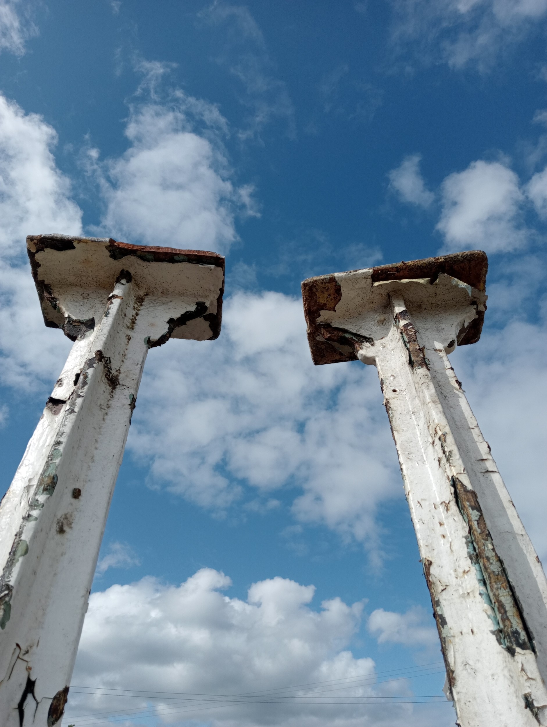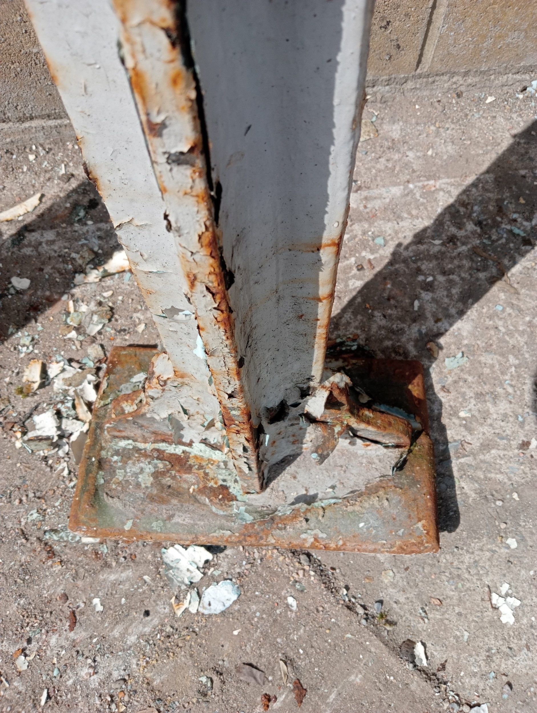 Lot of four cast iron stanchions (H 265cm x Dia 10cm Top/Bottom W 30cm x D 15cm )