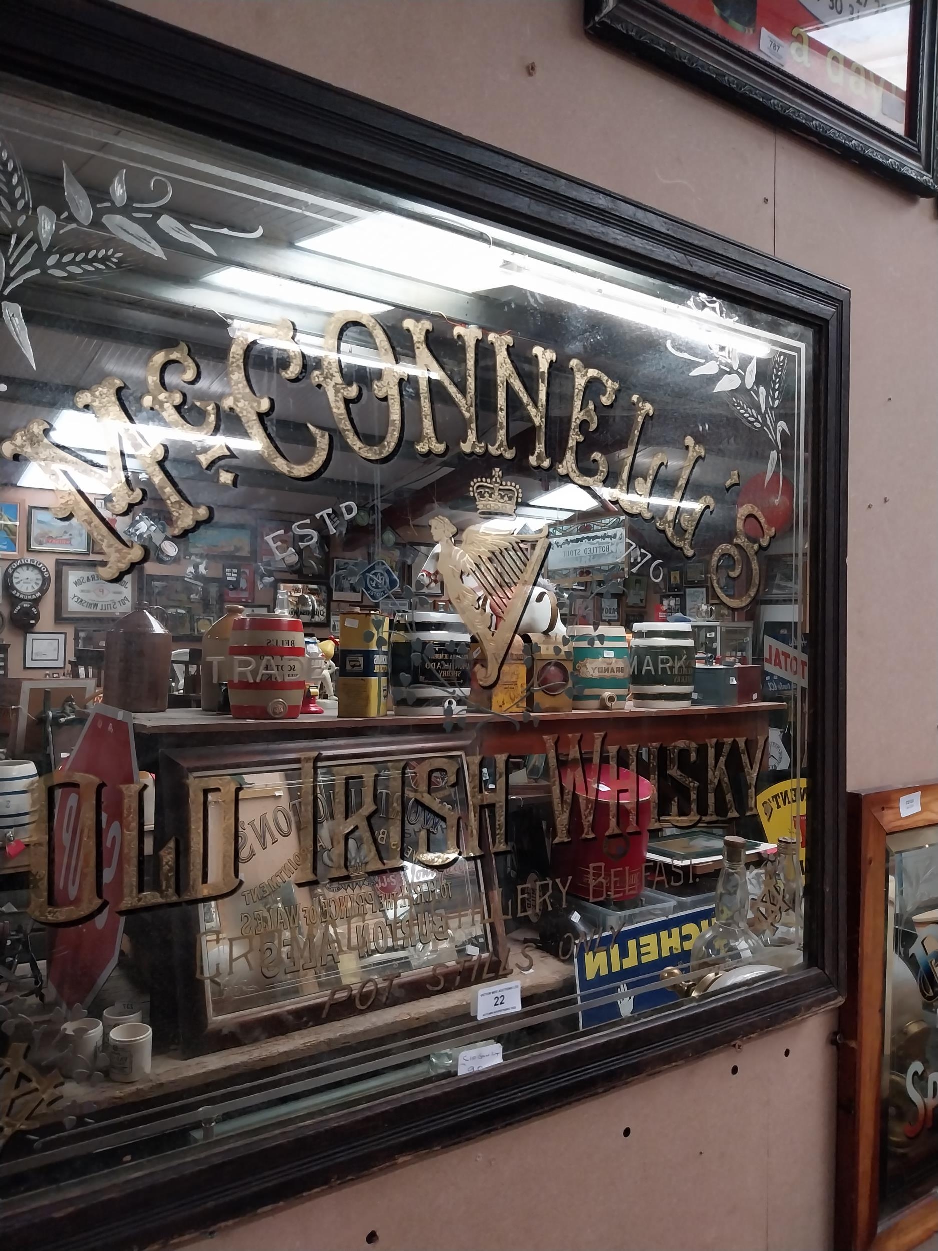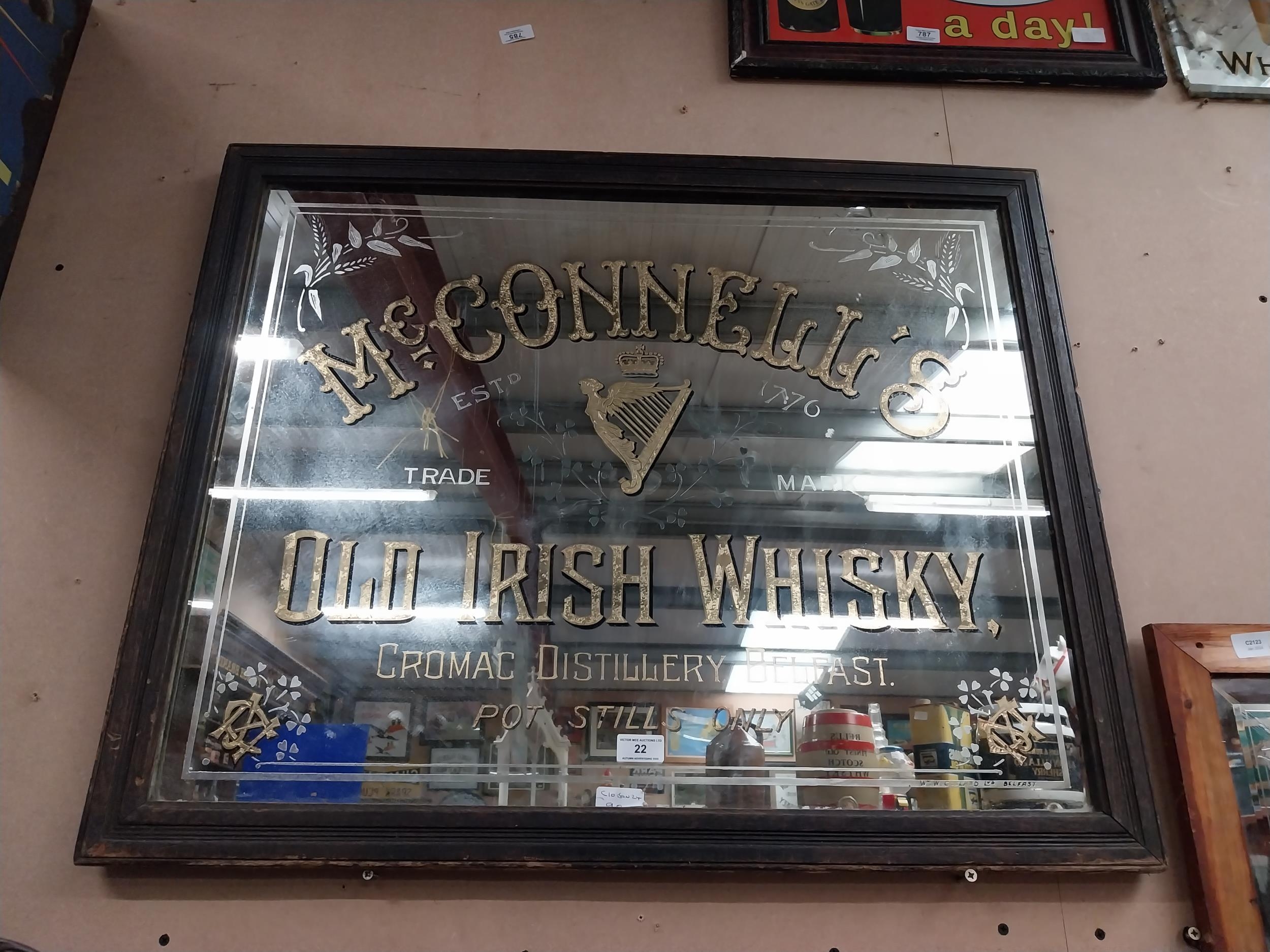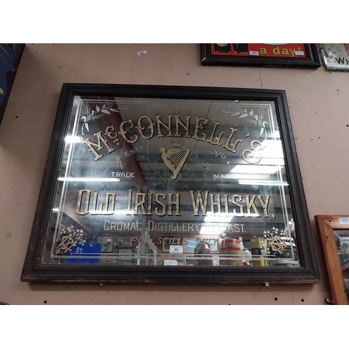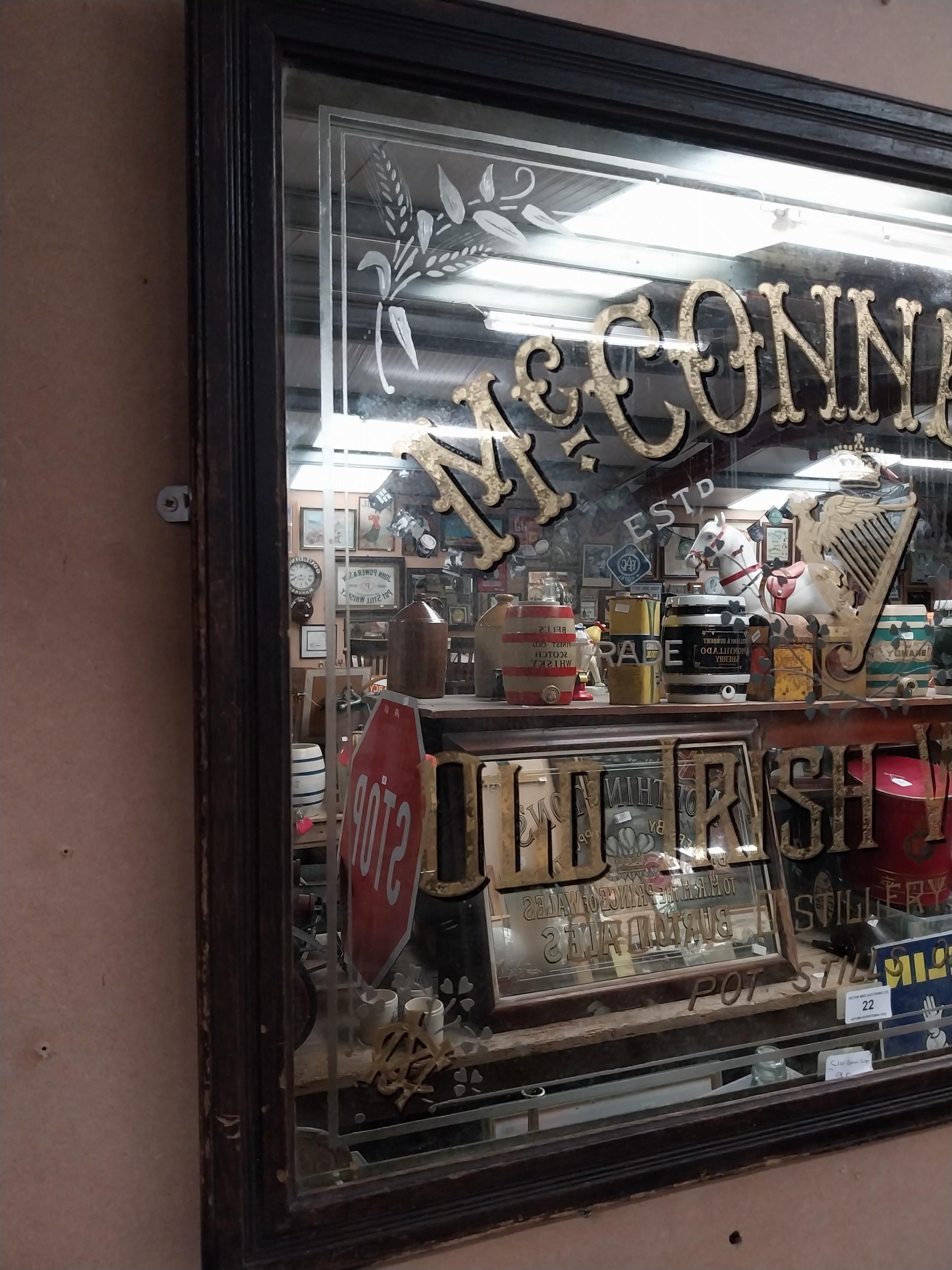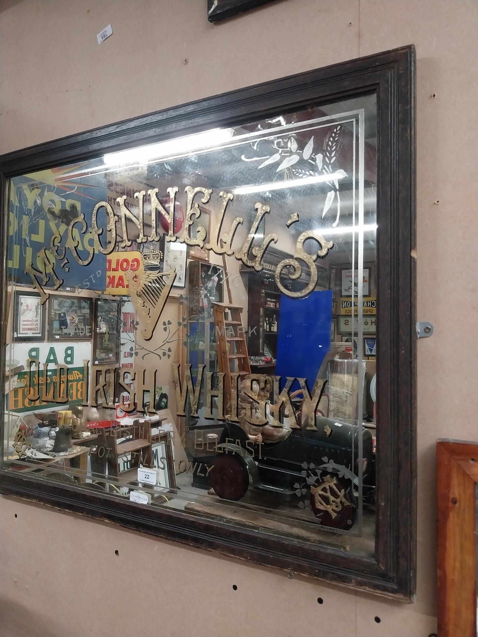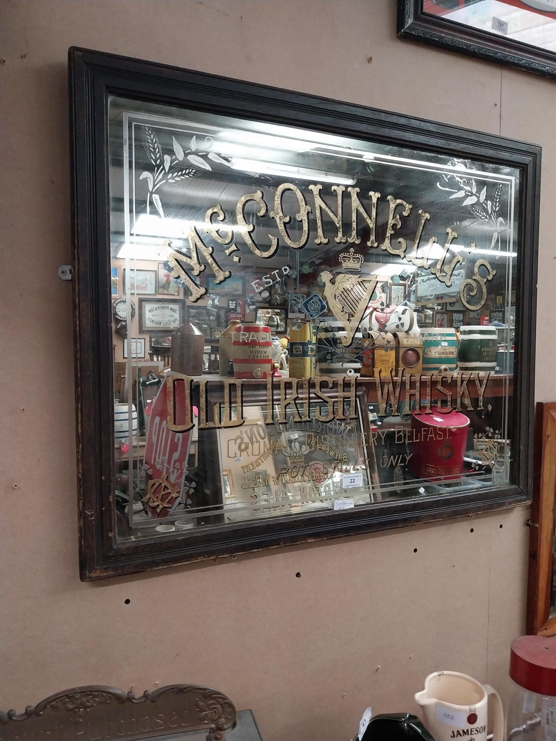 Rare 19th McConnell's Old Irish Whisky Cromac Distillery Belfast's advertising mirror in original frame. {70 cm H x 85 cm W}.