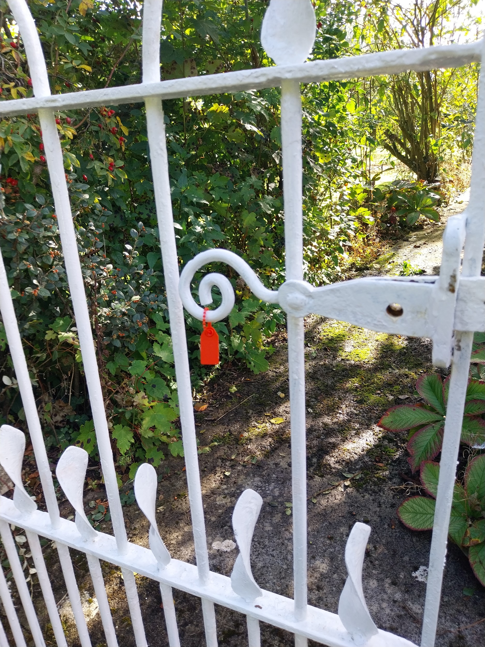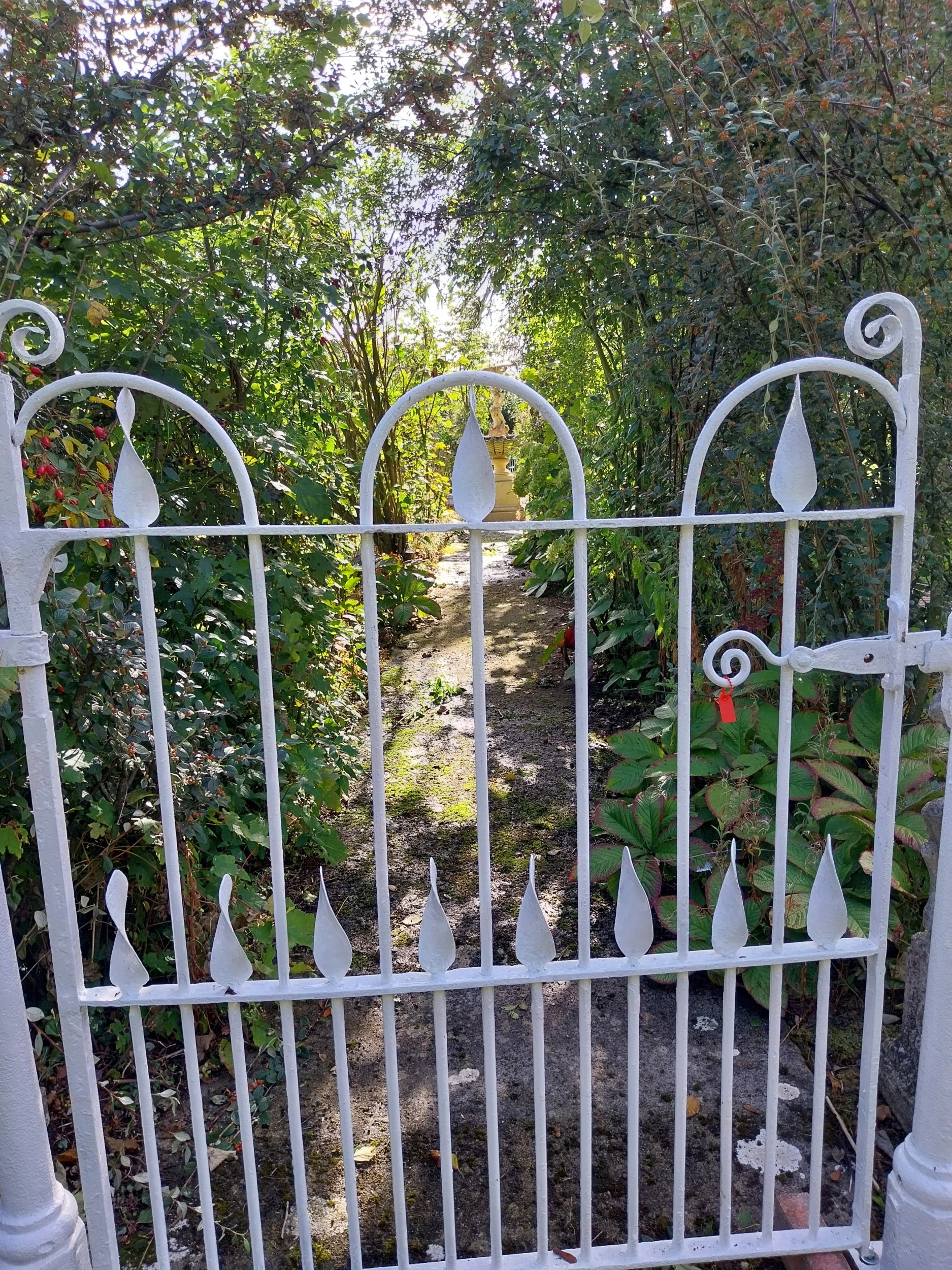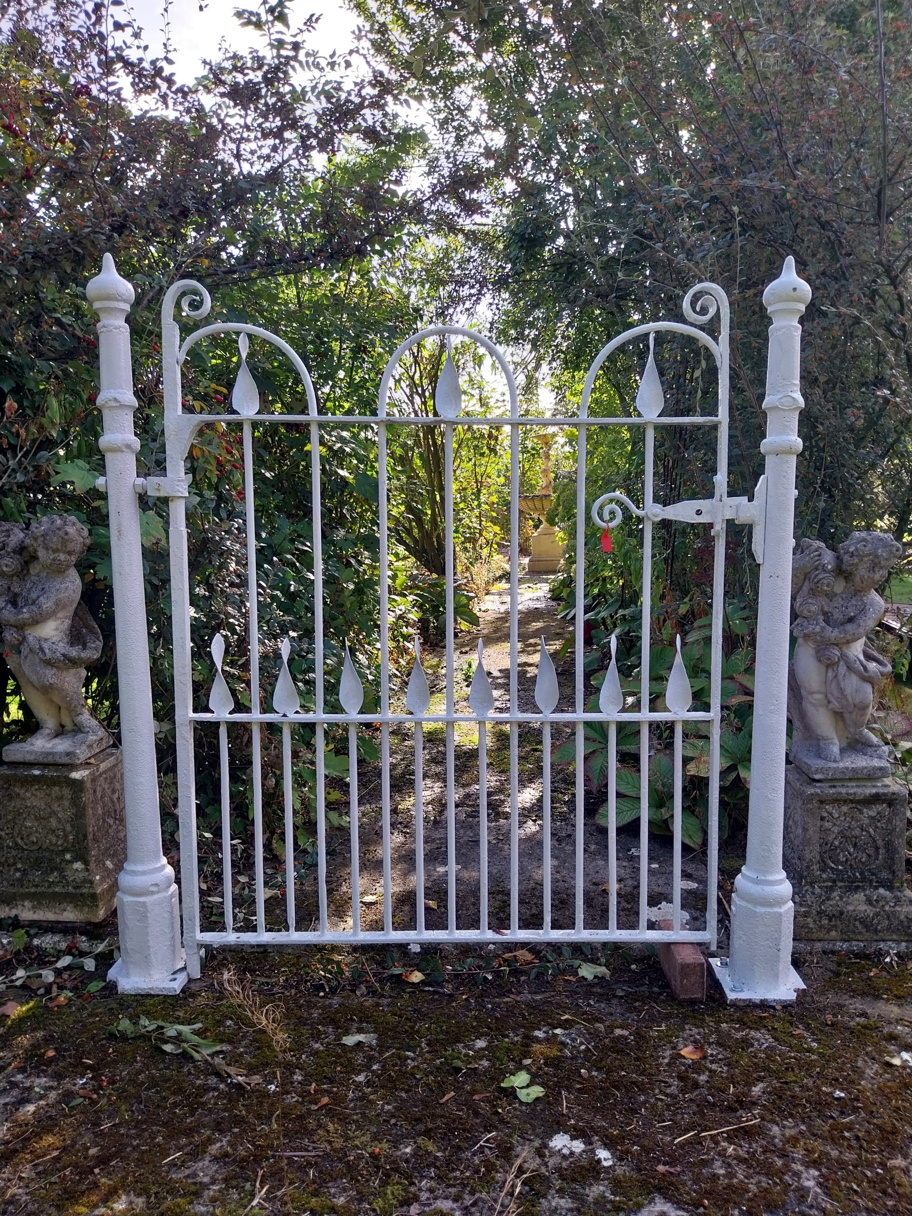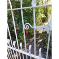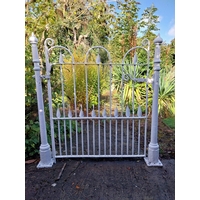 19th. C. wrought iron gate and matching gate posts. { Overall measurements - 157cm H X 155cm W }.