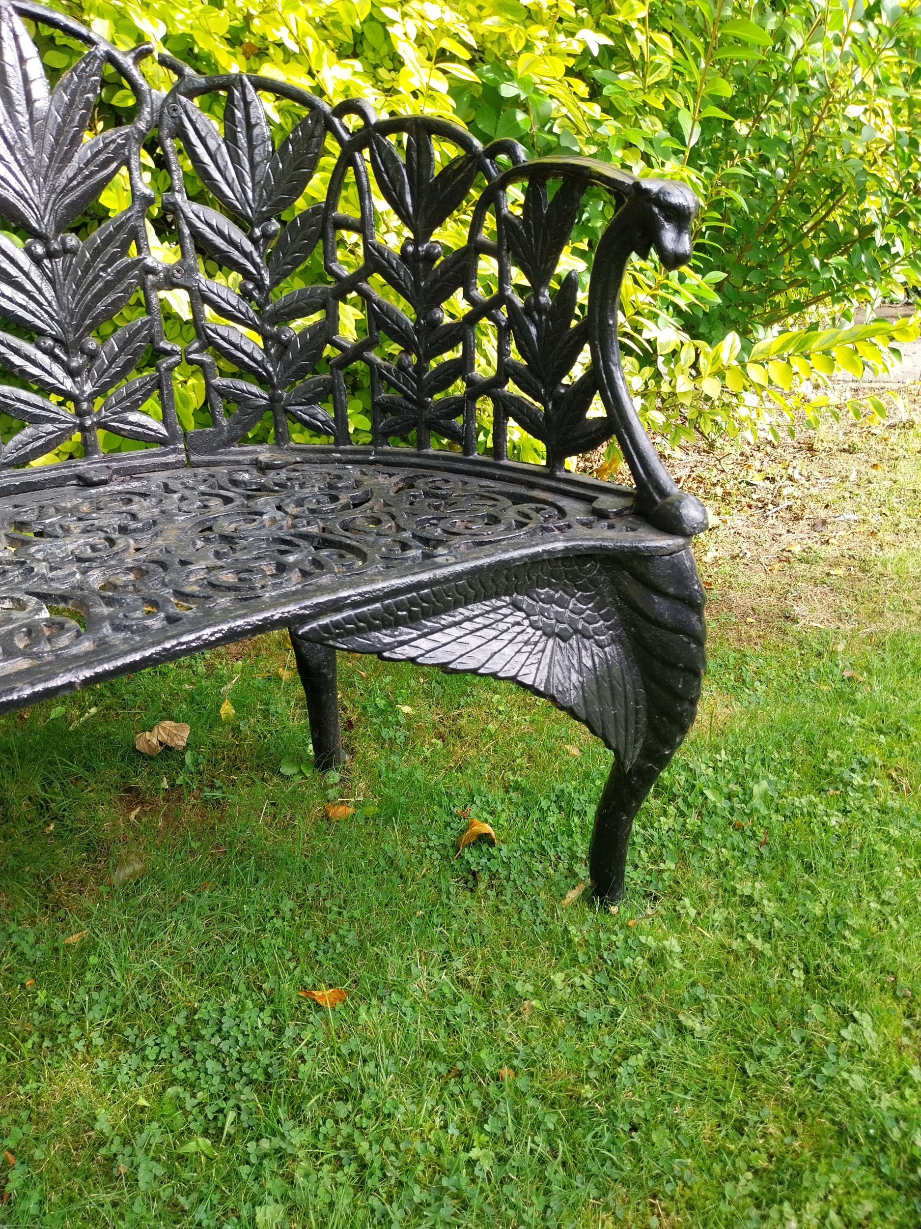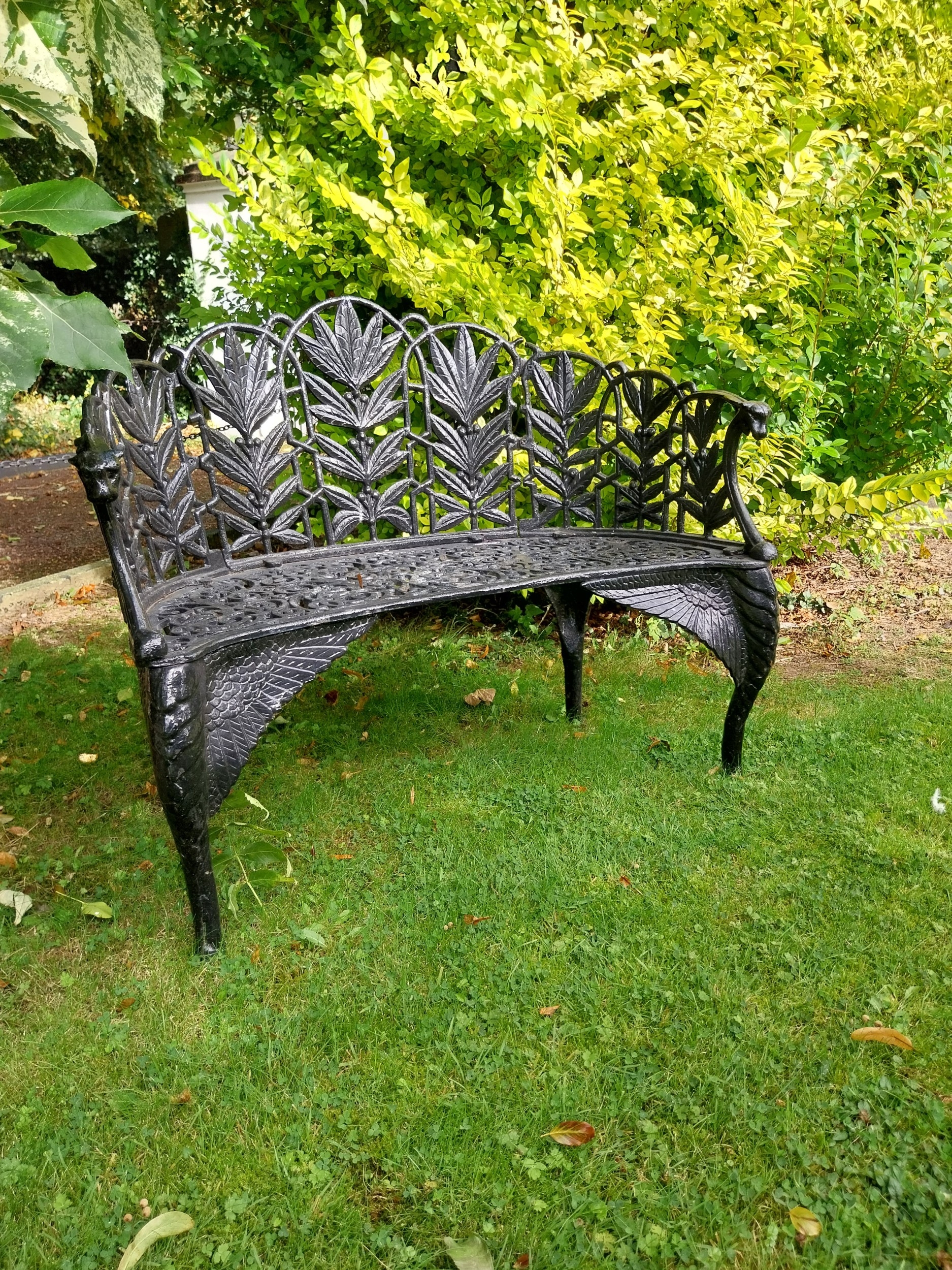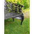 Decorative cast iron garden bench. { 88cm H X 110cm W x 61cm D }.