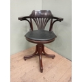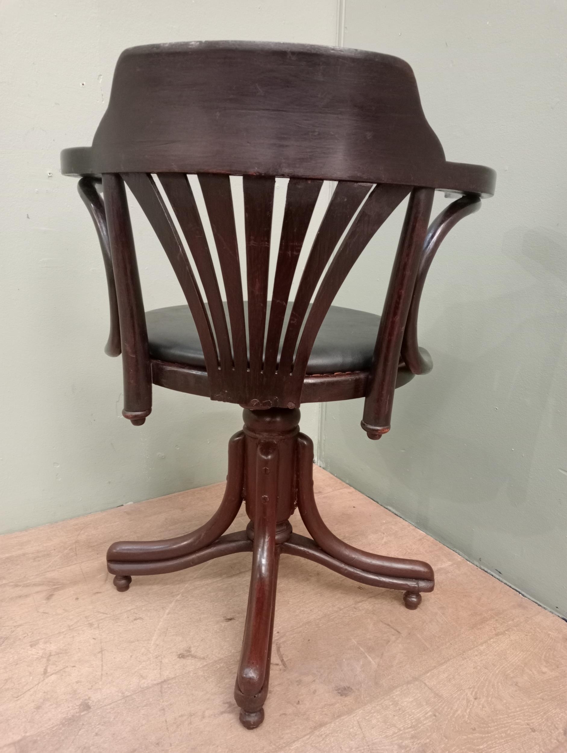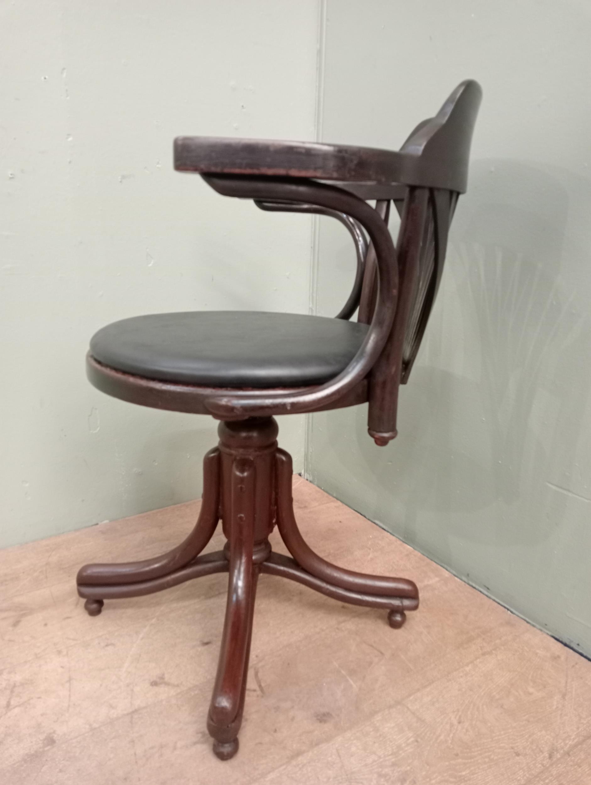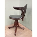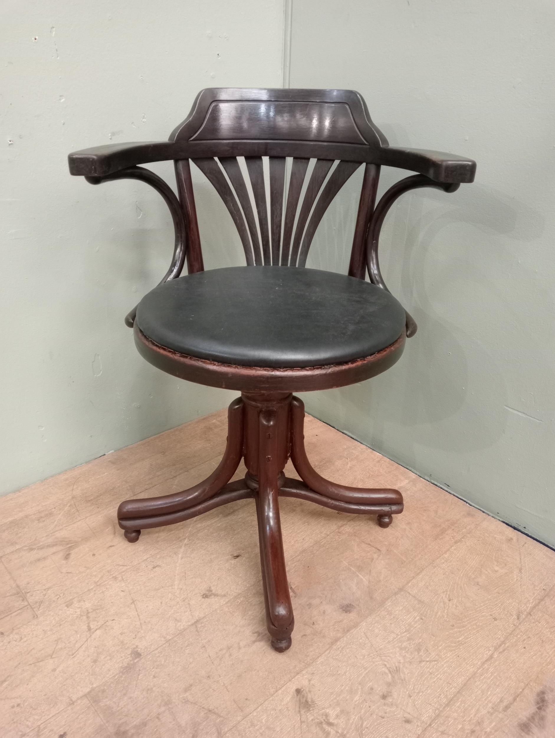 Bentwood swivel office chair with leather upholstered seat. {H 85cm x W 62cm x D 50cm } NOT AVAILABLE TO VIEW IN PERSON