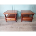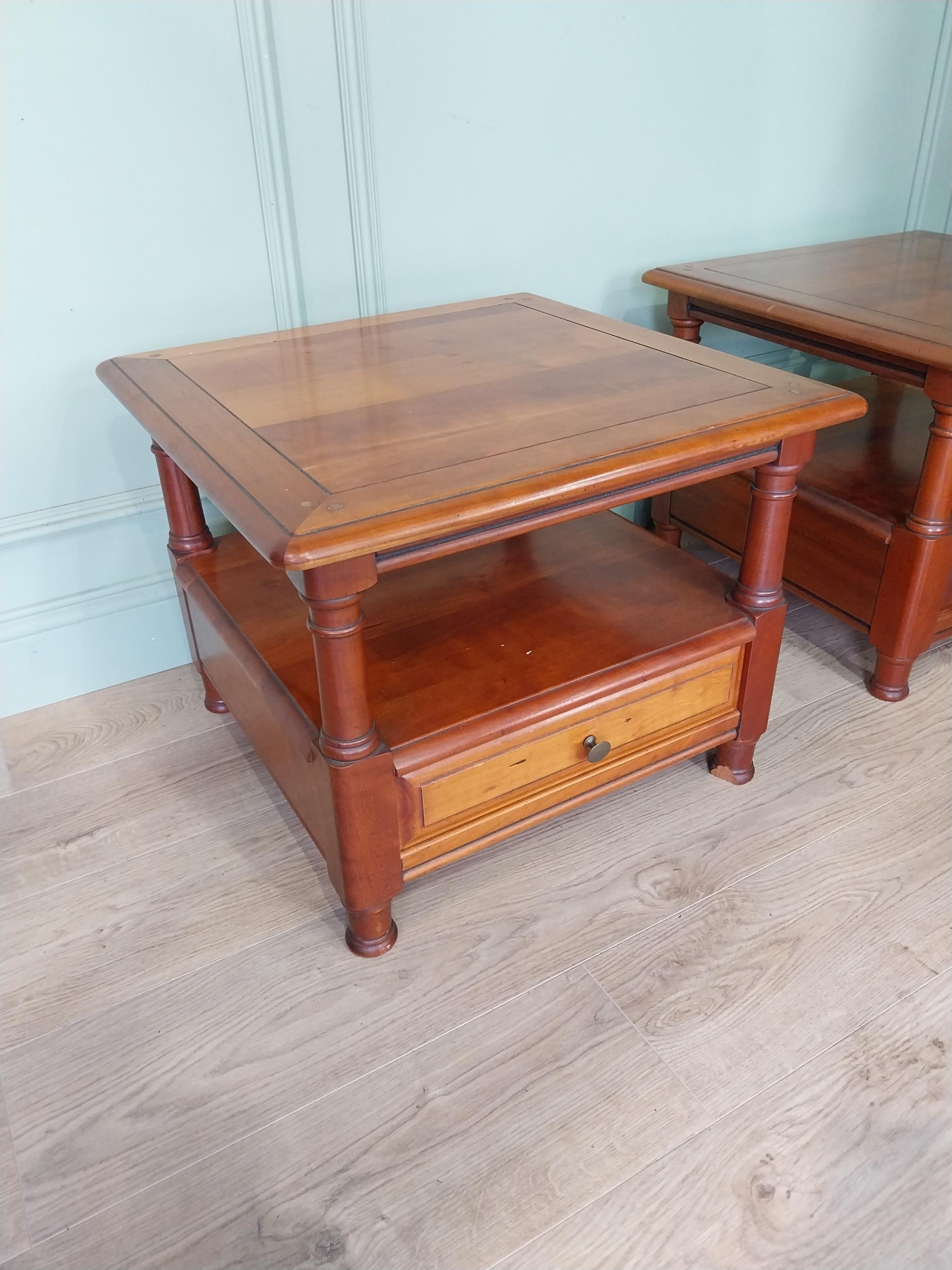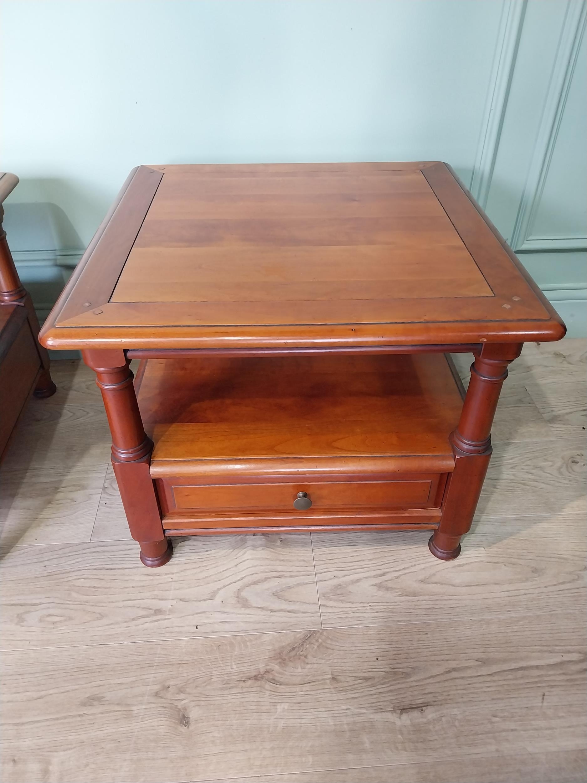 Pair of walnut low tables with single drawer in frieze. {46 cm H x 60 cm W x 60 cm D}.