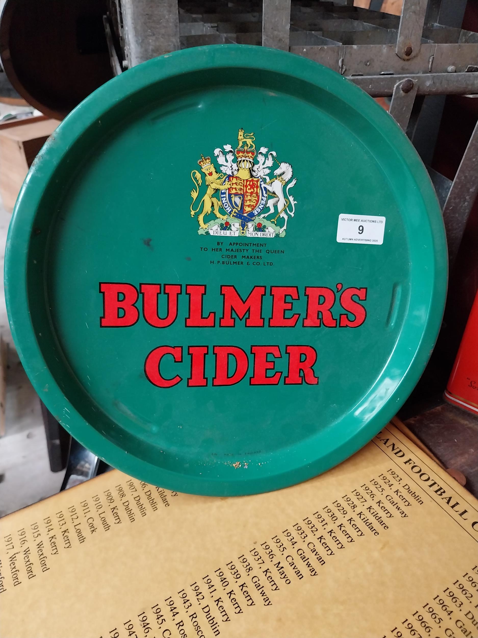 Bulmers Cider tin plate advertising drink's tray. {3 cm H x 32 cm Dia.}.