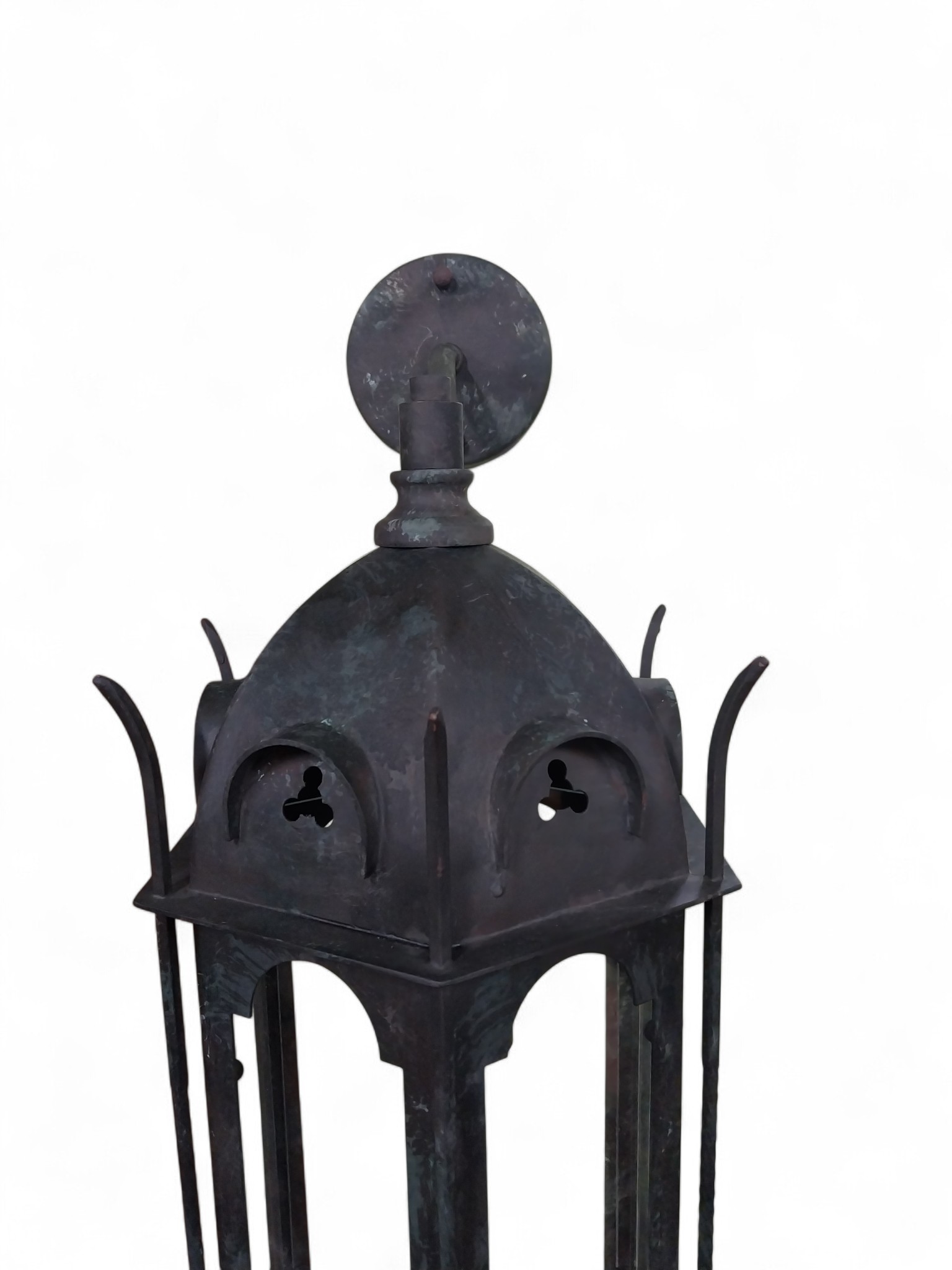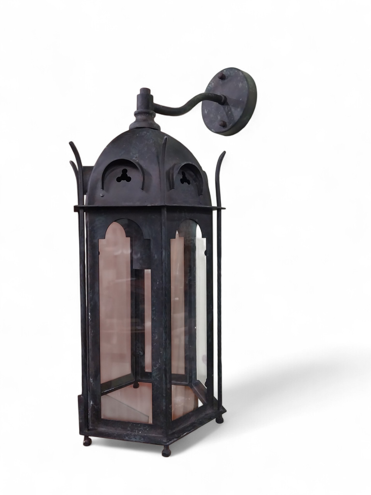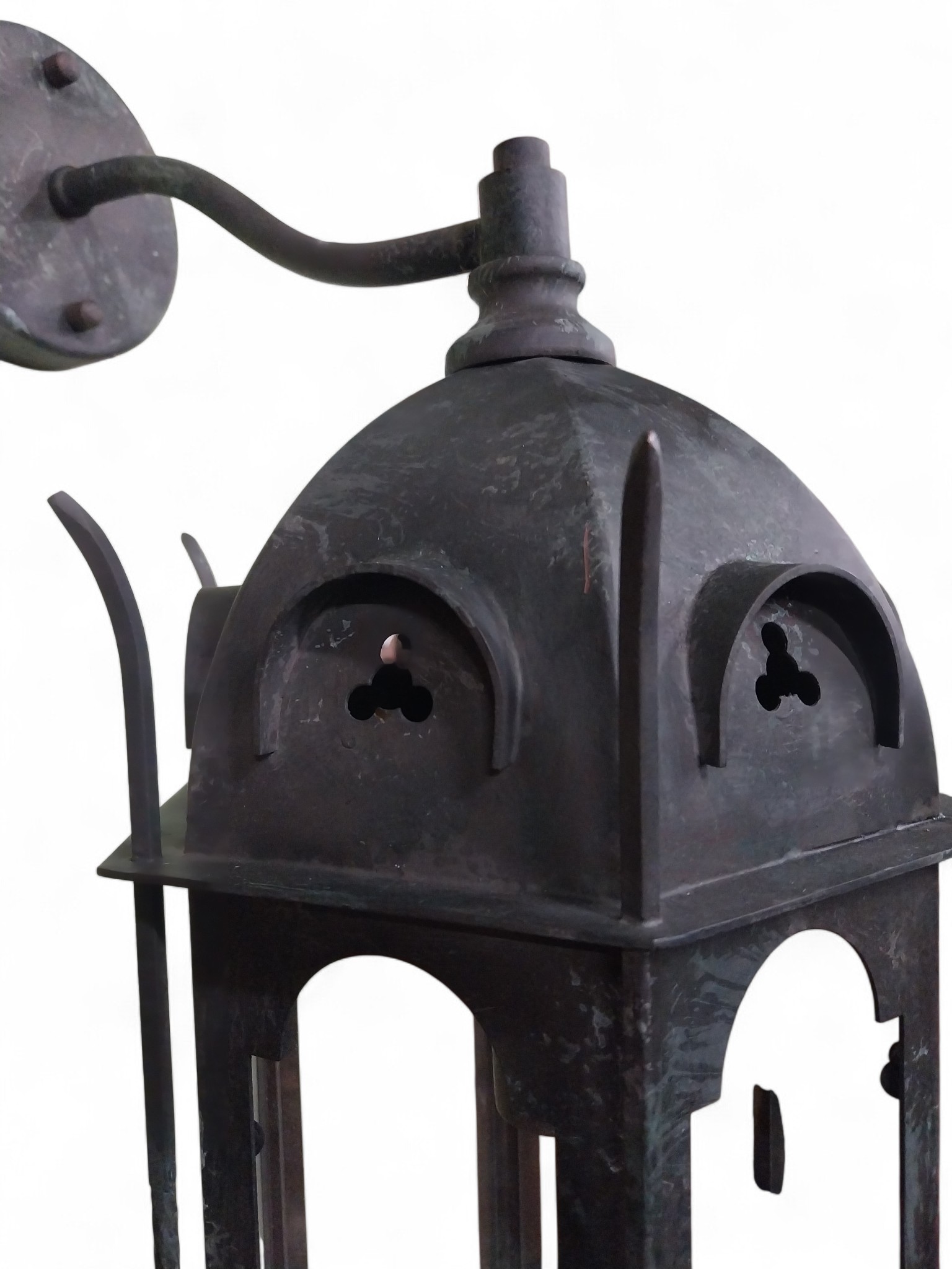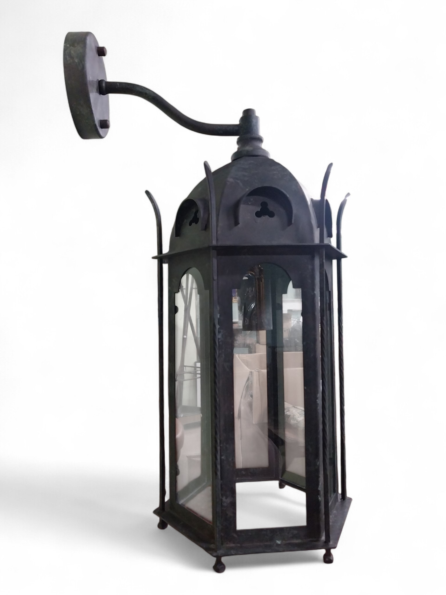 Good quality bronzed metal Gothic wall lantern. {60 cm H x 24 cm W x 24 cm D}