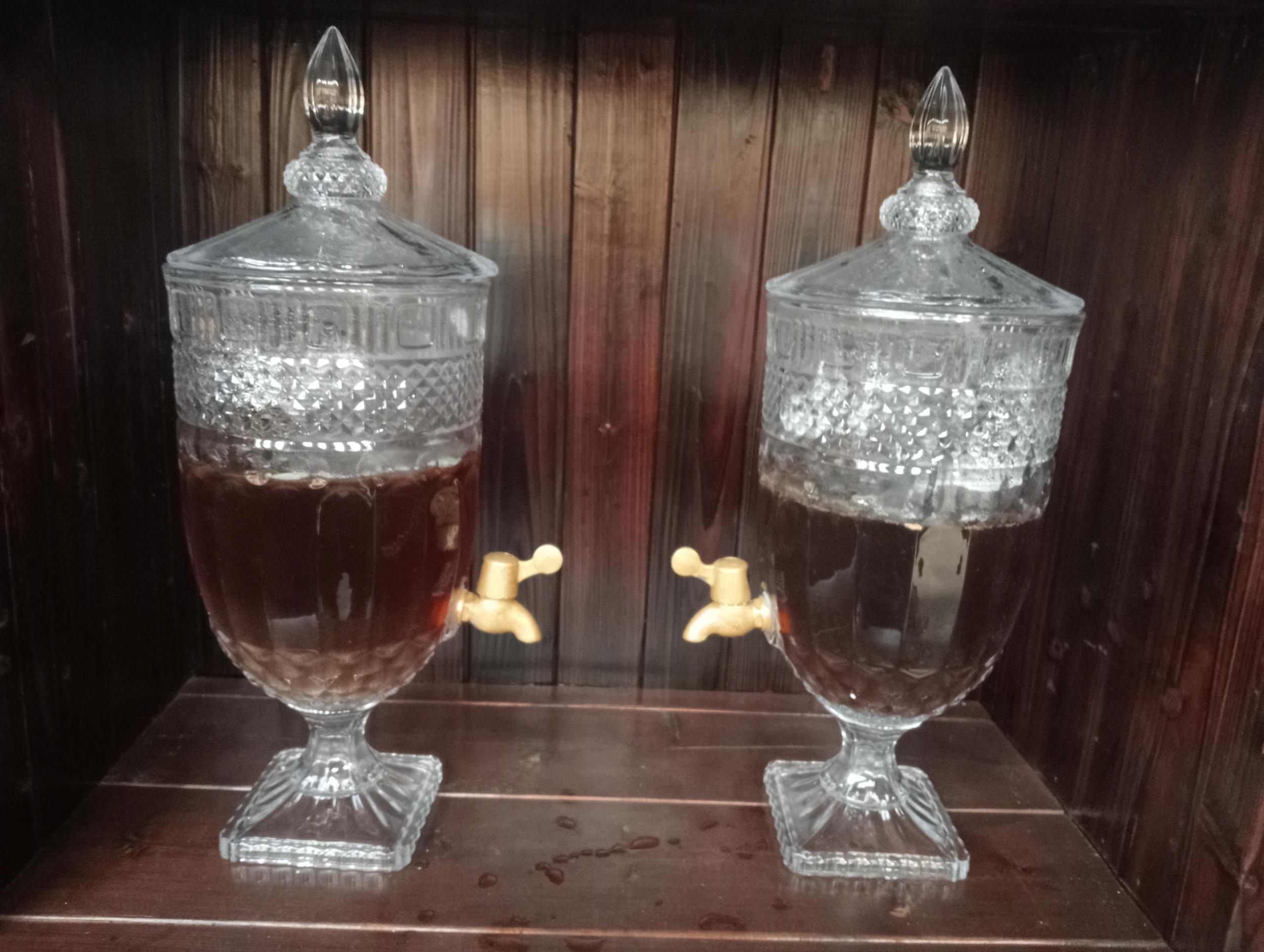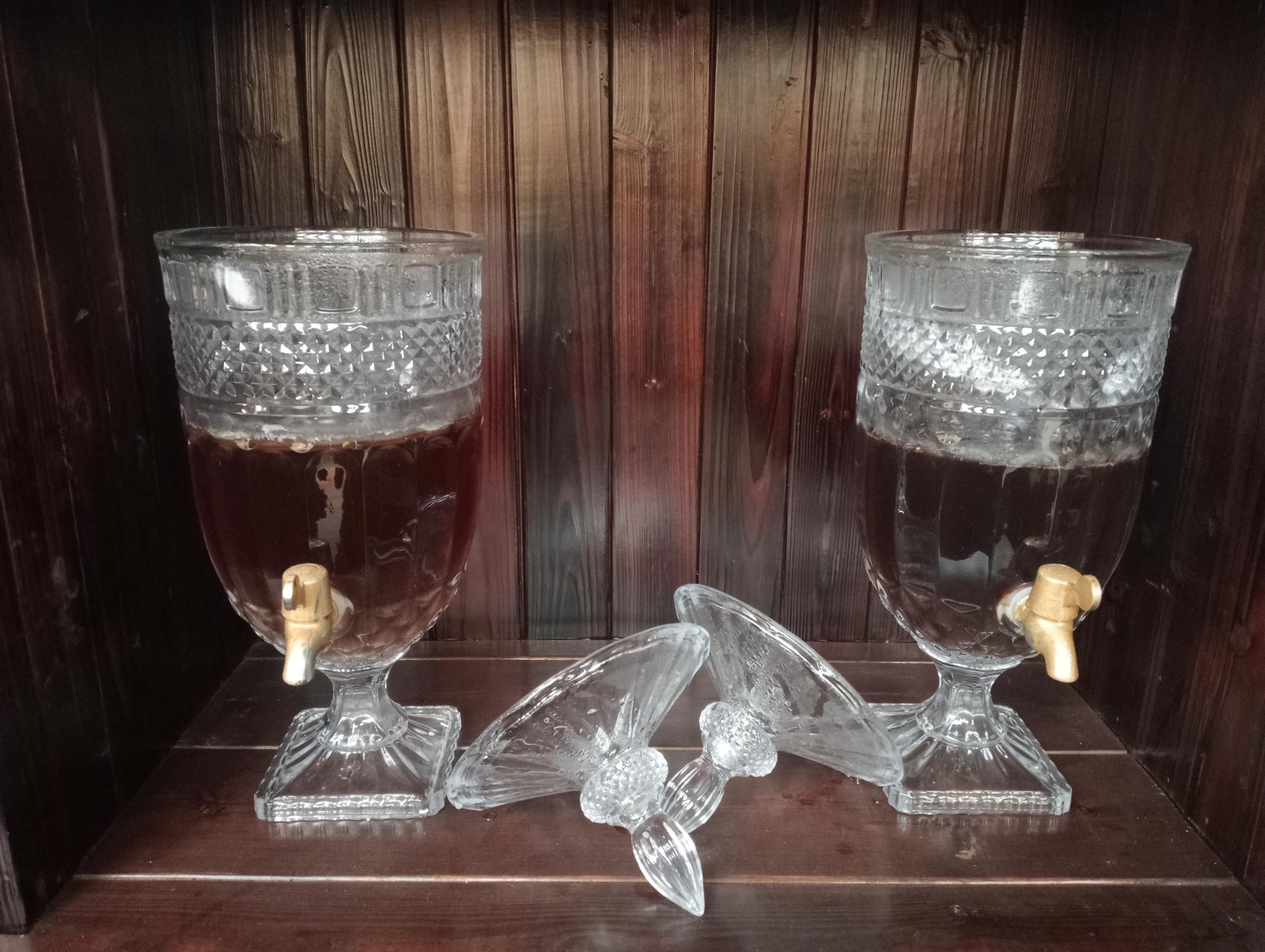 Pair of cut glass Whisky dispensers (H 50cm x Dia 23cm ) NOT AVAILABLE TO VIEW IN PERSON